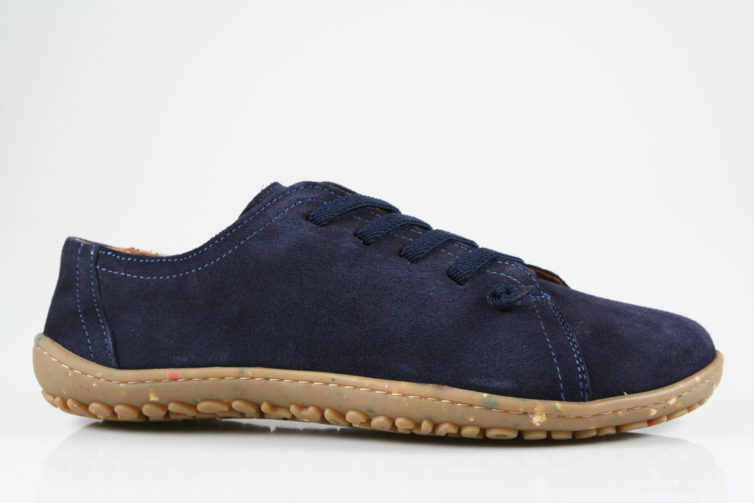 Typ: Barfußschuh; Farbe "navy"; Ausstattung:; - Obermaterial: Velourleder; - weiche Decksohle; - flexible Laufsohle; - gepolsterter Schaftrand; - Schnürsenkel zur Weitenregulierung