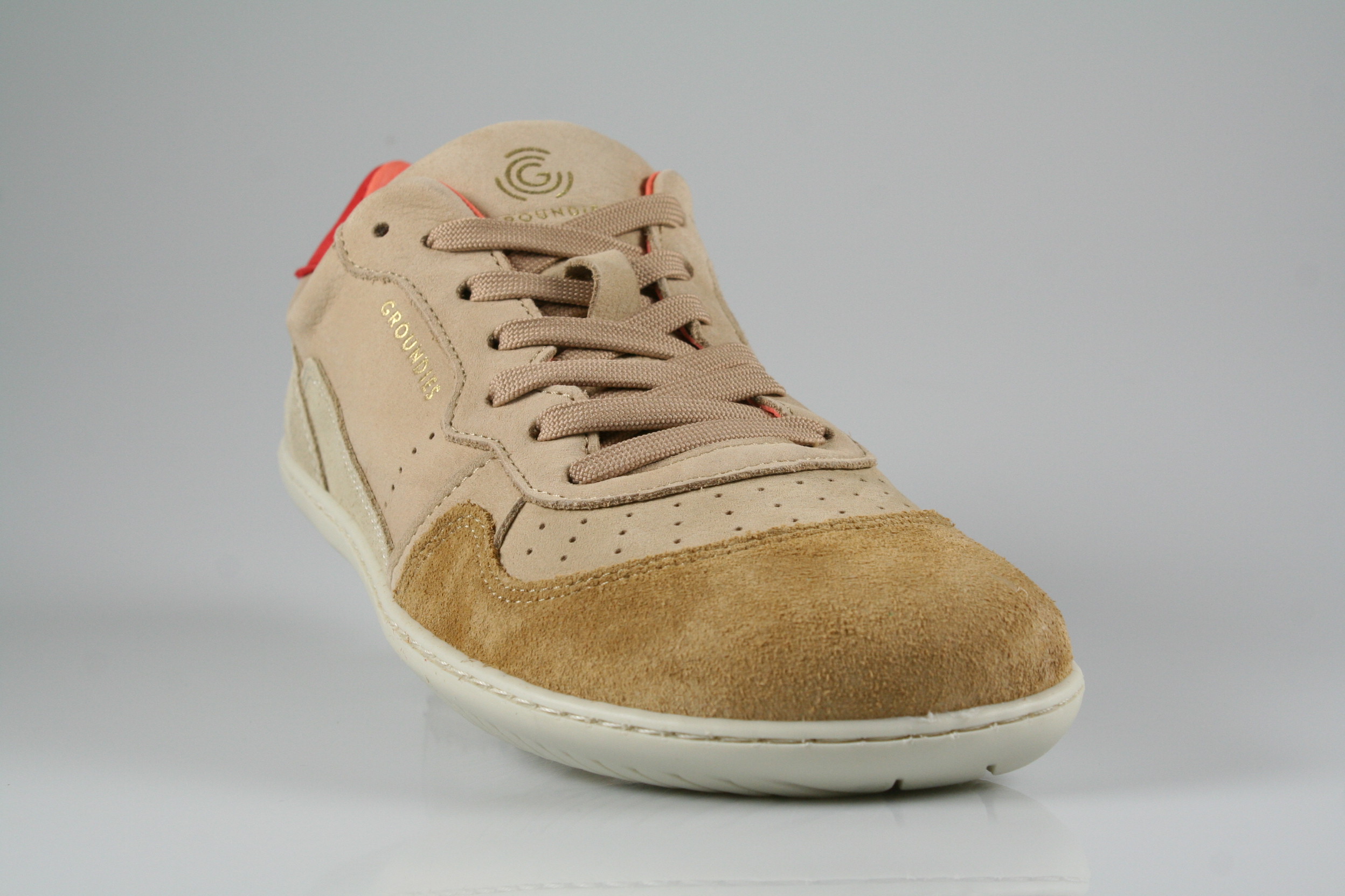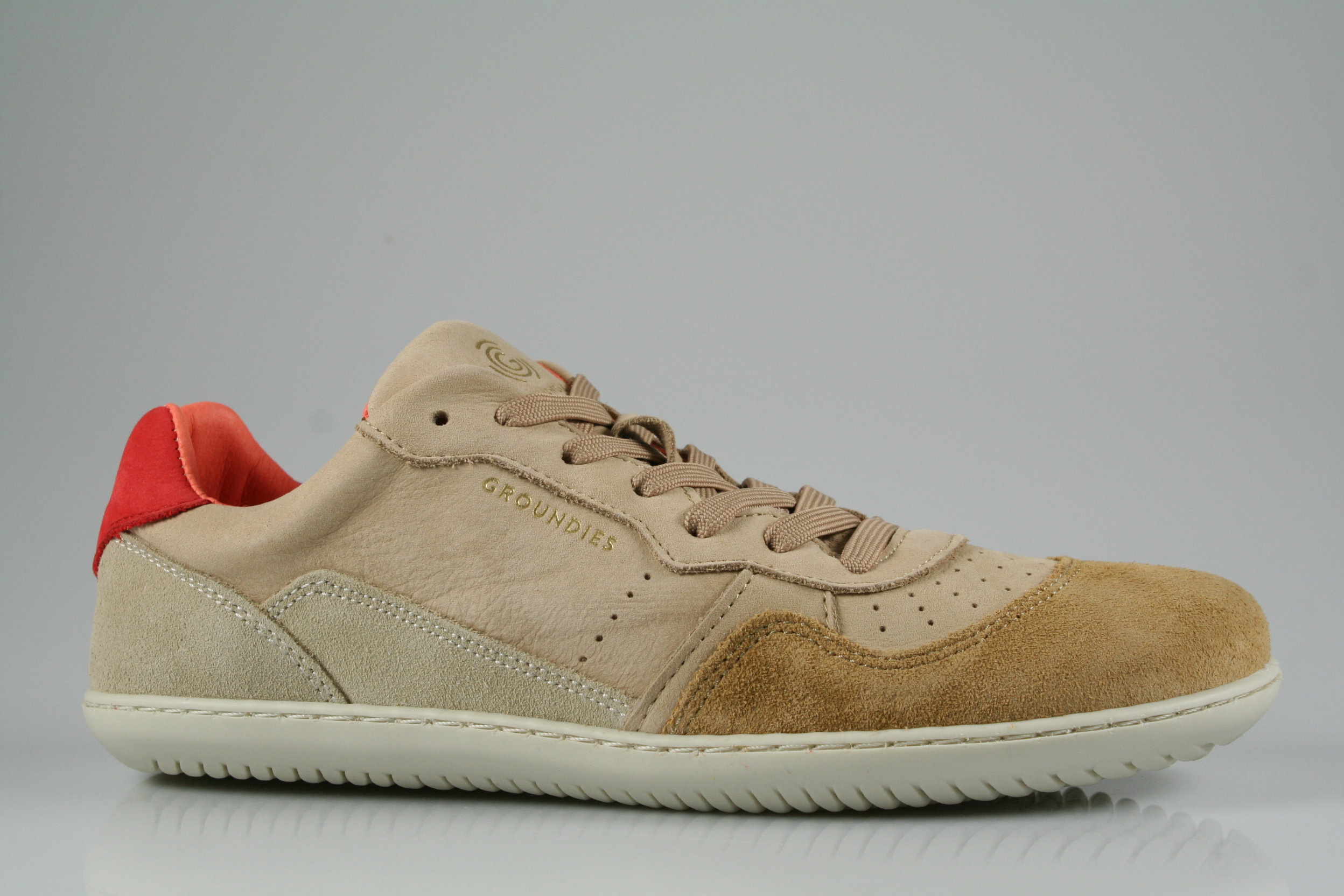 Typ: Barfußschuh; Farbe "beige/coral"; Ausstattung:; - Obermaterial: Lederkombination; - weiche Decksohle; - flexible Laufsohle; - gepolsterter Schaftrand; - Schnürsenkel zur Weitenregulierung