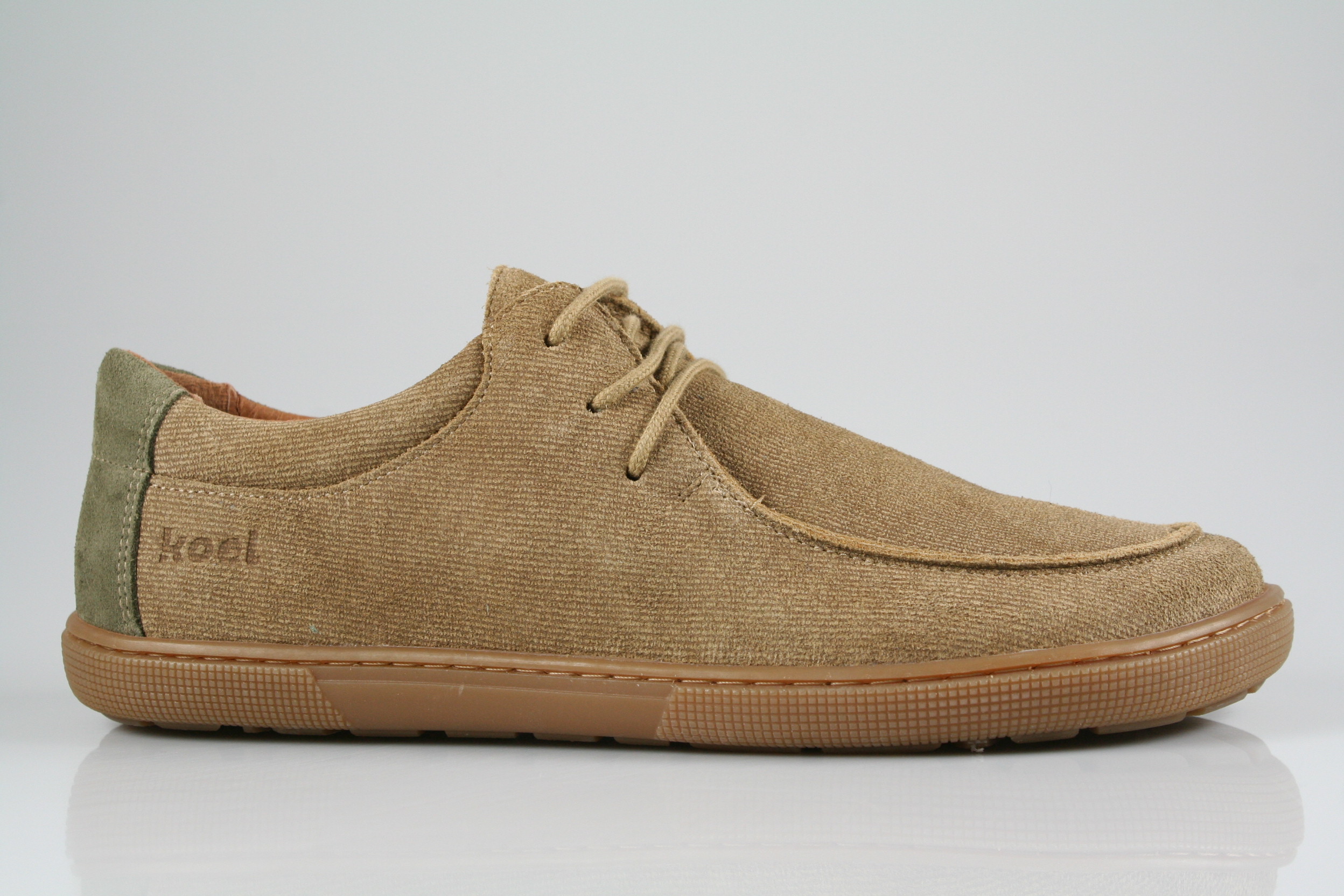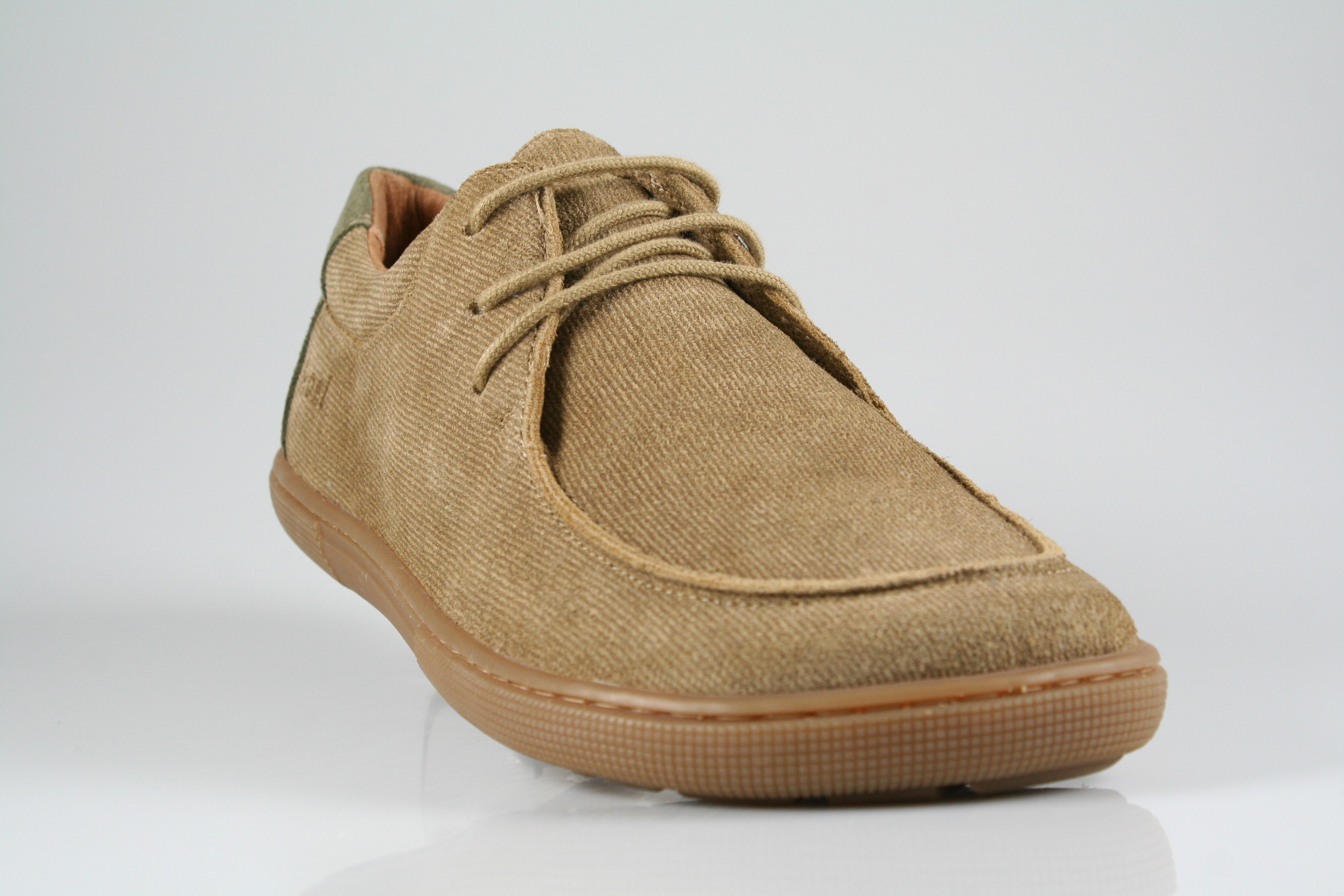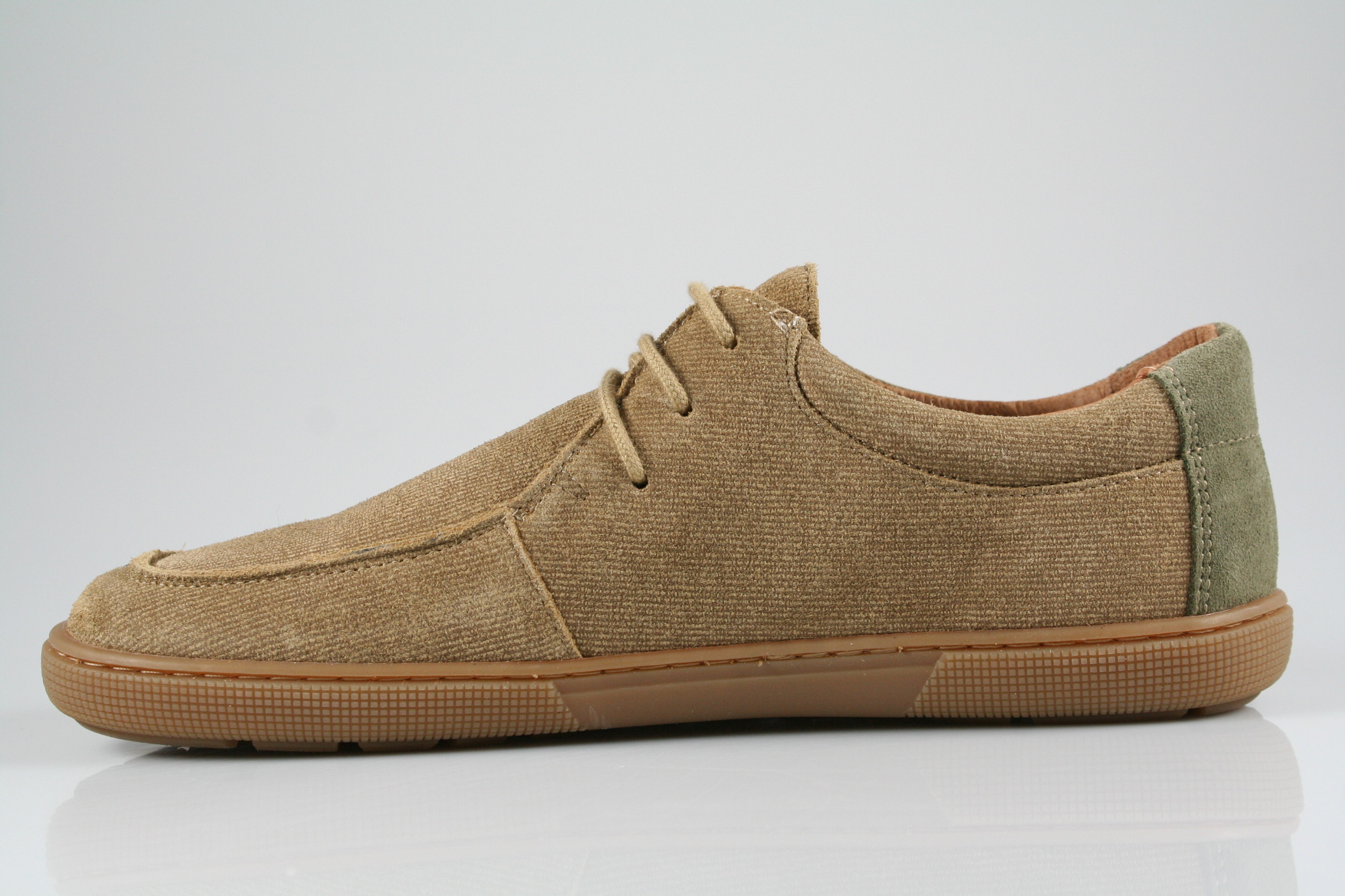 Typ: Barfußschuh; Farbe "taupe"; Ausstattung:; - Obermaterial: Velourleder; - weiche Decksohle; - leichte, flexible Laufsohle; - gepolsterter Schaftrand; - Schnürsenkel zur Weitenregulierung