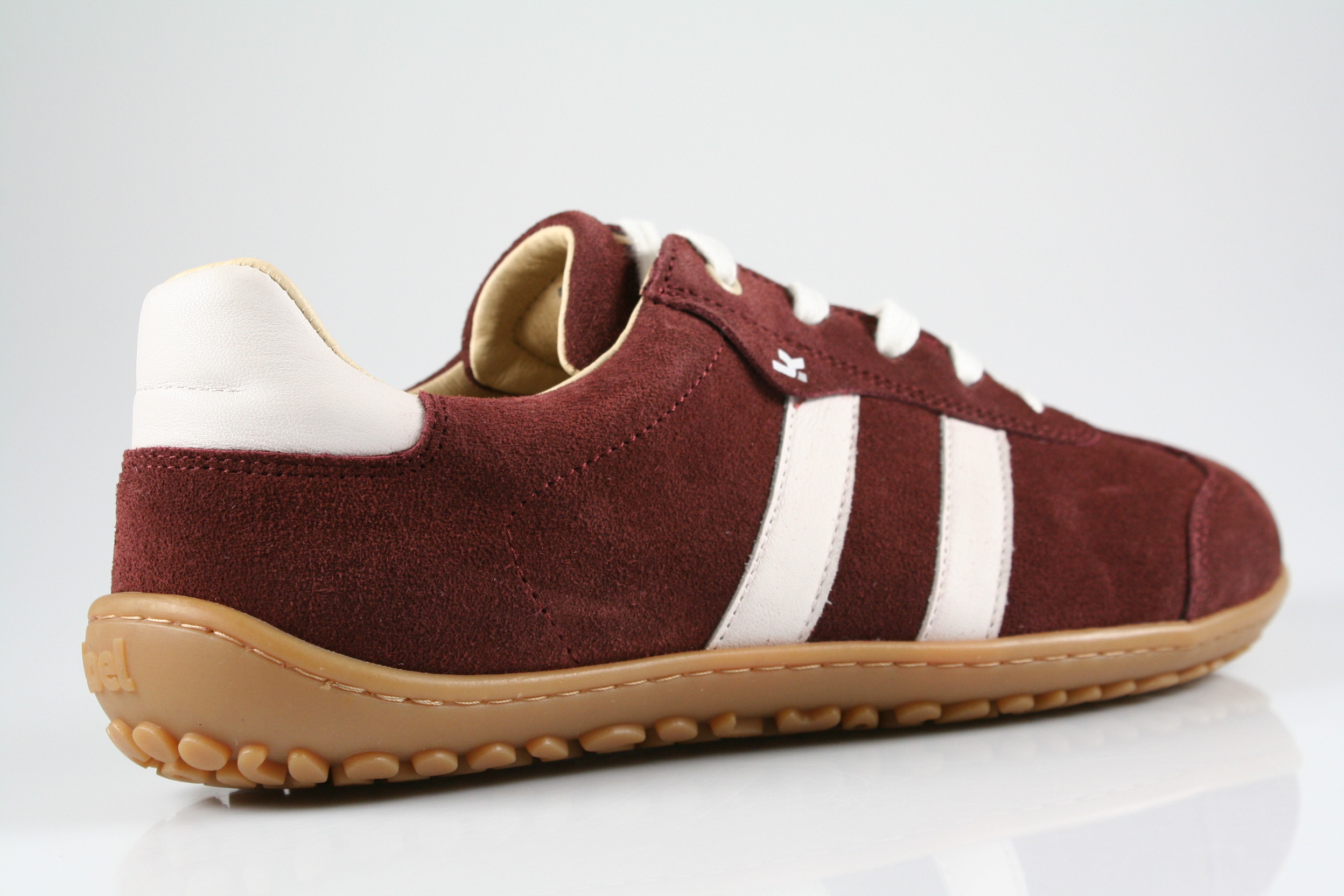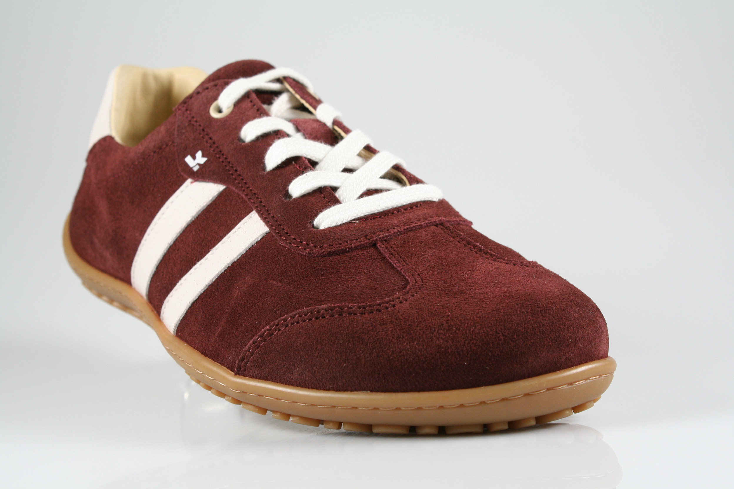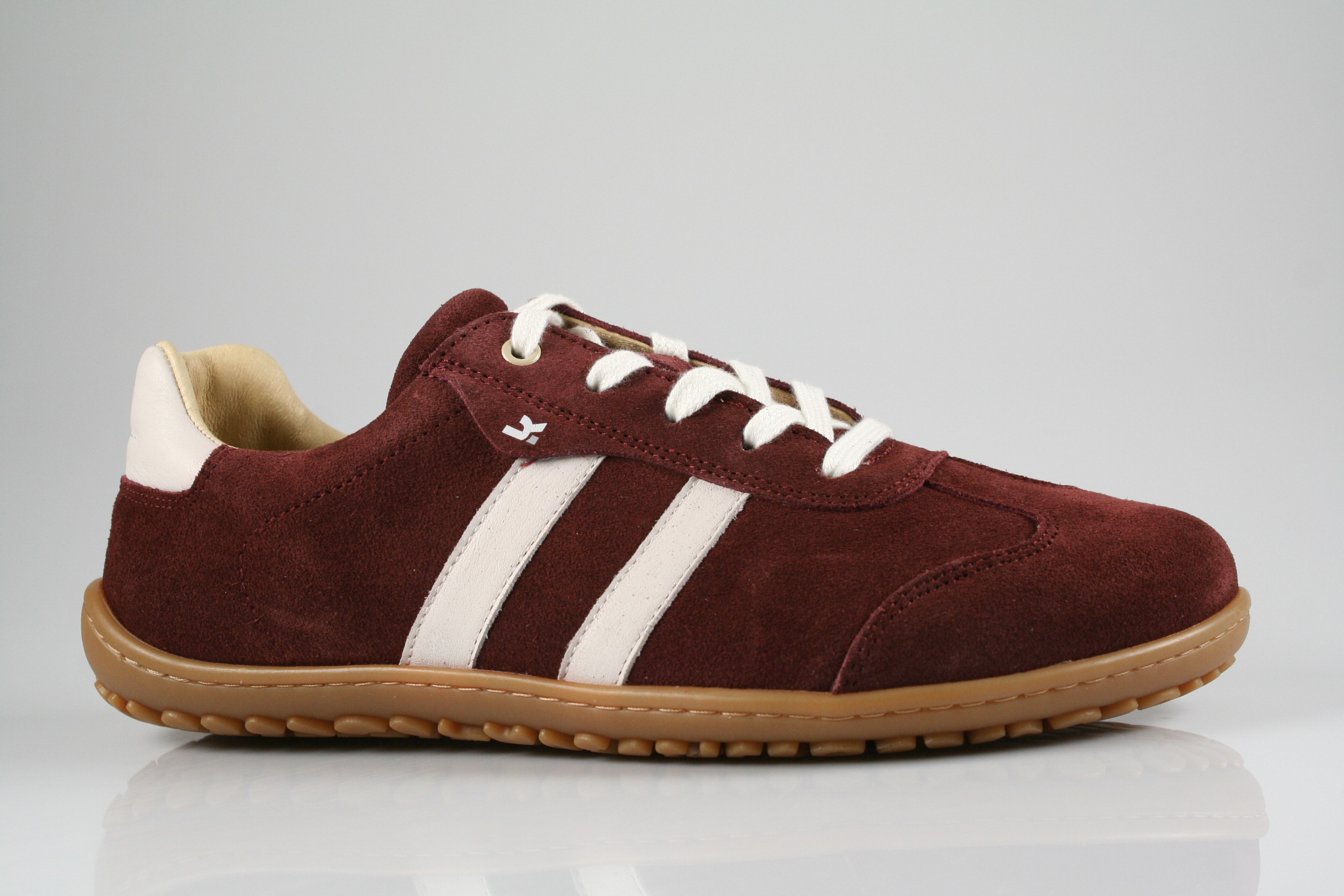 Typ: Barfußschuh; Farbe "bordo/white"; Ausstattung:; - Obermaterial: Velourleder; - dünne Decksohle; - superflexible Laufsohle; - gepolsterter Schaftrand; - Schnürsenkel zur Weitenregulierung