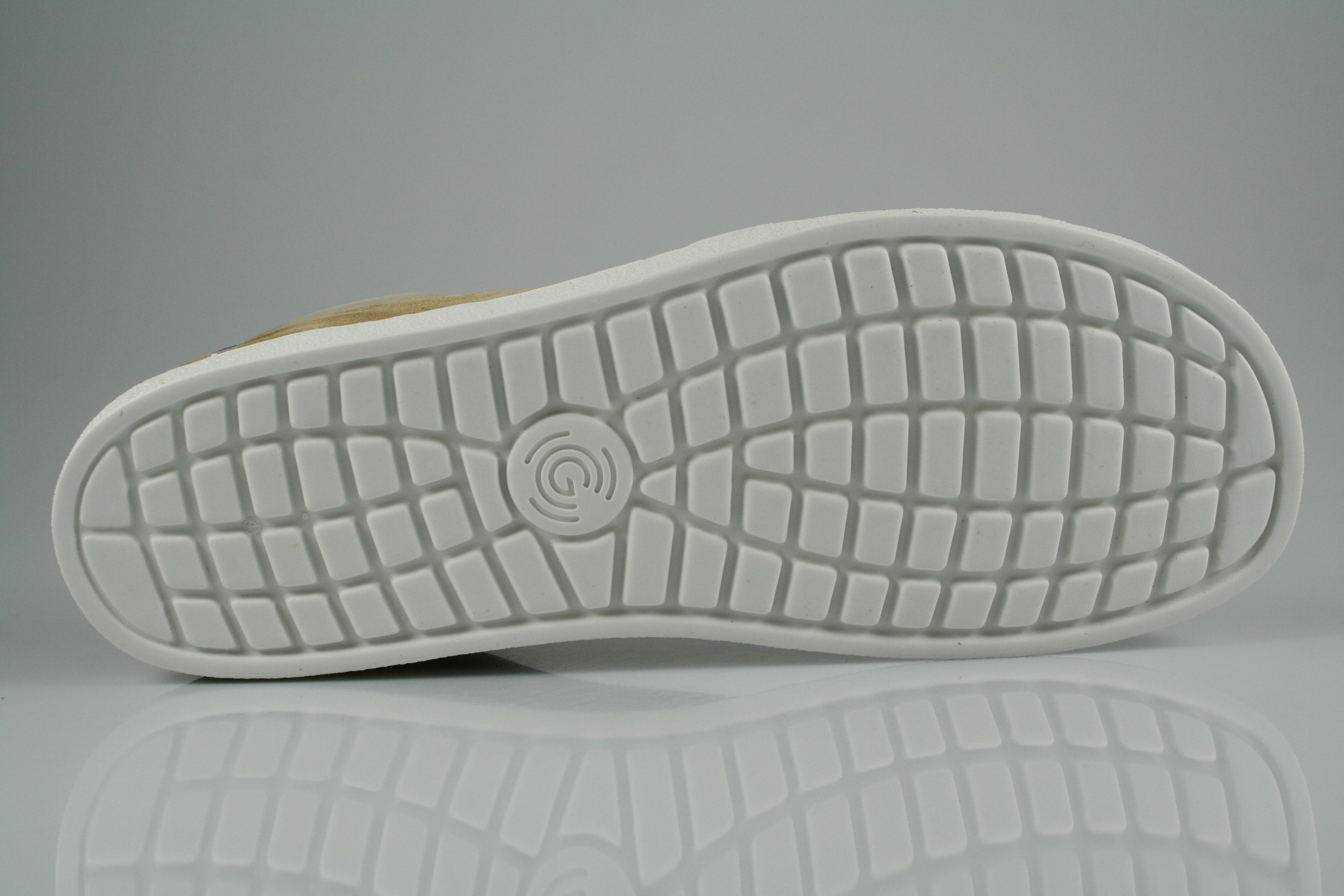 Typ: Barfußschuh; Farbe "beige/indigo"; Ausstattung:; - Obermaterial: Velourleder; - weiche Decksohle; - flexible Laufsohle; - gepolsterter Schaftrand; - Schnürsenkel zur Weitenregulierung