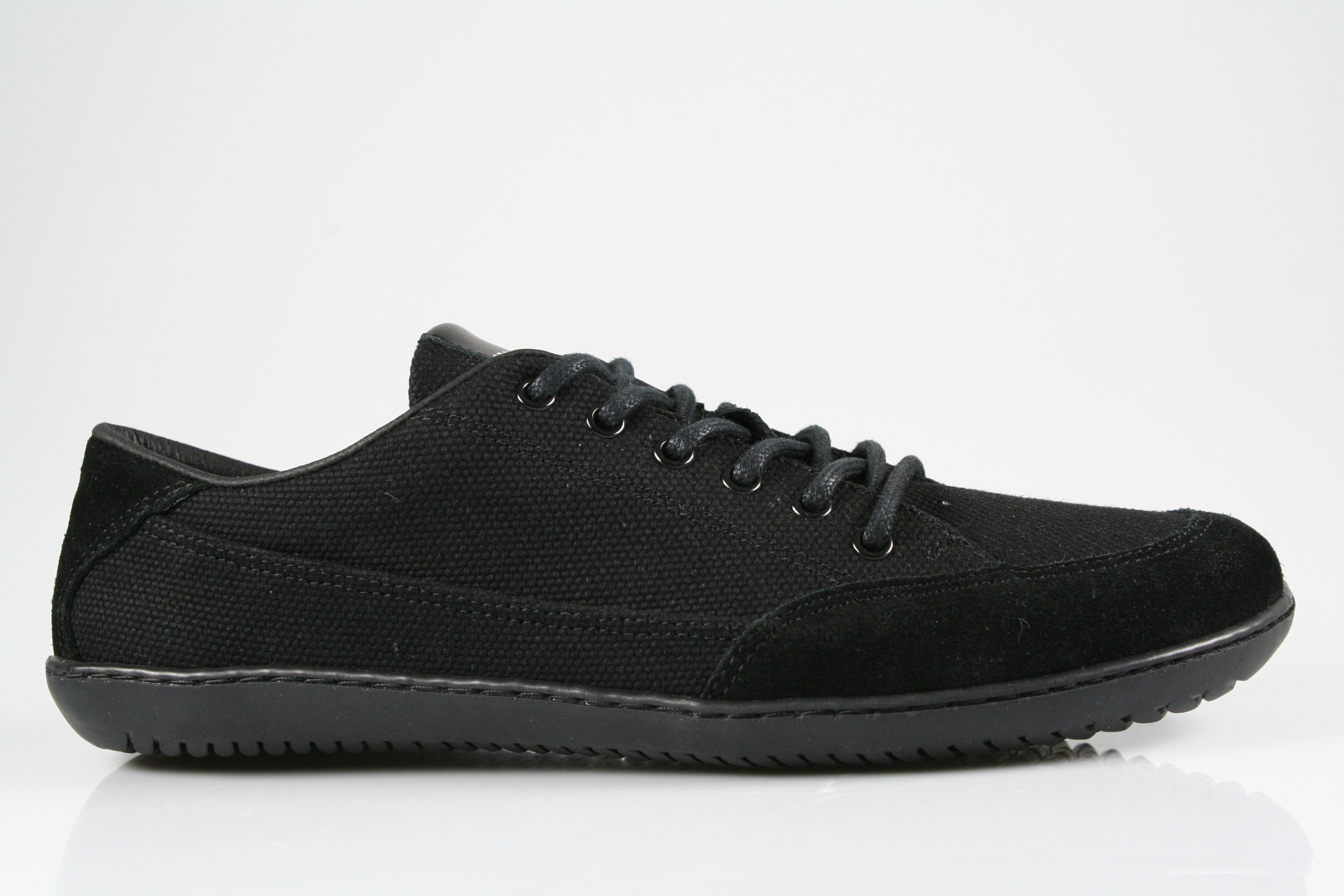 Typ: Barfußschuh; Farbe "black"; Ausstattung:; - gewebtes Obermaterial; - weiche Decksohle; - flexible Laufsohle; - gepolsterter Schaftrand; - Schnürsenkel zur Weitenregulierung