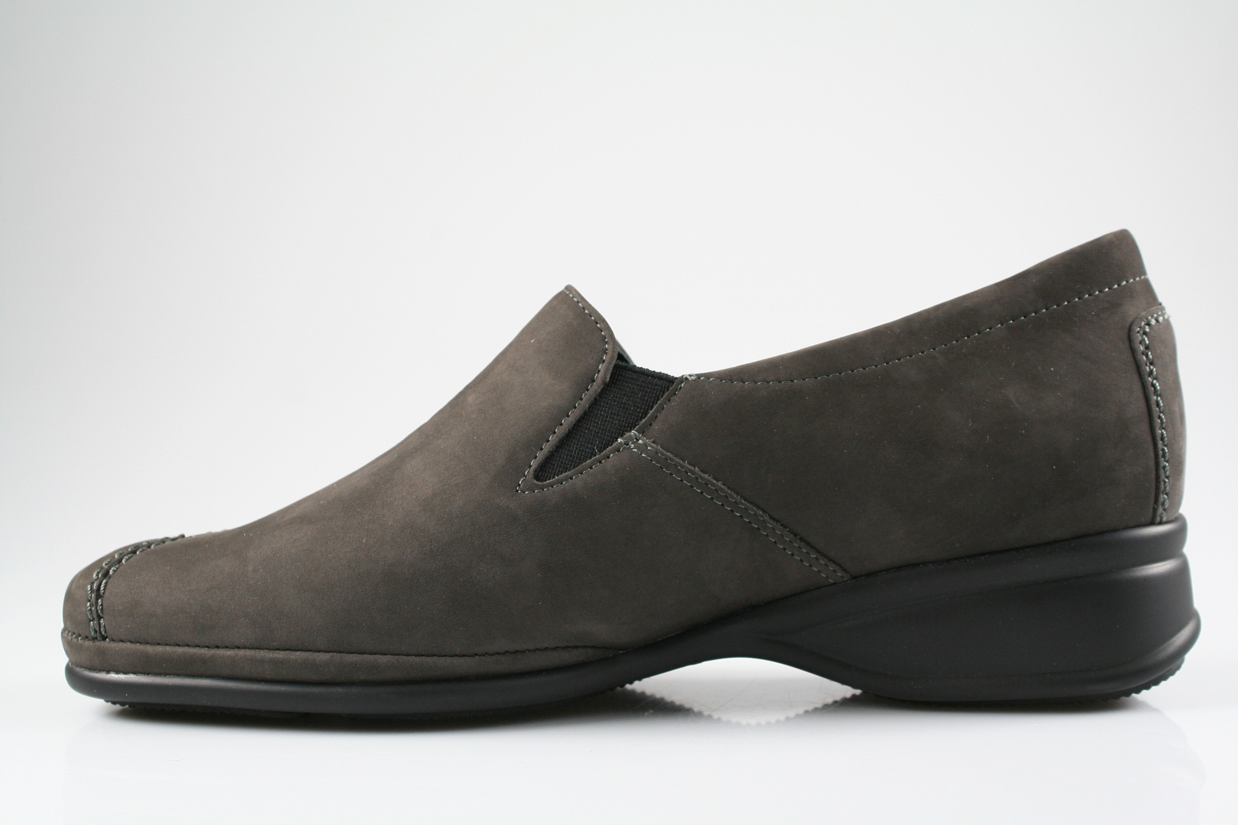 Typ: Slipper; Farbe: grau; Ausstattung:; - Obermaterial: Nubukleder; - Lederfutter; - herausnehmbares Lederfußbett; - flexible PU-Luftpolstersohle; - gepolsterter Schaftrand; - elastische Einsätze am Einschlupf; - Weite "H"