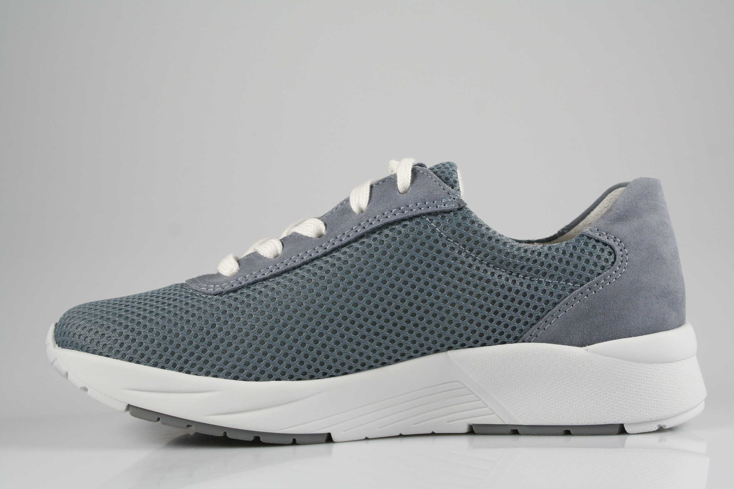 Typ: Halbschuh; Farbe "sky"; Ausstattung:; - Obermaterial: Mesh, Velourleder; - herausnehmbares Fußbett; - leichte und flexible Laufsohle; - gepolsterter Schaftrand; - Schnürsenkel zur Weitenregulierung