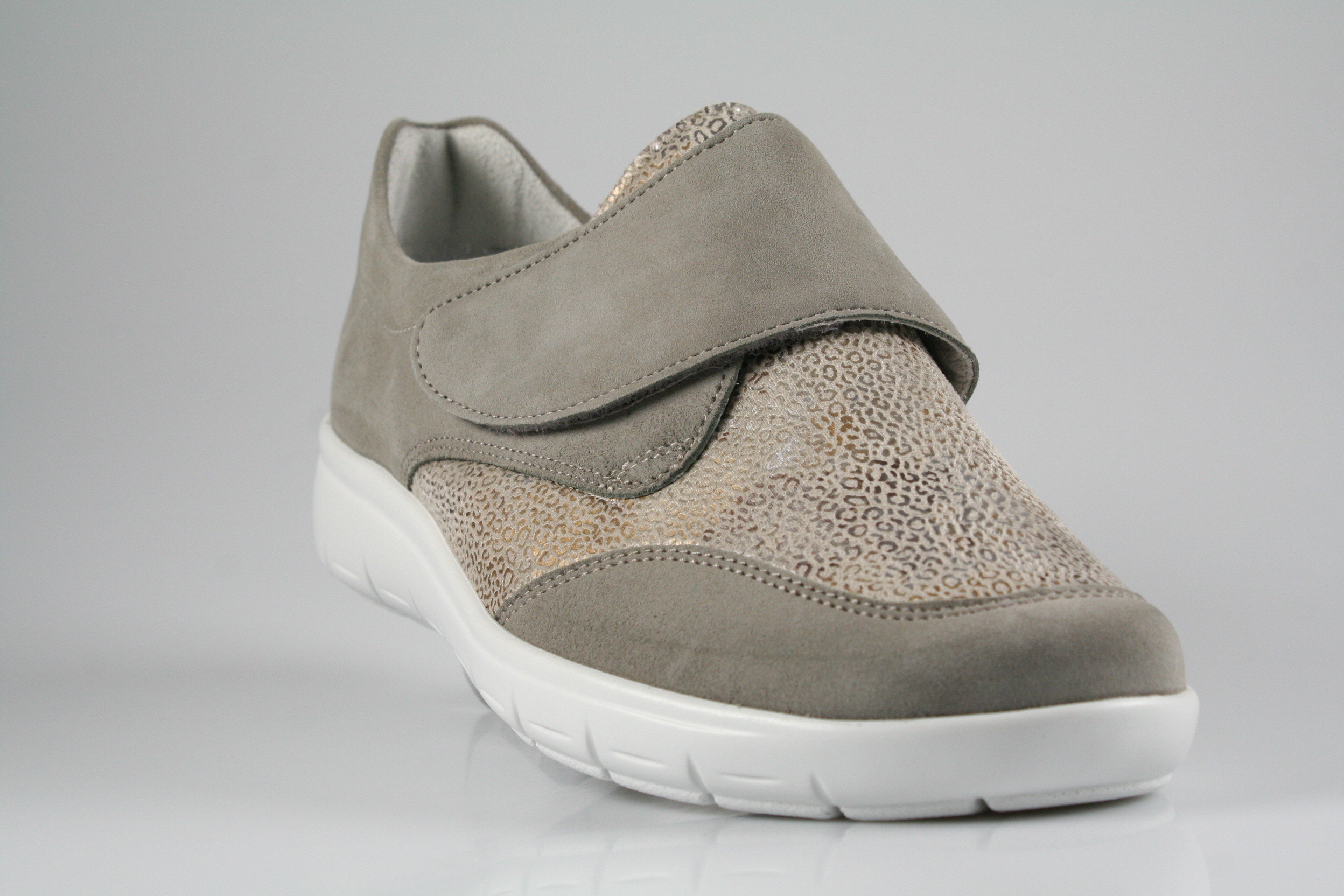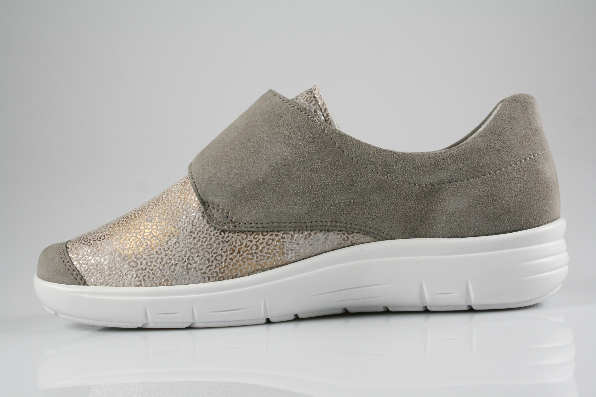 Typ: Halbschuh; Farbe: "panna"; Ausstattung:; - Obermaterial: Velourleder/Leo-Stretch; - weiches Wechselfußbett mit Fersenpolster; - PU-Luftpolstersohle; - Klettverschluss; - 25mm Absatzhöhe; - Weite "K"