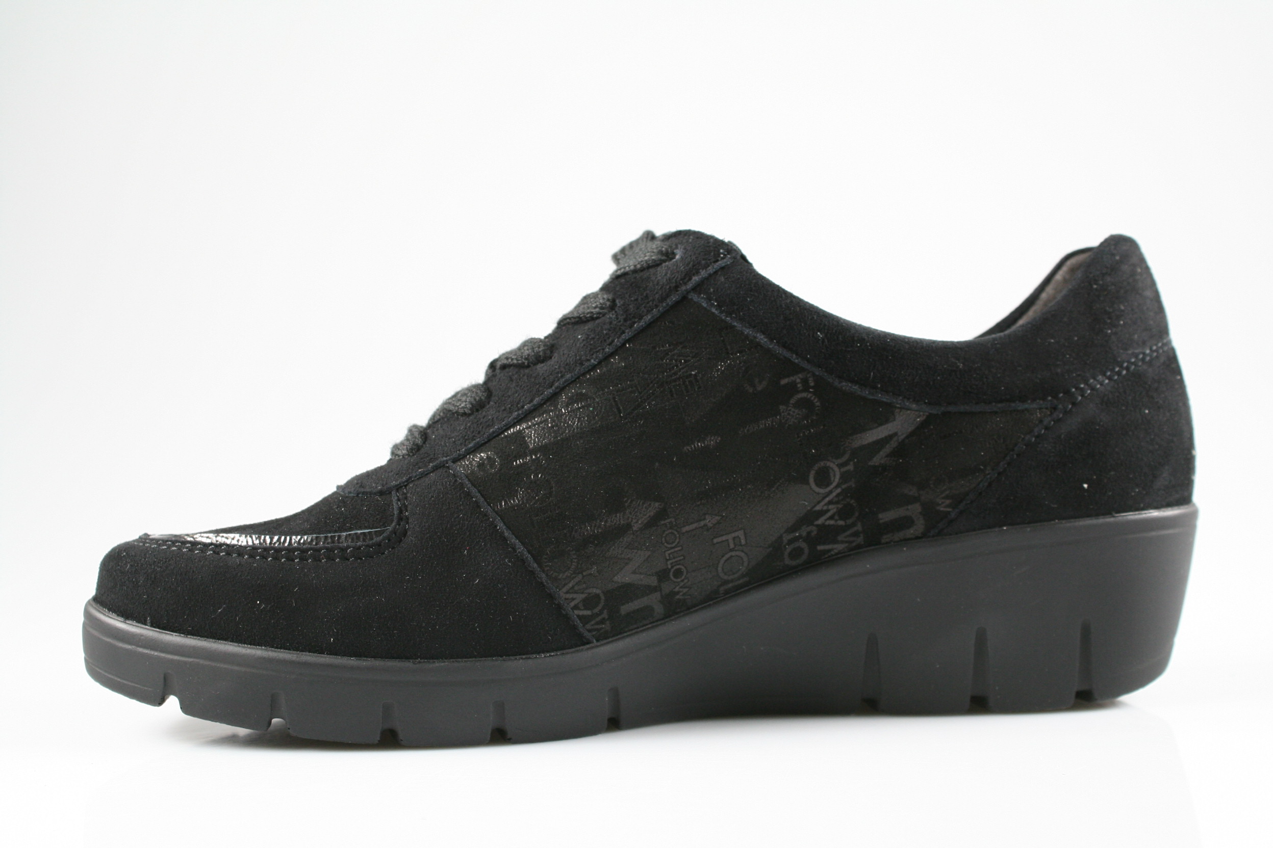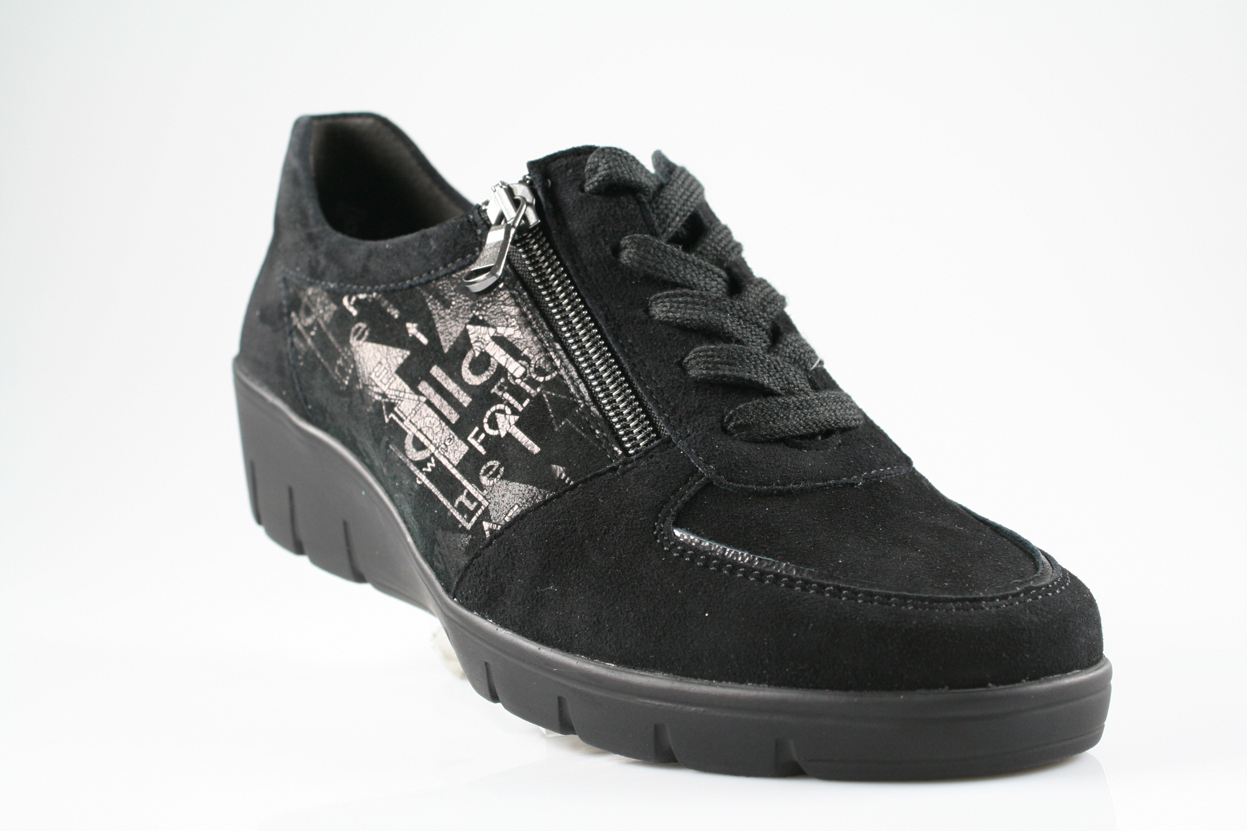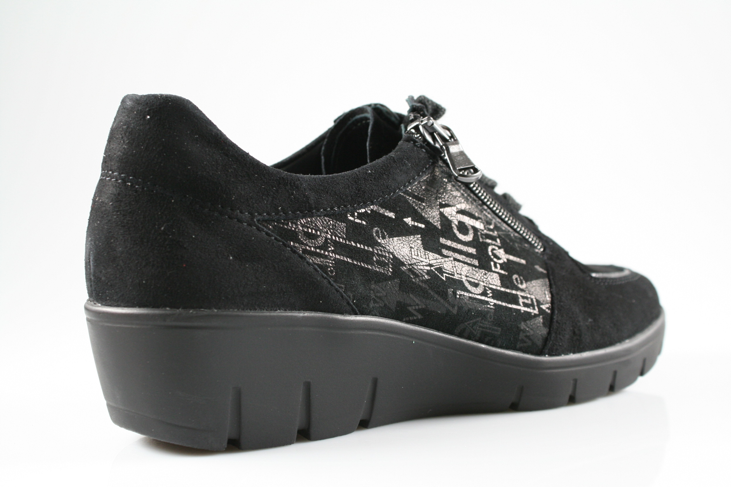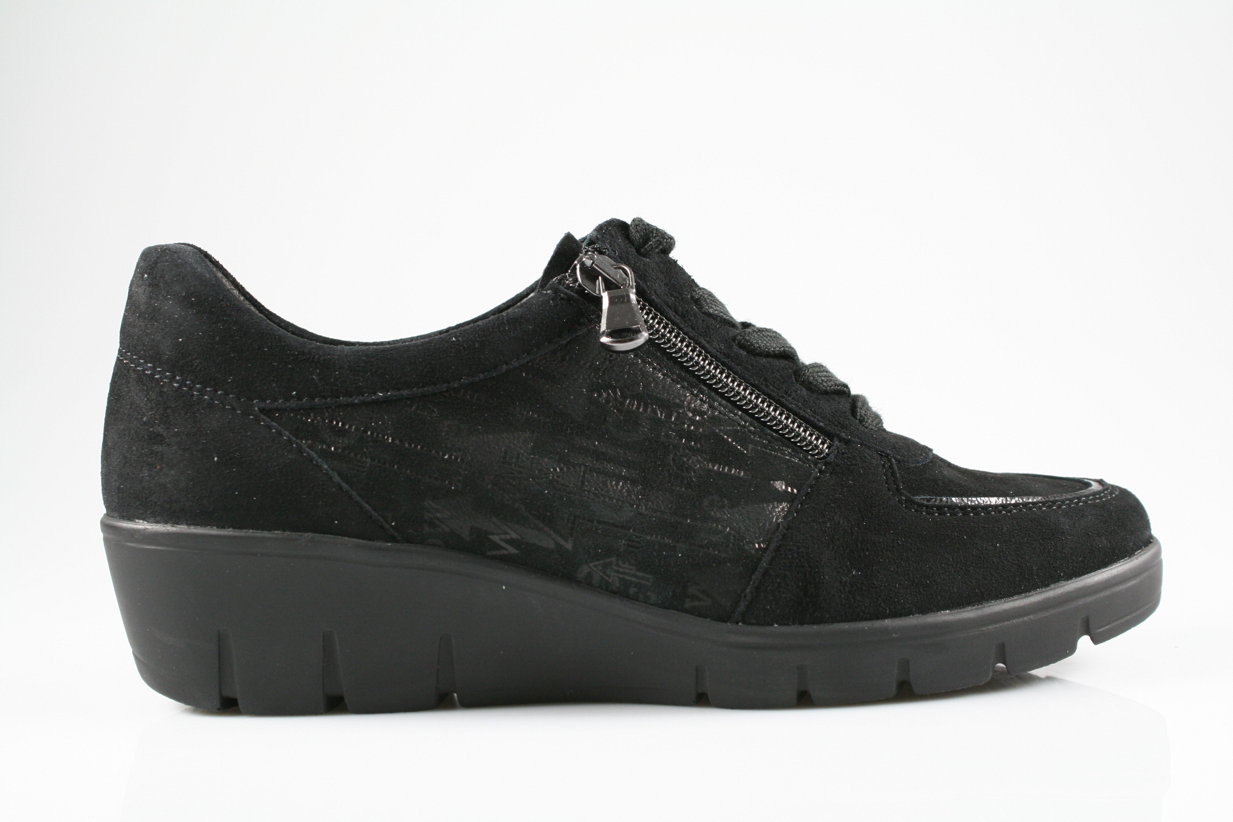 Typ: Halbschuh; Farbe: schwarz; Ausstattung:; - Obermaterial: Velourleder kombi.; - Lederfutter; - lederbezogenes Wechselfußbett; - Reißverschluss und Schnürsenkel; - gepolsterter Schaftrand; - leichte, flexible PU-Luftpolstersohle; - Weite "H";