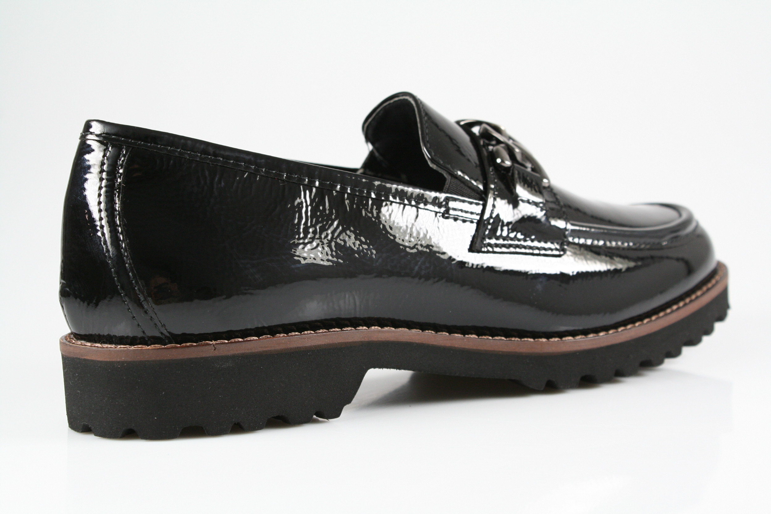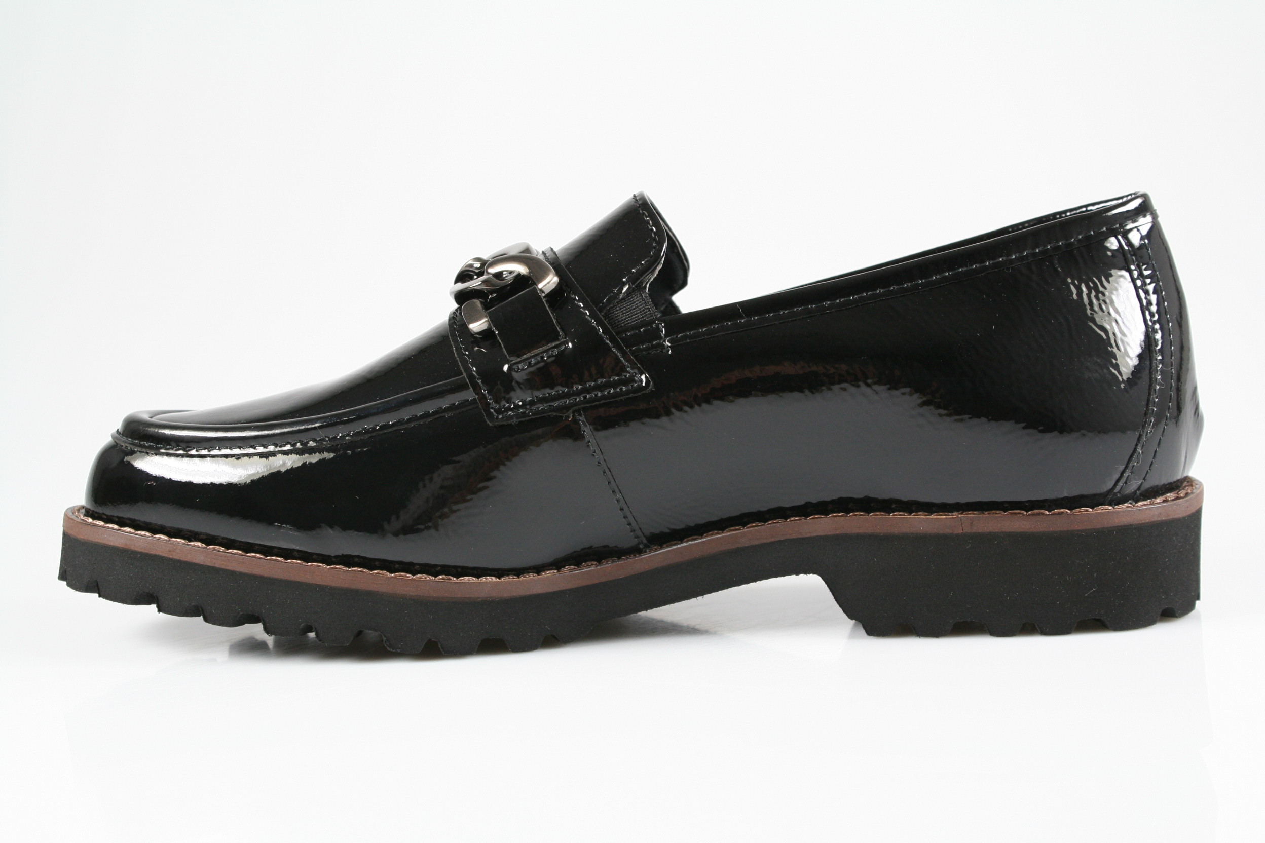 Typ: Mokassins; Farbe "schwarz"; Ausstattung:; - Obermaterial: Nappalack; - herausnehmbares Fußbett; - leichte Laufsohle; - gepolsterter Schaftrand;