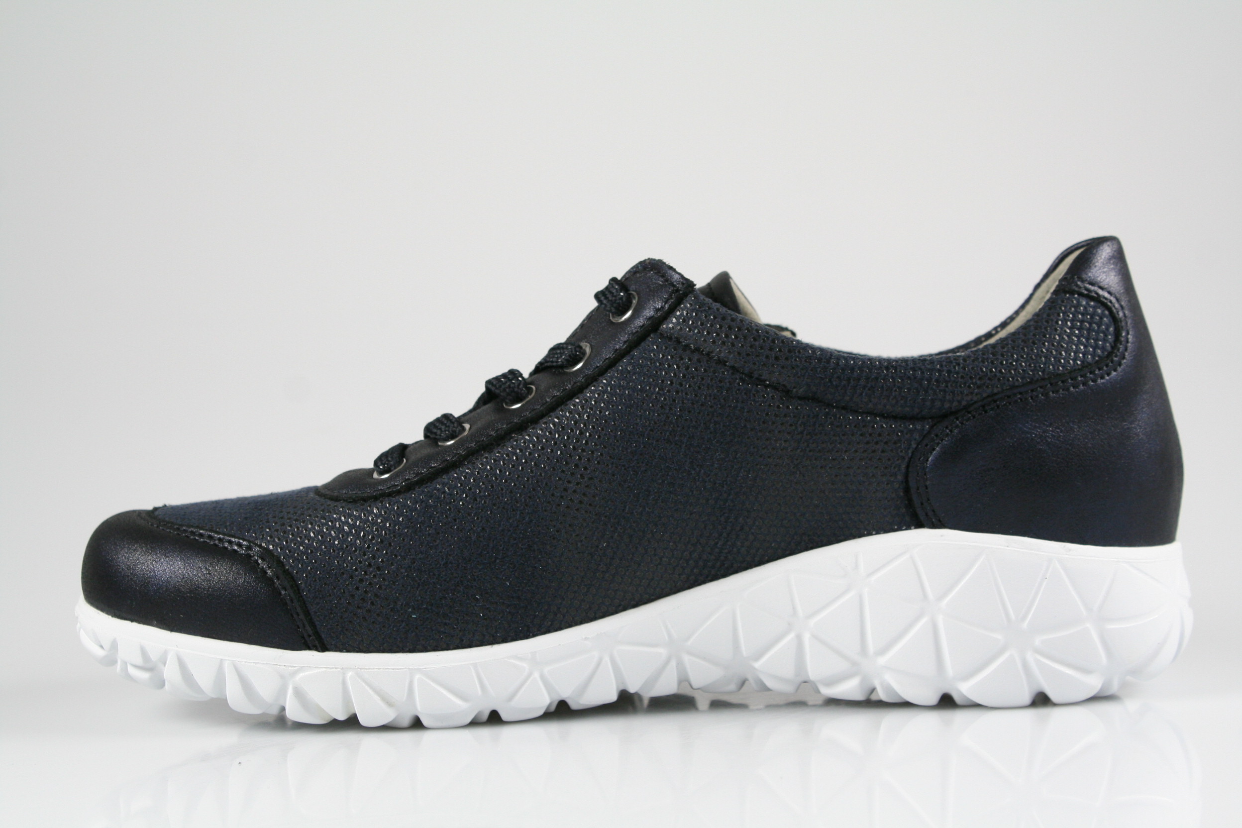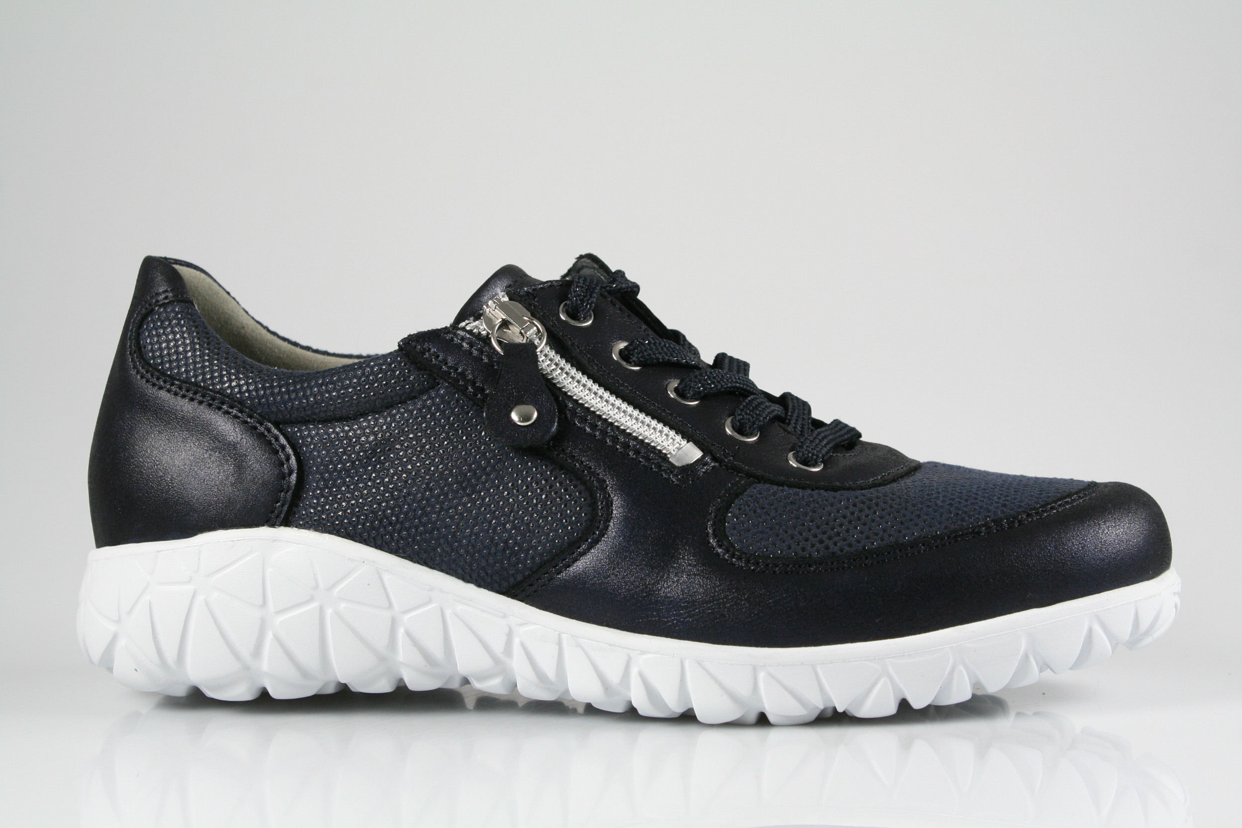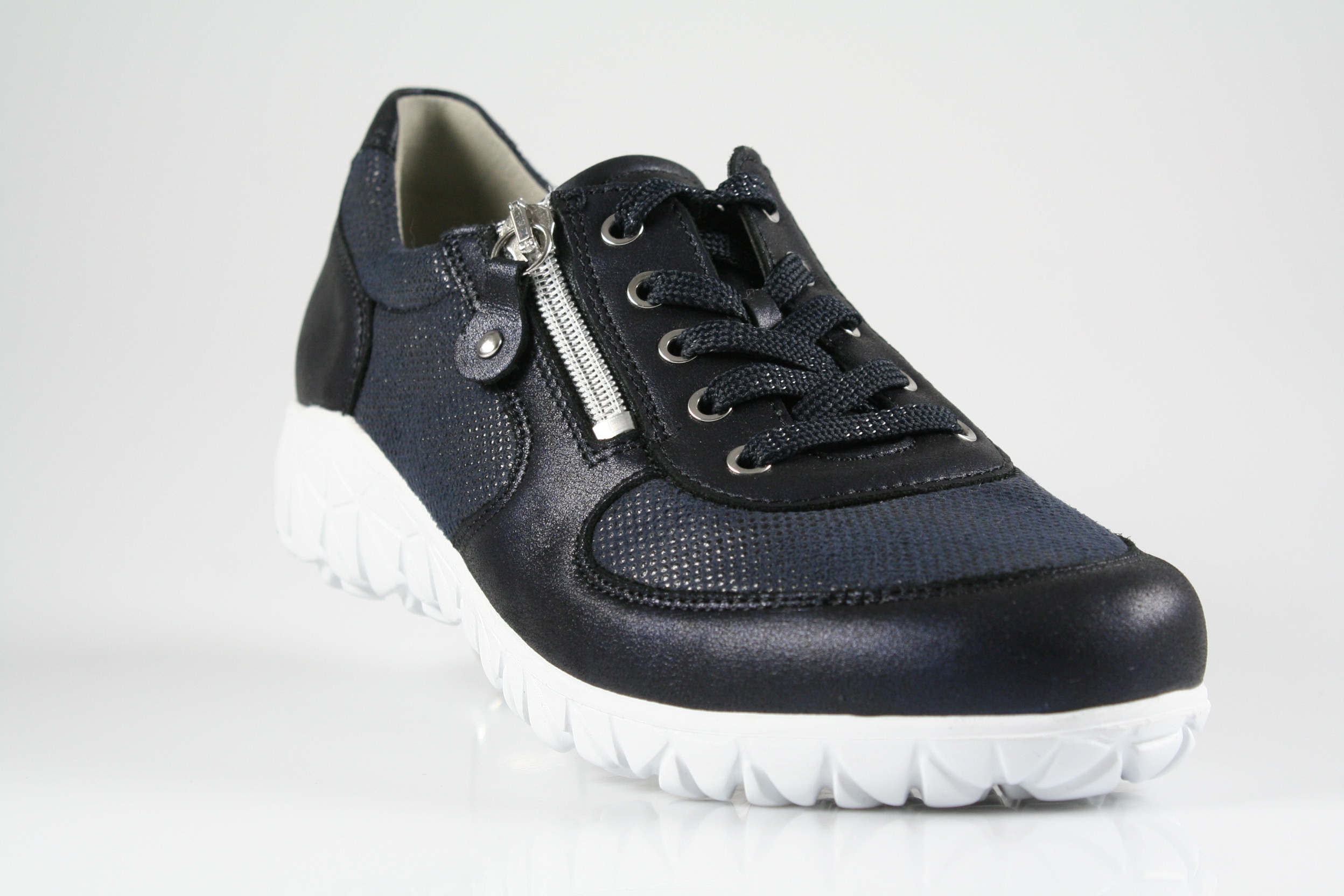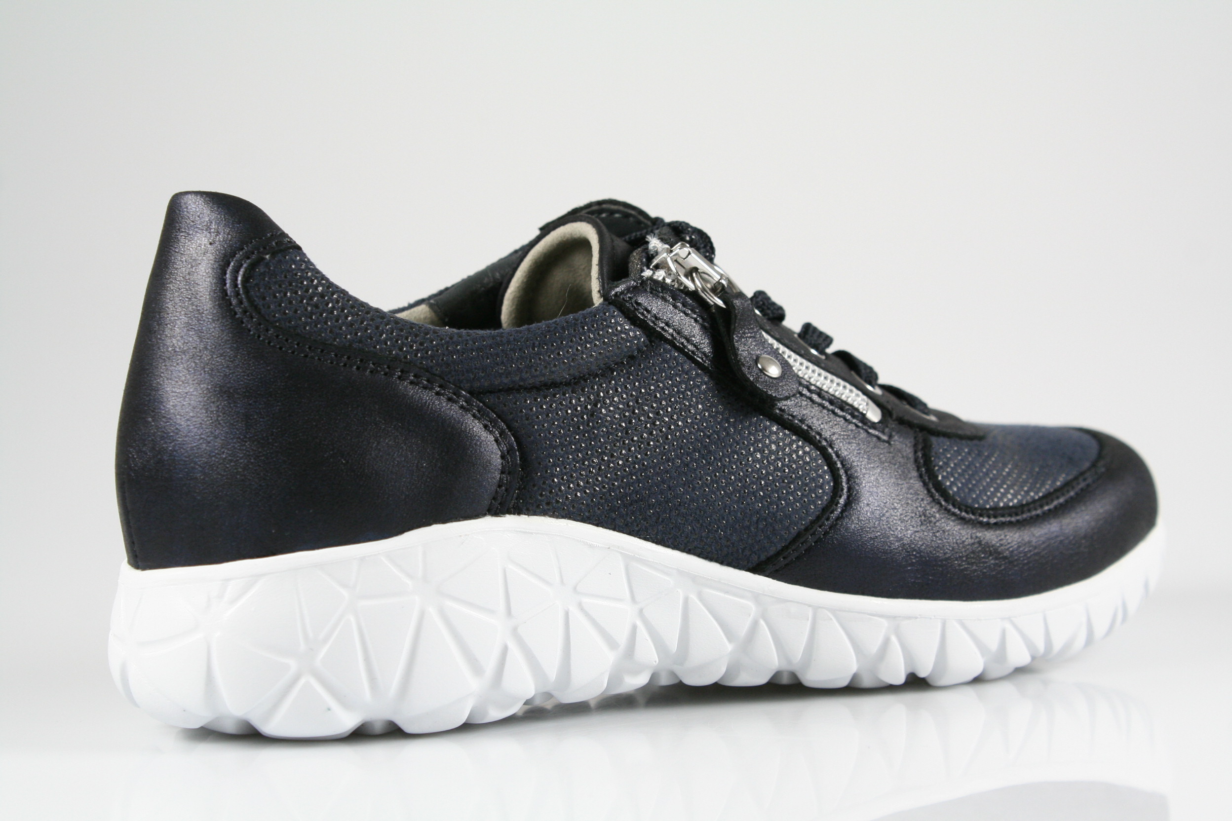 Typ: Halbschuh; Farbe: "notte"; Ausstattung:; - Obermaterial: Leder, Stretch; - herausnehmbares Fußbett; - flexible Laufsohle; - gepolsterter Schaftrand; - Schnürsenkel und Reißverschluss; - Weite "H"