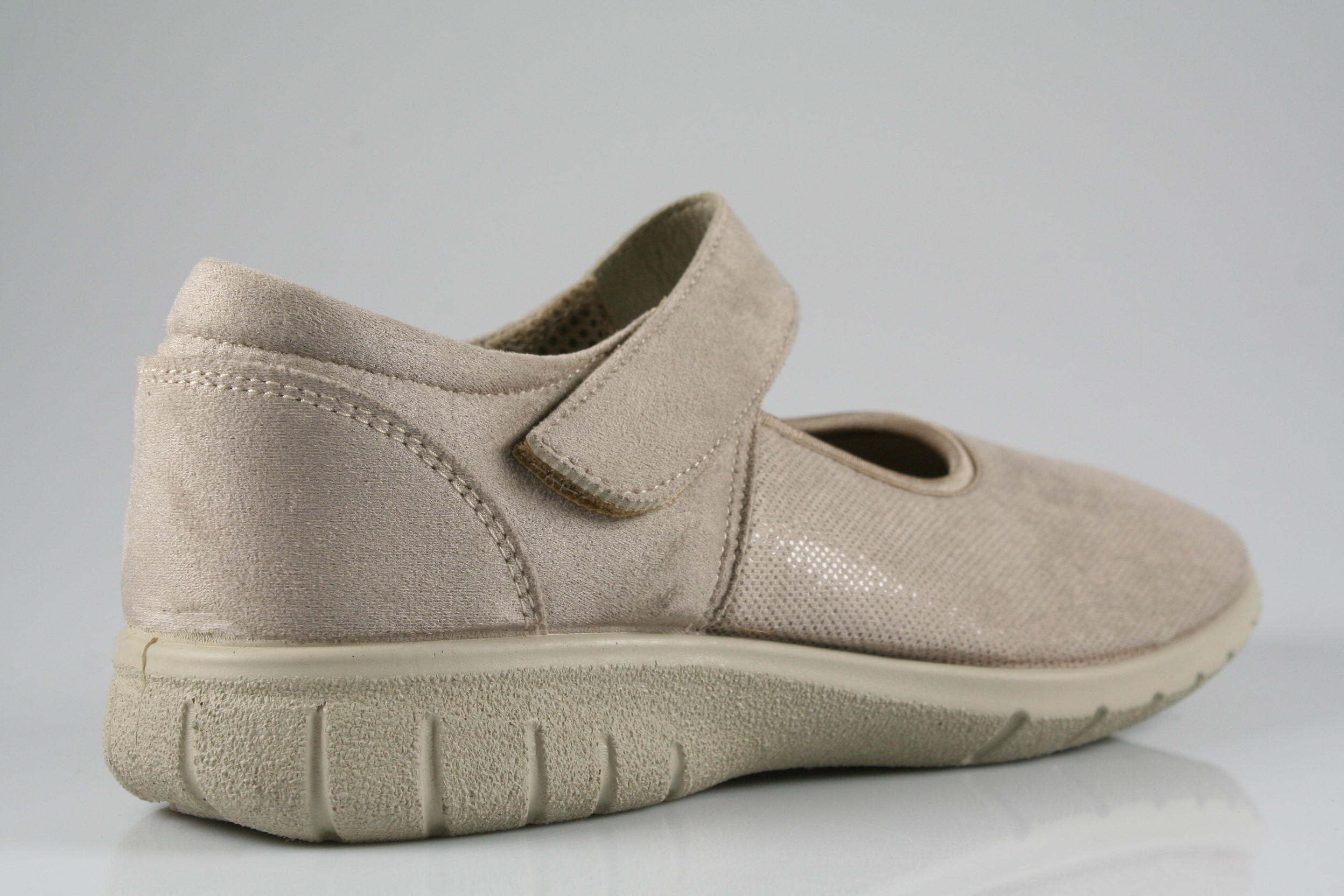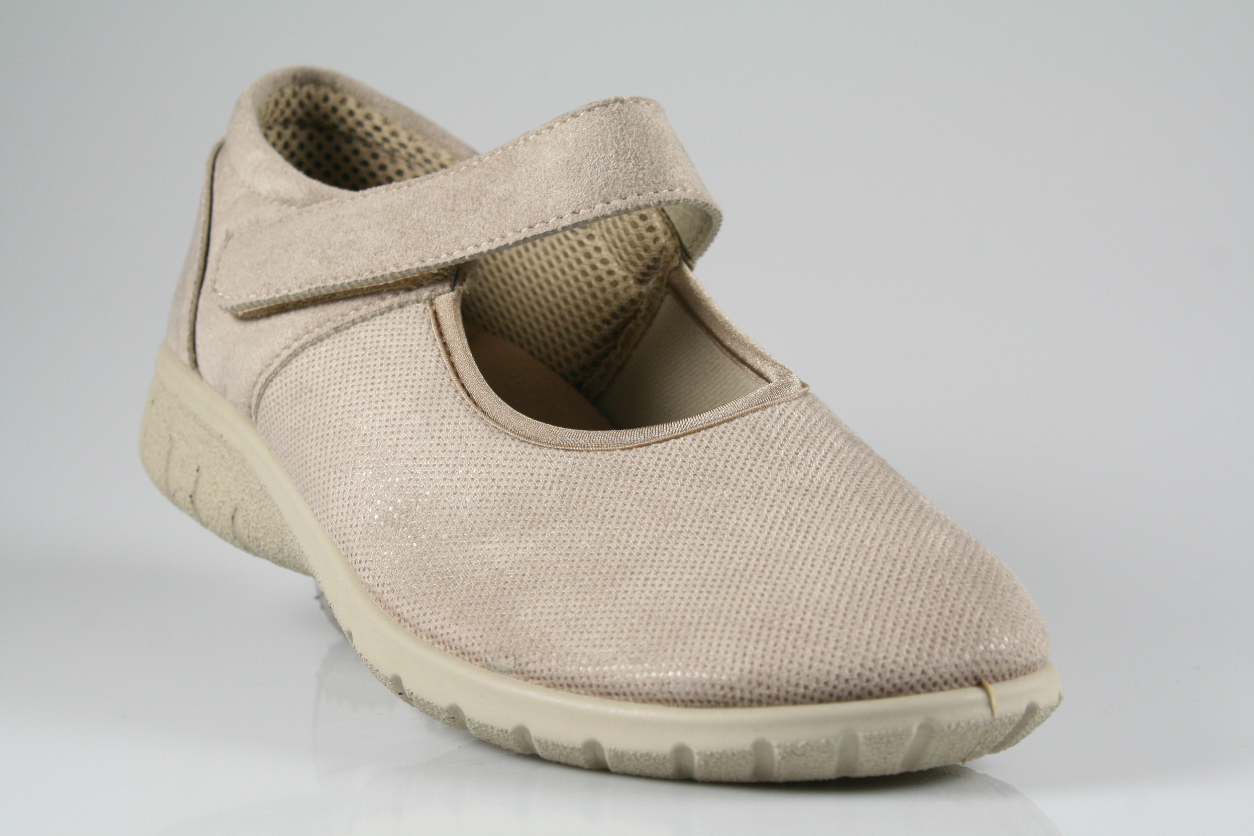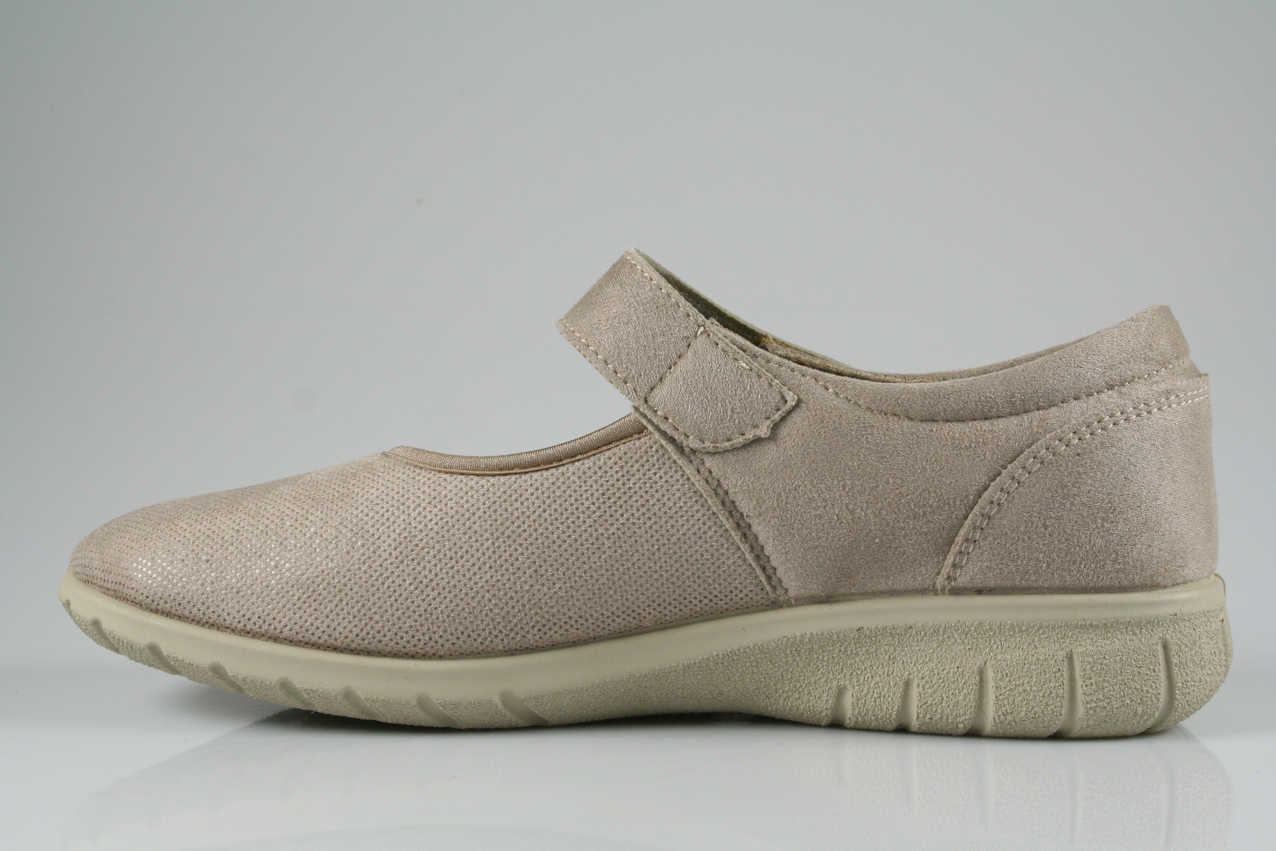 Typ: Slipper; Farbe: beige; Ausstattung:; - Obermaterial: Synthetik; - herausnehmbares Fußbett; - superflexible Laufsohle; - verstärkte Fersenkappe; - Klettverschluss zur Weitenregulierung