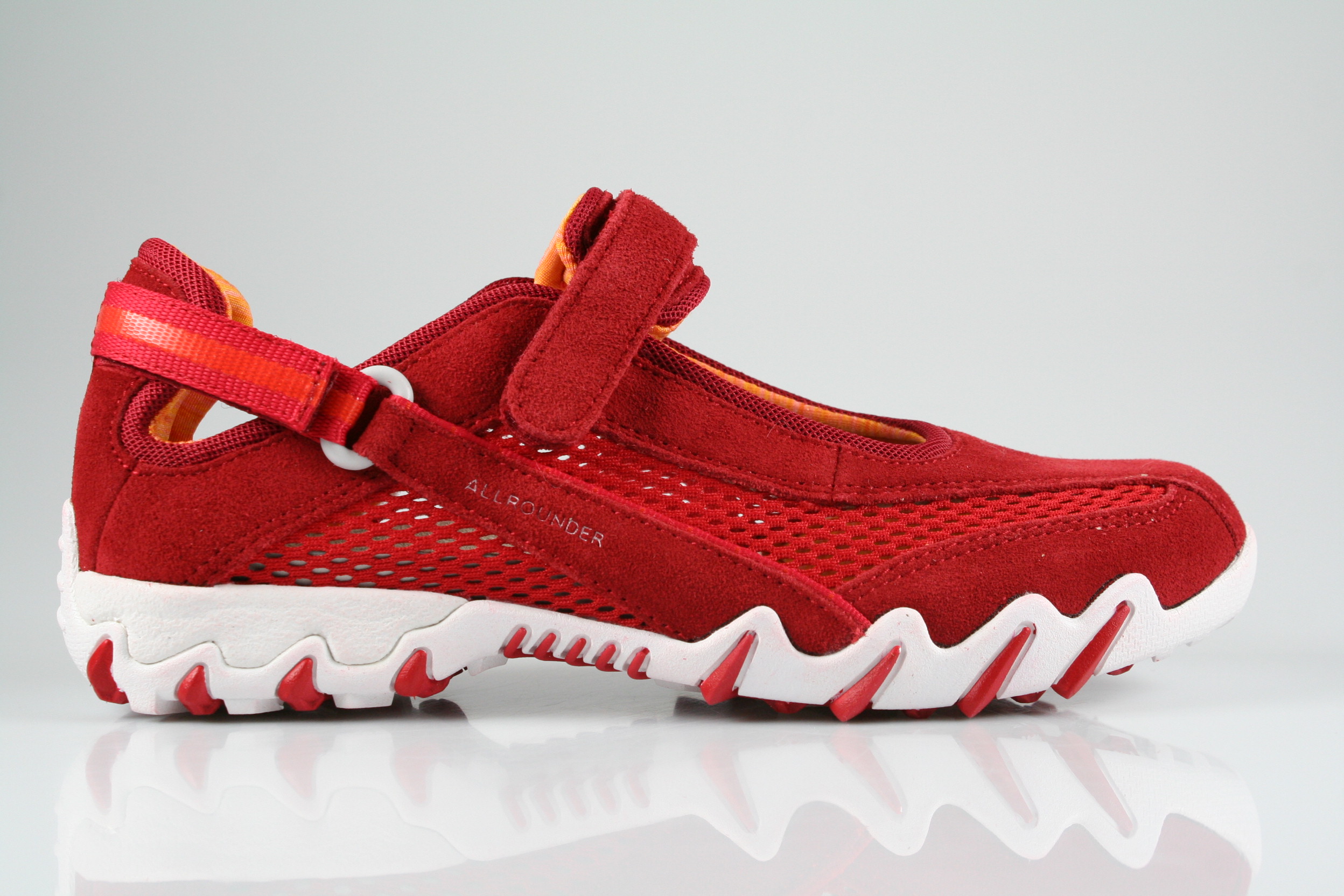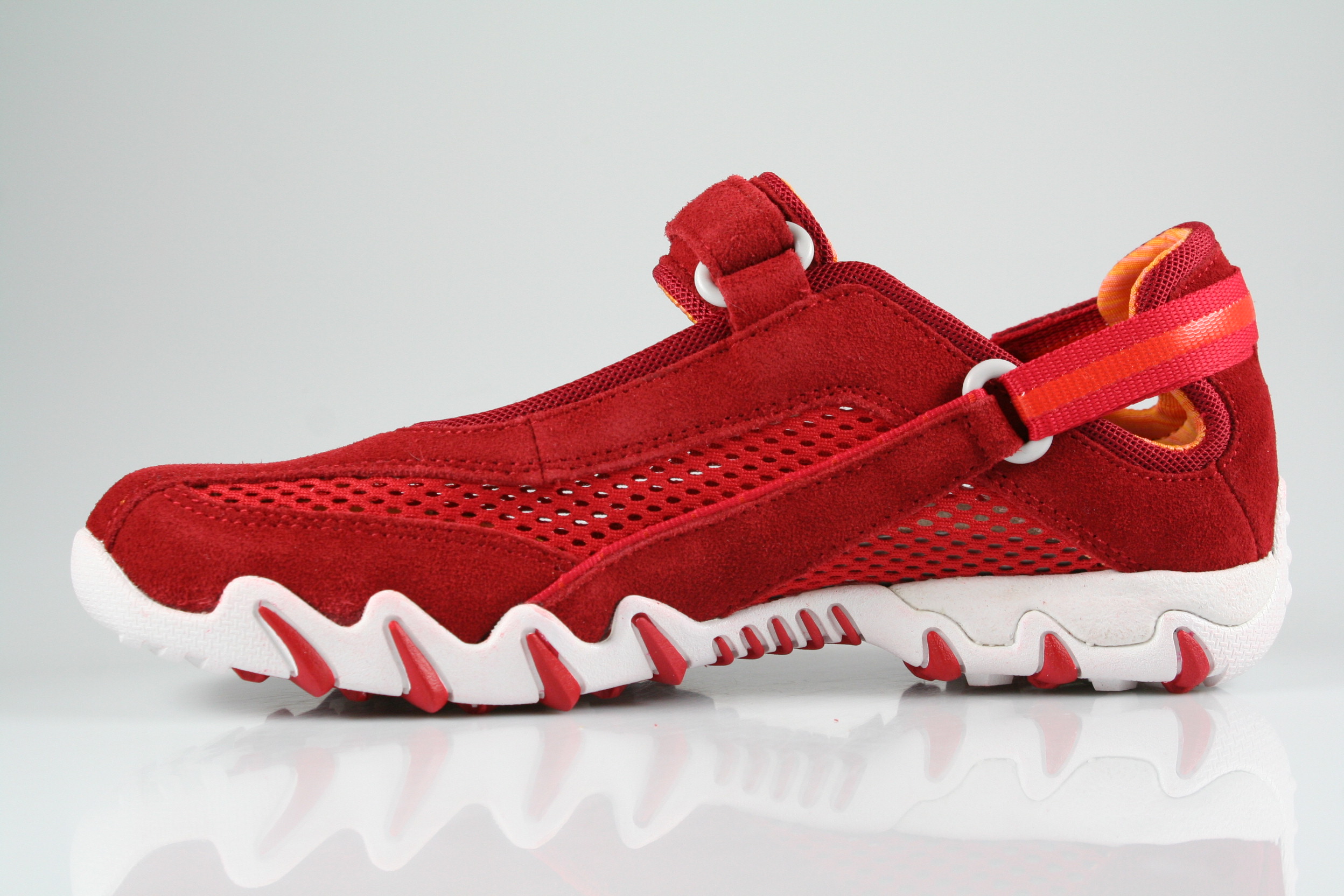 Typ: Slipper; Farbe: "barbados sherry"; Ausstattung:; - Obermaterial: Velourleder, open Mesh; - Futter mit punktueller Polsterung; - herausnehmbares Fußbett ; - flexible, abriebfeste Laufsohle; - Riemchen mit Klettverschluss; - Modell "Niro"