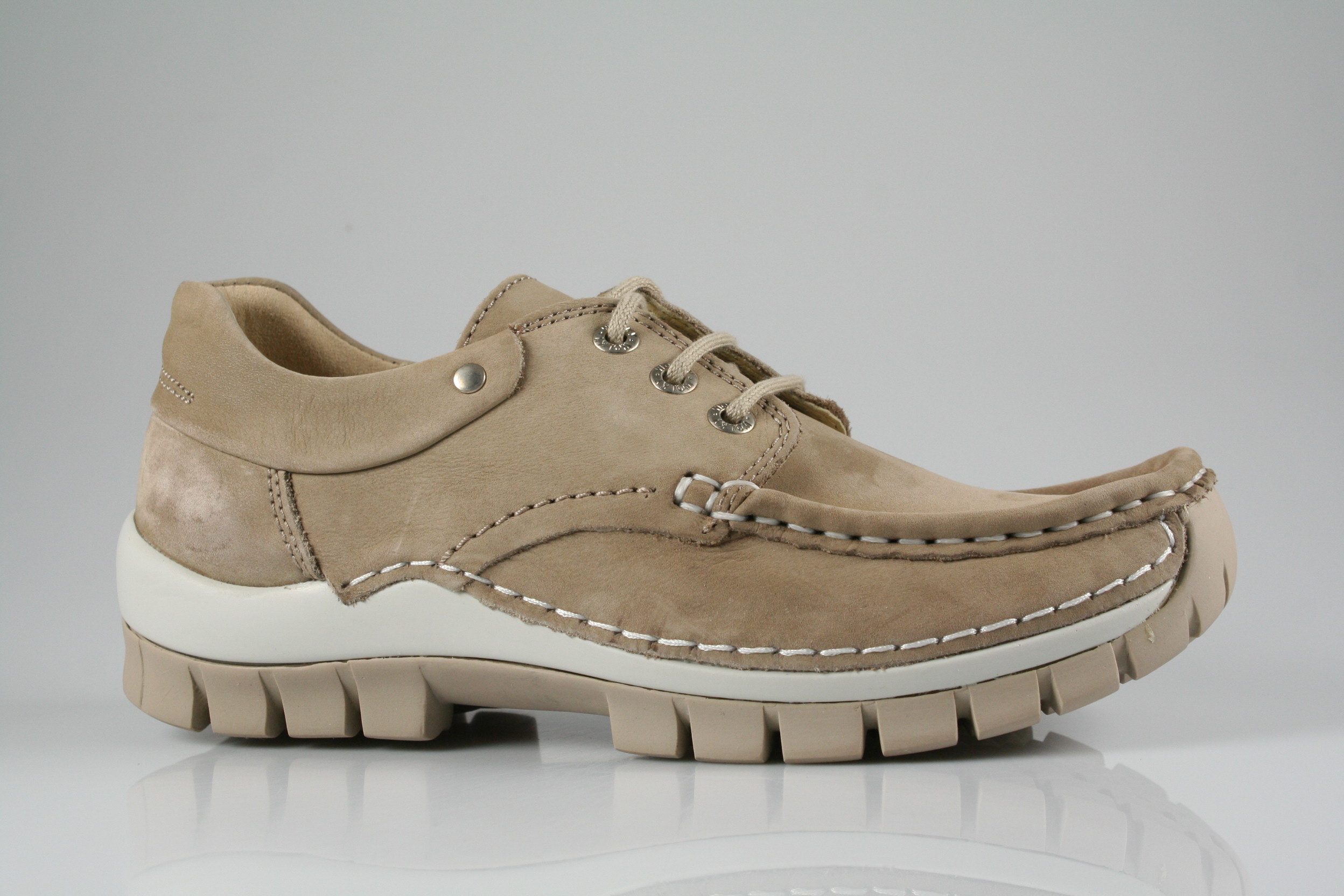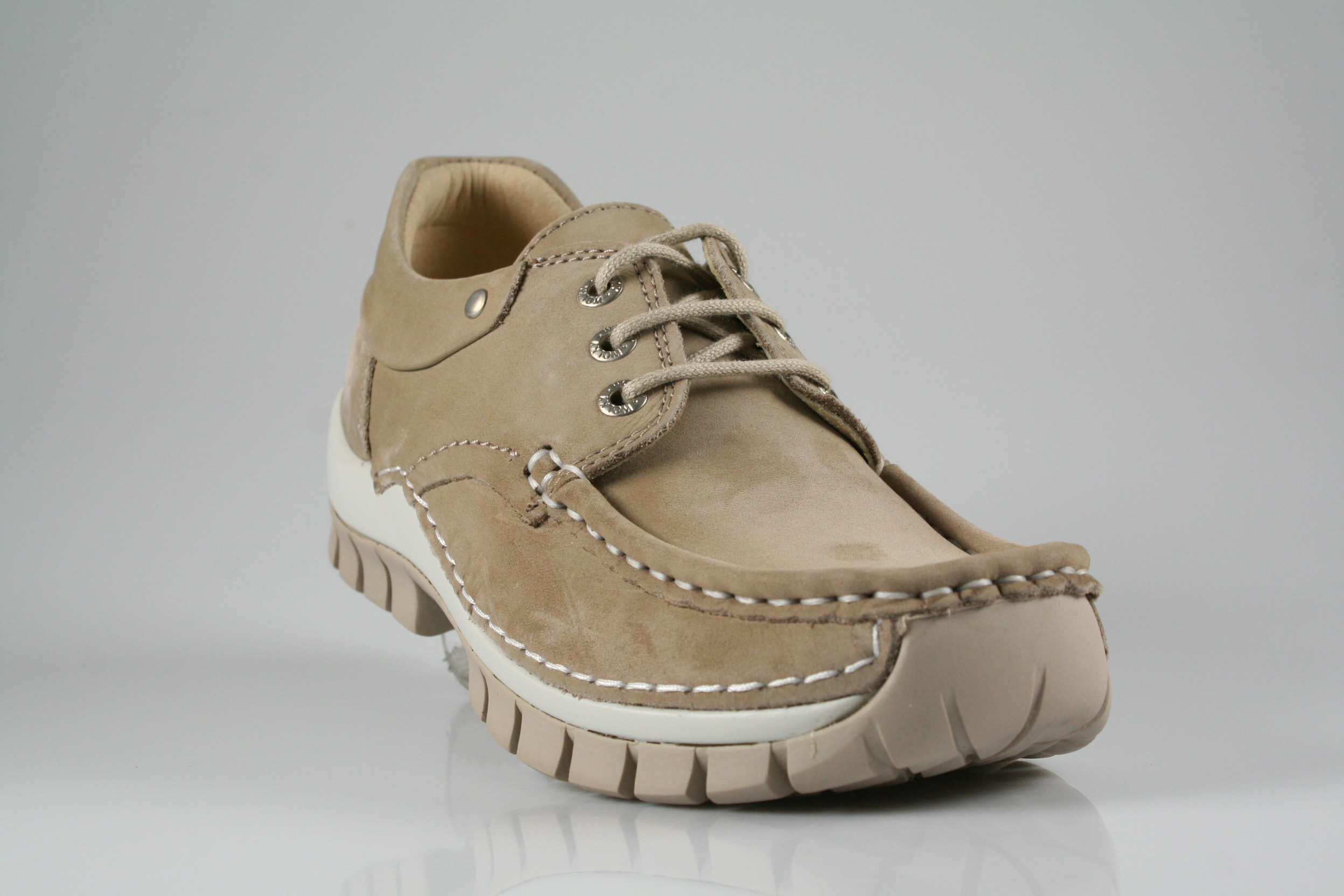 Typ: Halbschuh; Farbe "safari"; Ausstattung:; - Obermaterial: Nubukleder; - herausnehmbares Fußbett; - leichte Laufsohle; - gepolsterter Schaftrand; - Schnürsenkel zur Weitenregulierung