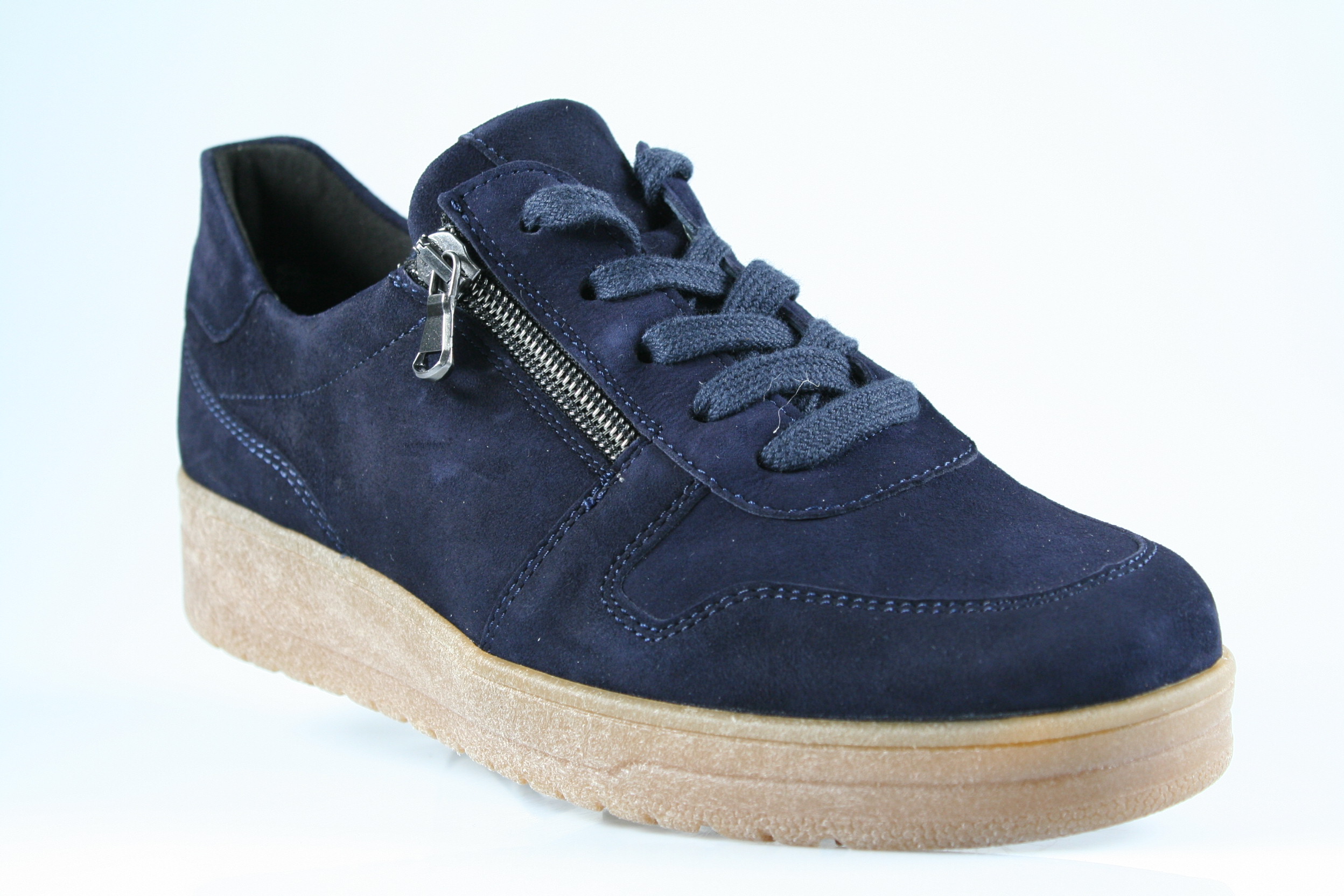 Typ: Sneaker; Farbe "midnightblue"; Ausstattung:; - Obermaterial: Velourleder; - herausnehmbares Fußbett; - leichte Laufsohle; - gepolsterter Schaftrand; - Schnürsenkel und Reißverschluss zur Weitenregulierung;