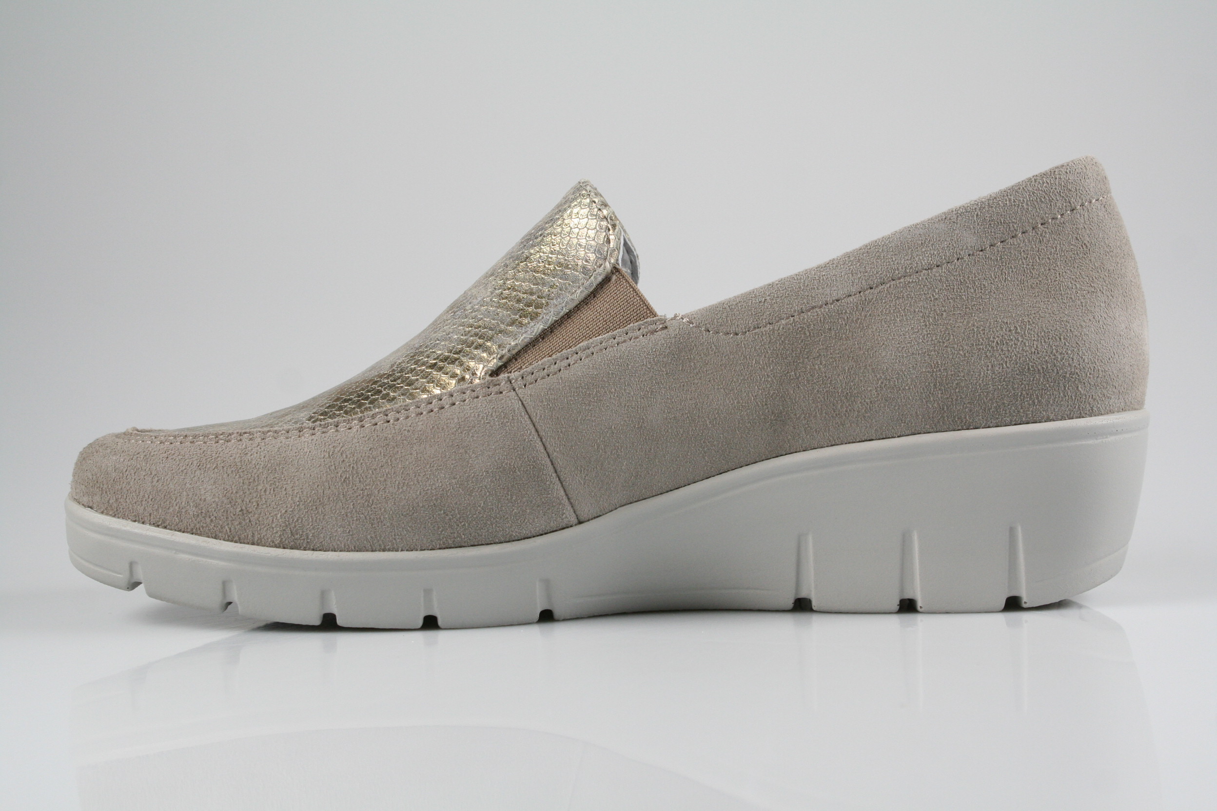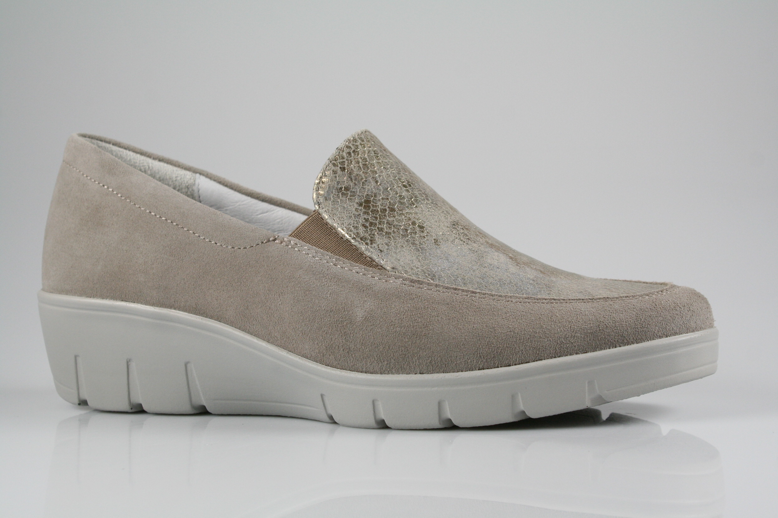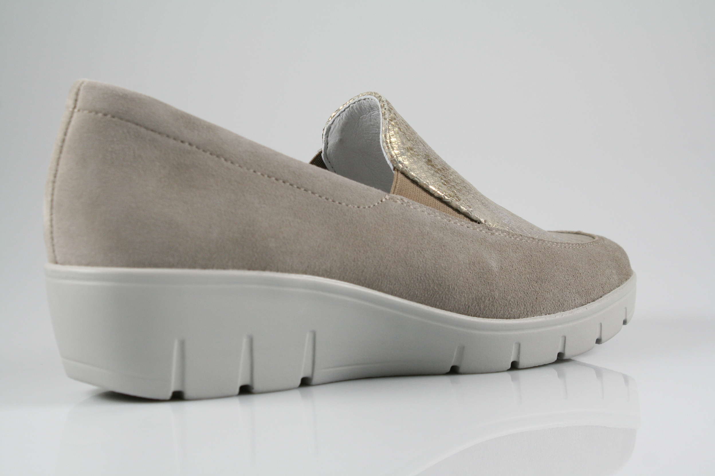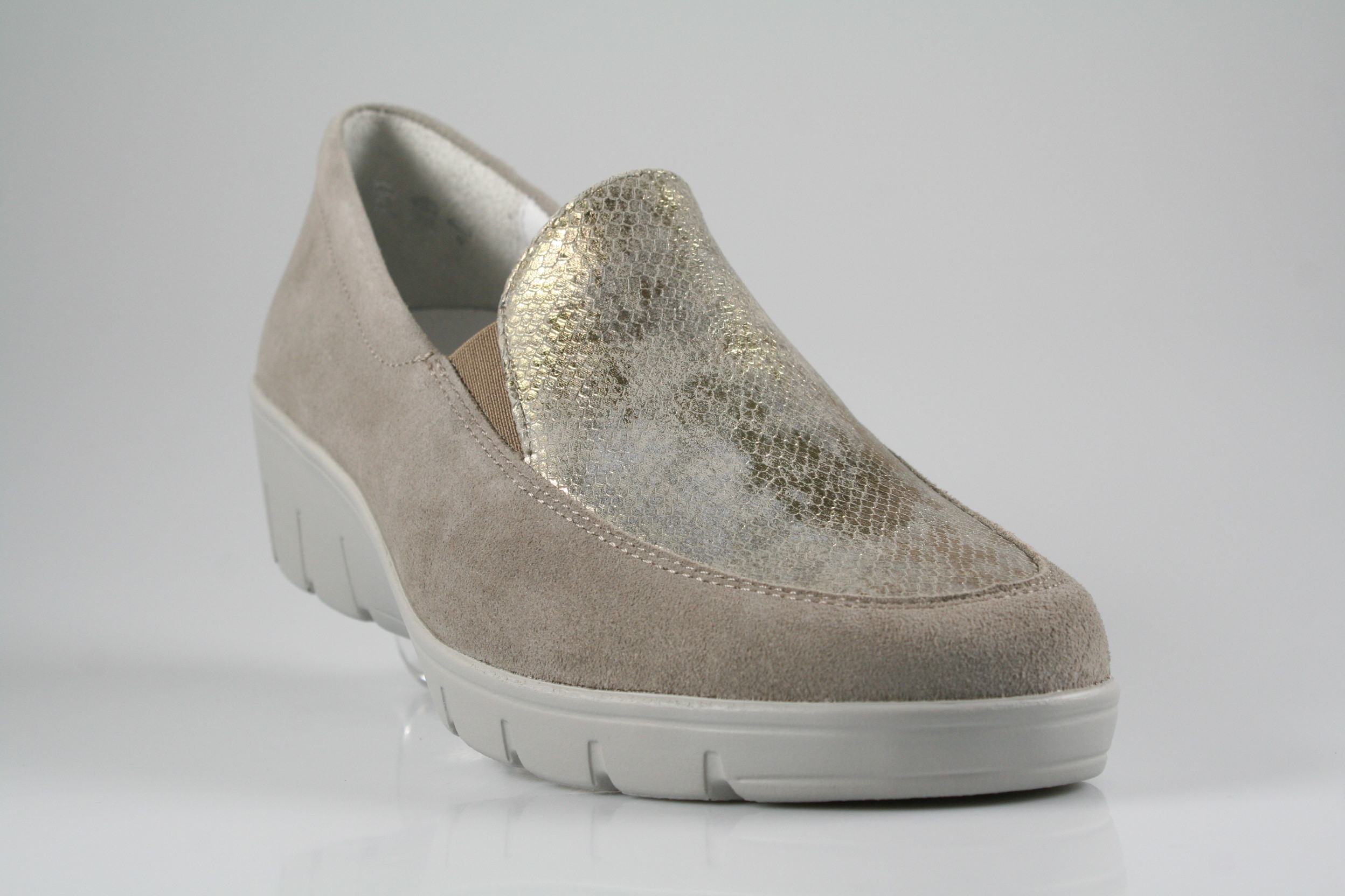 Typ: Slipper; Farbe: "panna"; Ausstattung:; - Obermaterial: Velourleder, kombiniert; - weiches Wechselfußbett mit Fersenpolster; - PU-Luftpolstersohle; - elastische Einsätze am Schaftrand; - 30mm Absatzhöhe; - Weite "H"