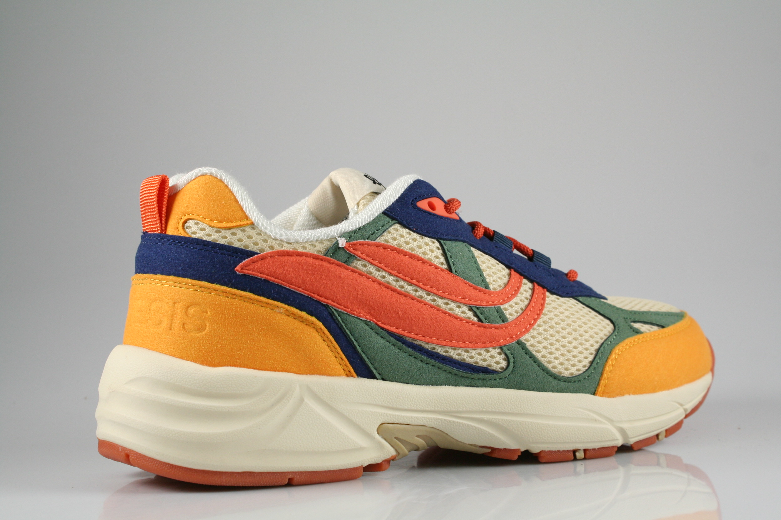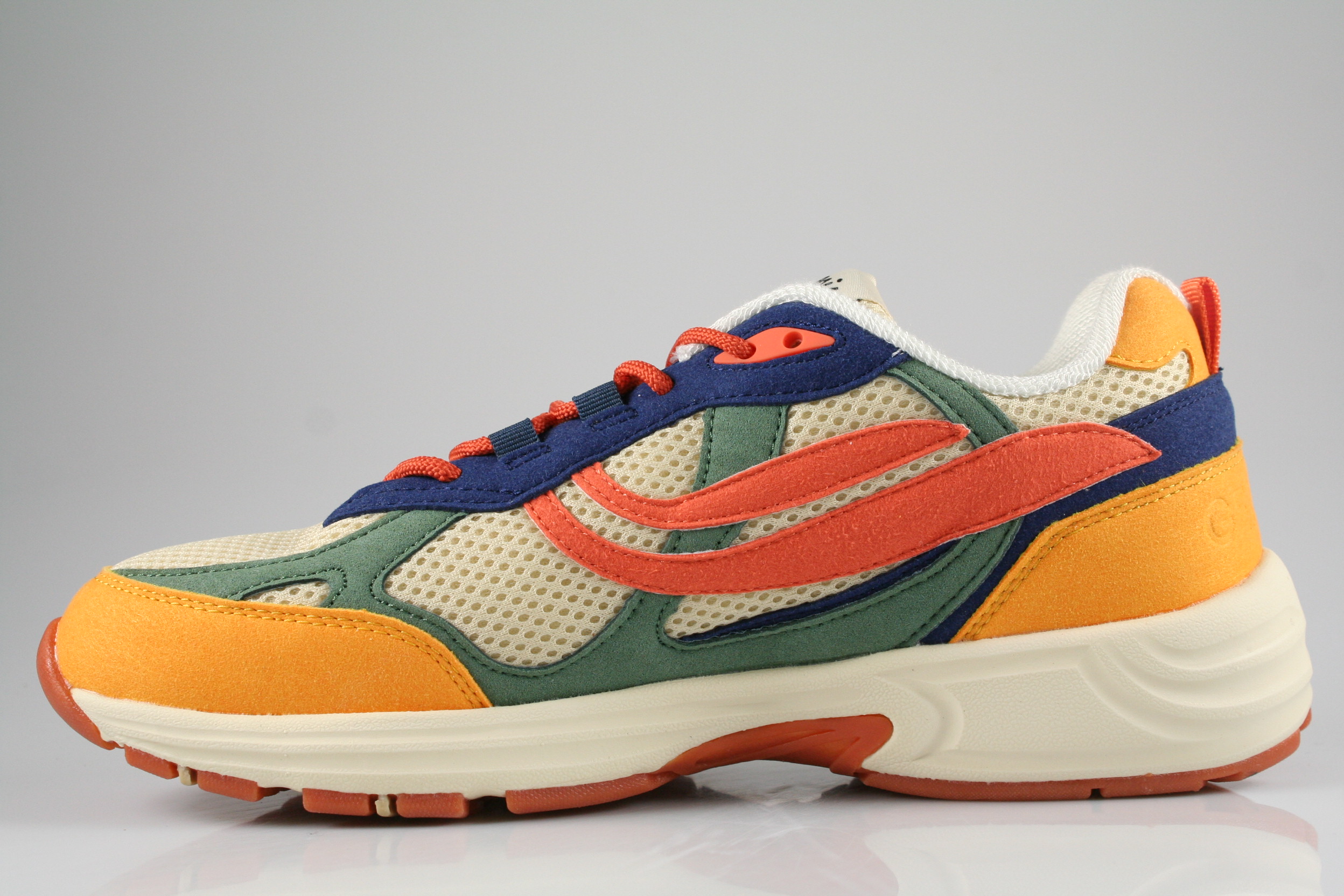 Typ: Sneaker; Farbe "mustard/shilf/orange"; Ausstattung:; - Obernaterial aus recycelten Materialien; - herausnehmbares Fußbett; - leichte Laufsohle; - gepolsterter Schaftrand; - Schnürsenkel zur Weitenregulierung