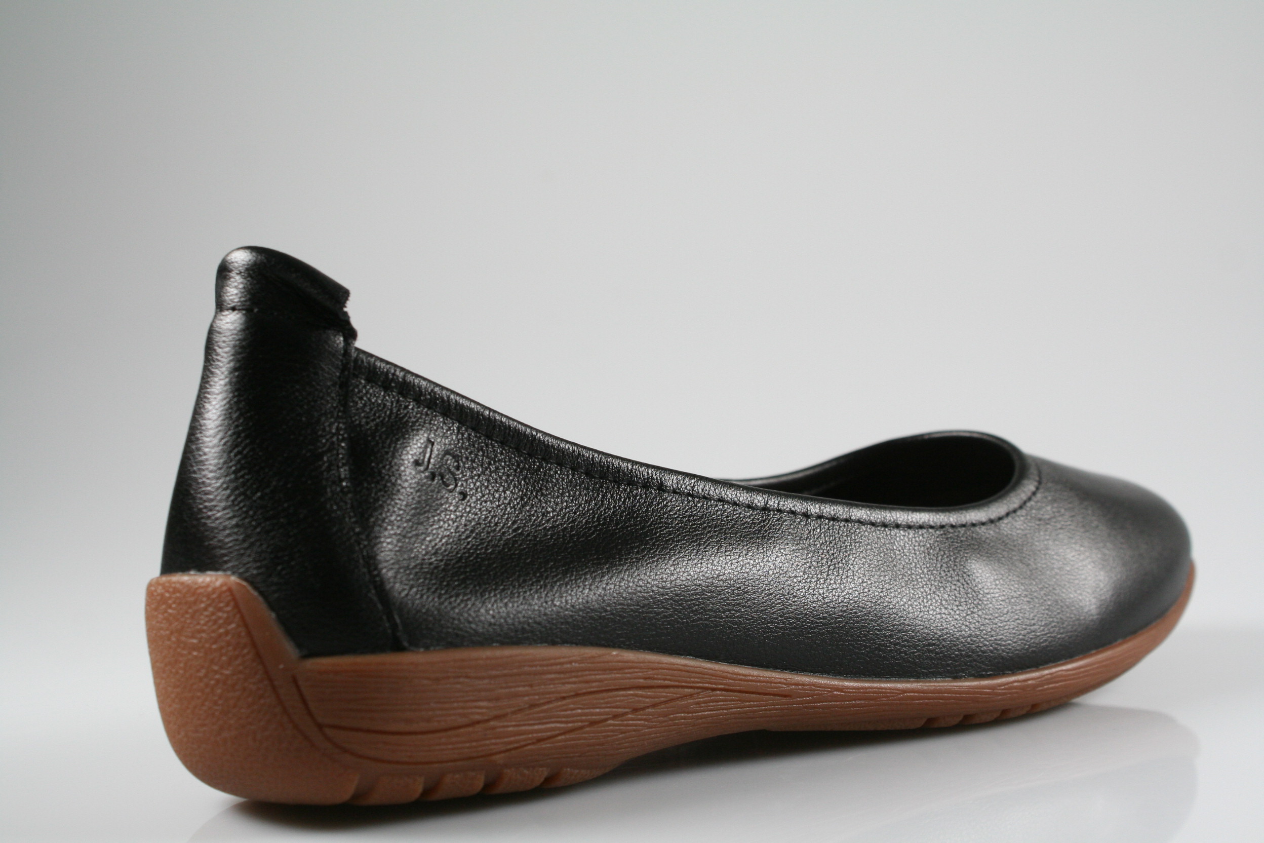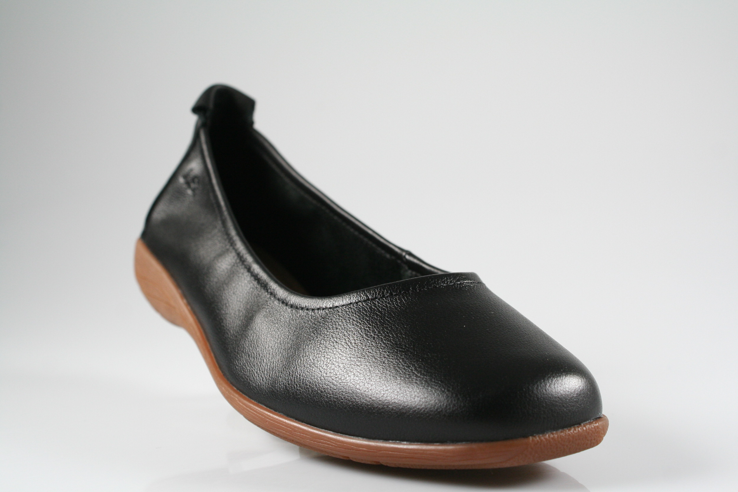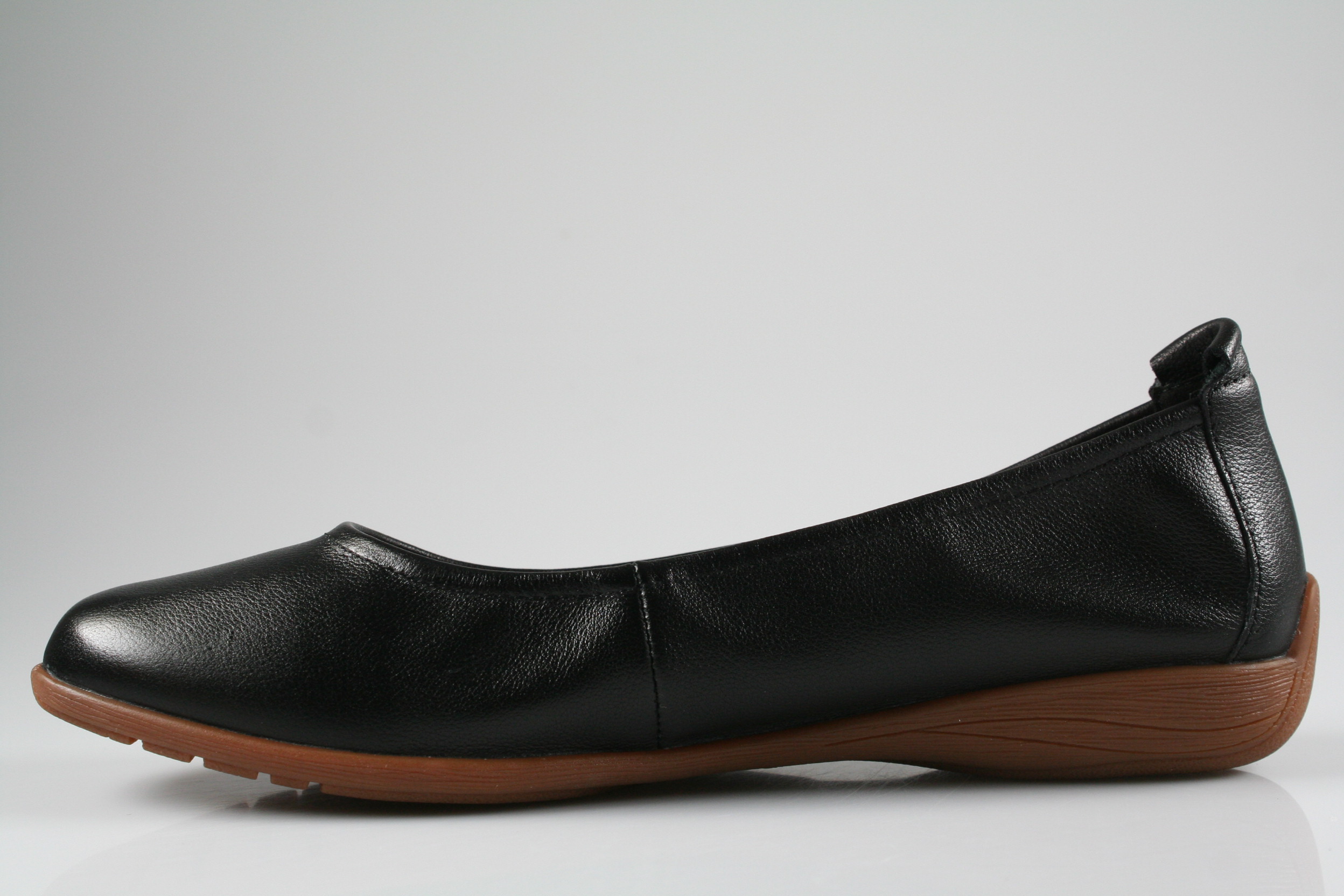 Typ: Ballerinas; Farbe "schwarz"; Ausstattung:; - Obermaterial: Glattleder; - weiches Fußbett; - flexible Laufsohle; - gepolsterter Schaftrand;