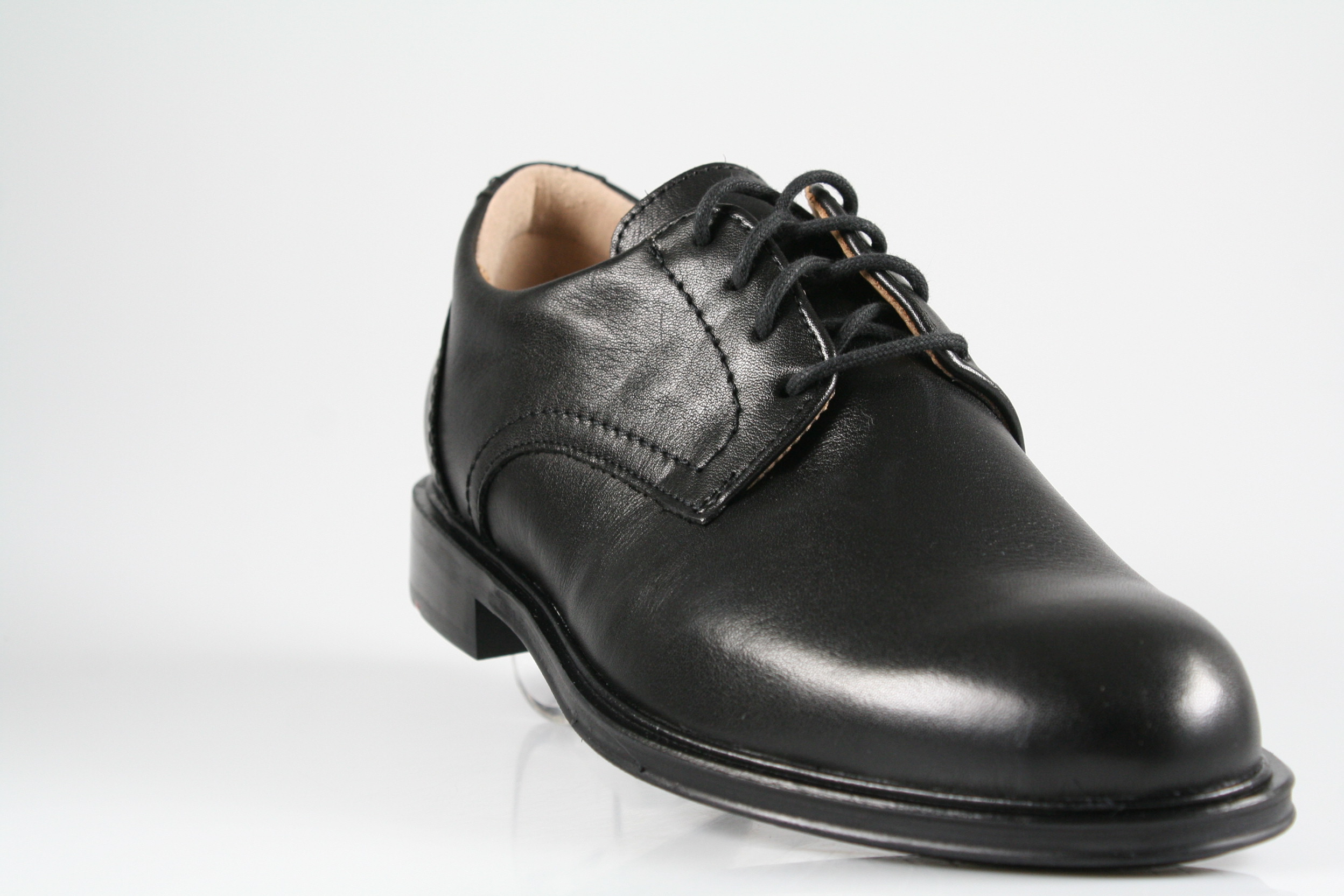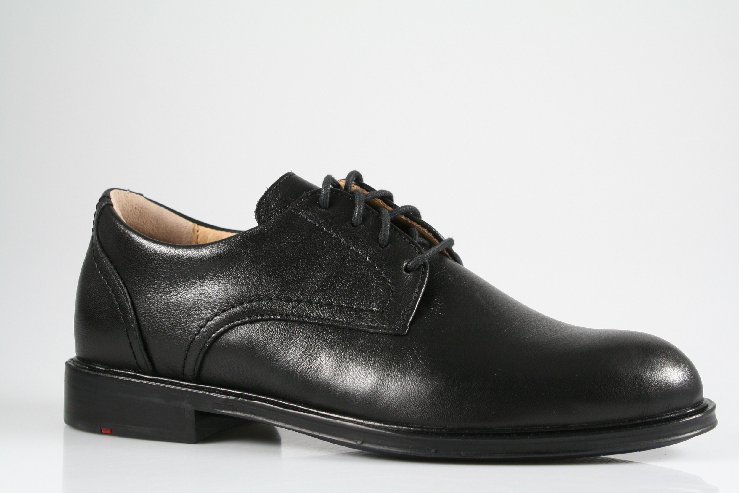 Typ: Halbschuh; Farbe "black"; Ausstattung:; - Obermaterial: Glattleder; - herausnehmbares Fußbett; - leichte Laufsohle; - gepolsterter Schaftrand; - Schnürsenkel zur Weitenregulierung