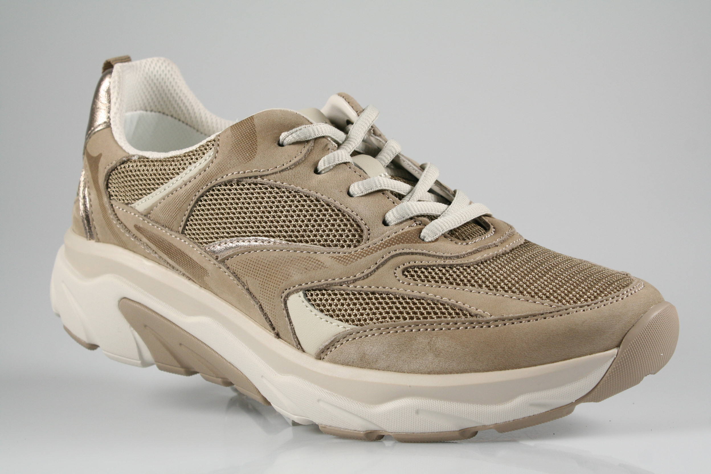 Typ: Sneaker; Farbe "silk/puder"; Ausstattung:; - Obermaterial: Nubukleder, Mesh; - herausnehmbares Fußbett; - leichte Laufsohle; - gepolsterter Schaftrand; - Schnürsenkel zur Weitenregulierung