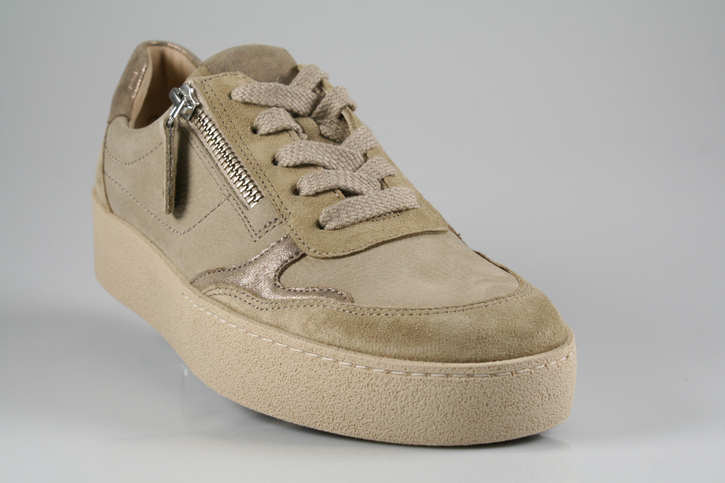 Typ: Sneaker; Farbe: "grain/almond"; Ausstattung:; - Obermaterial: Leder kombiniert; - herausnehmbares Fußbett; - leichte Laufsohle; - gepolsterter Schaftrand; - Schnürsenkel und Reißverschluss zur Weitenregulierung;