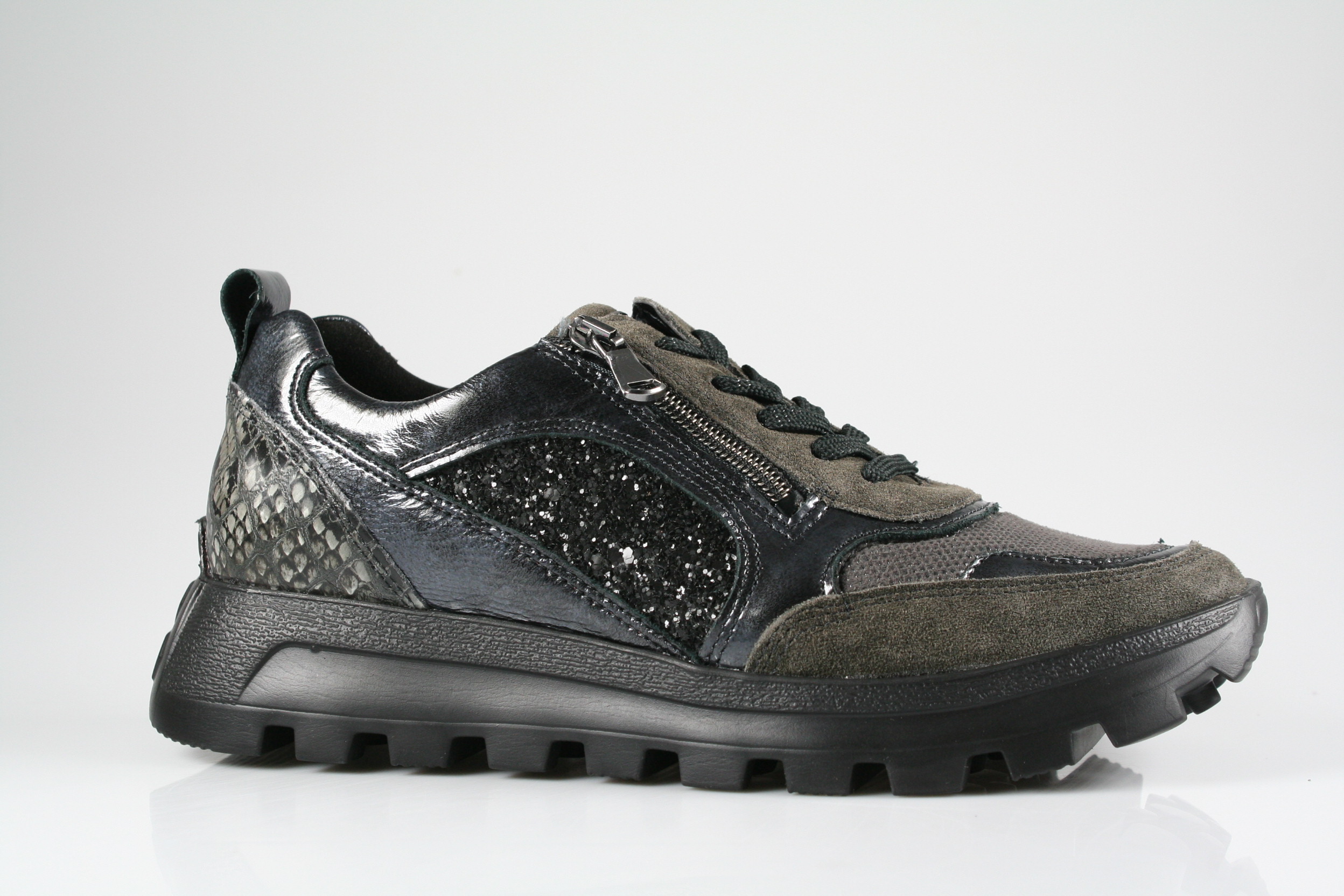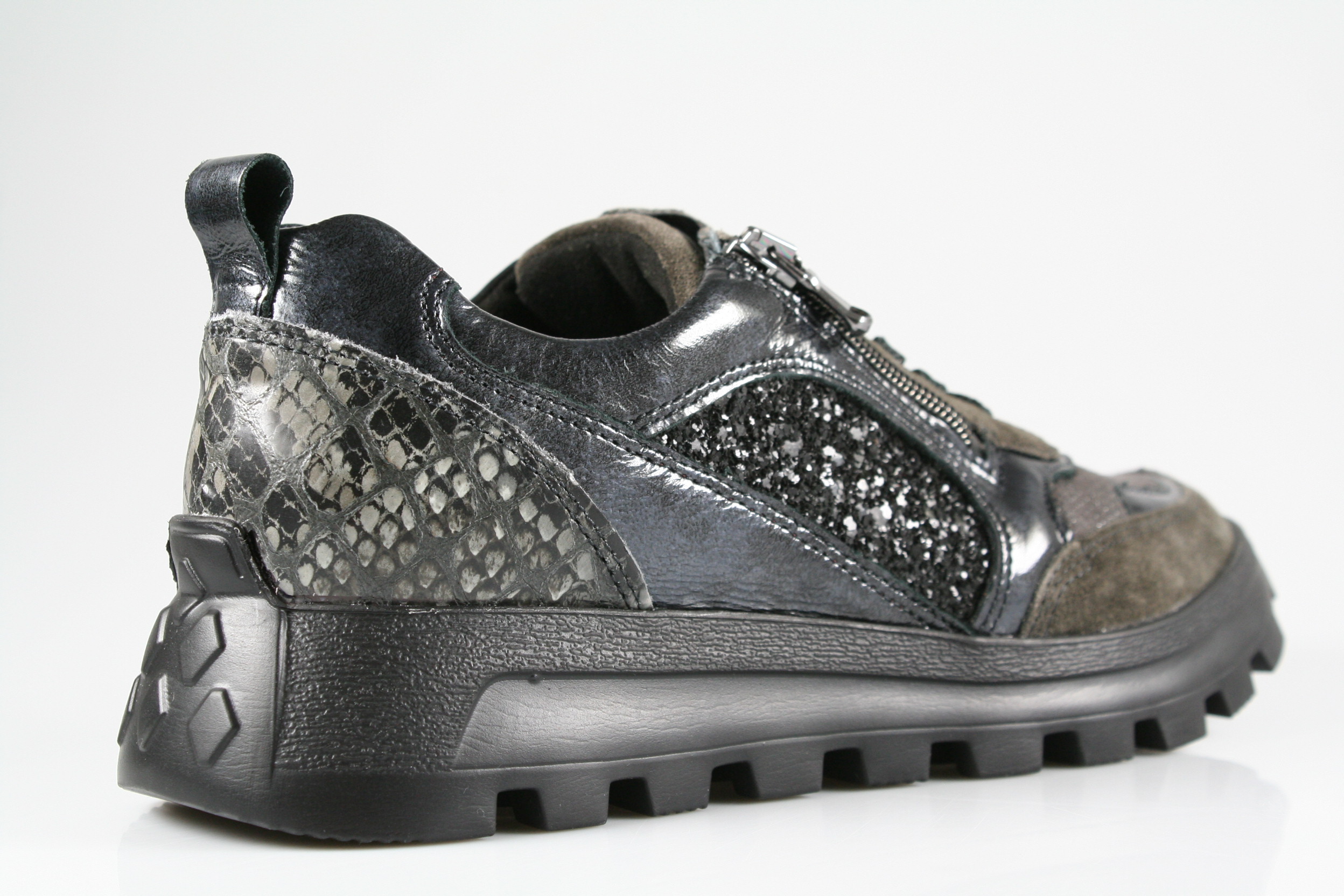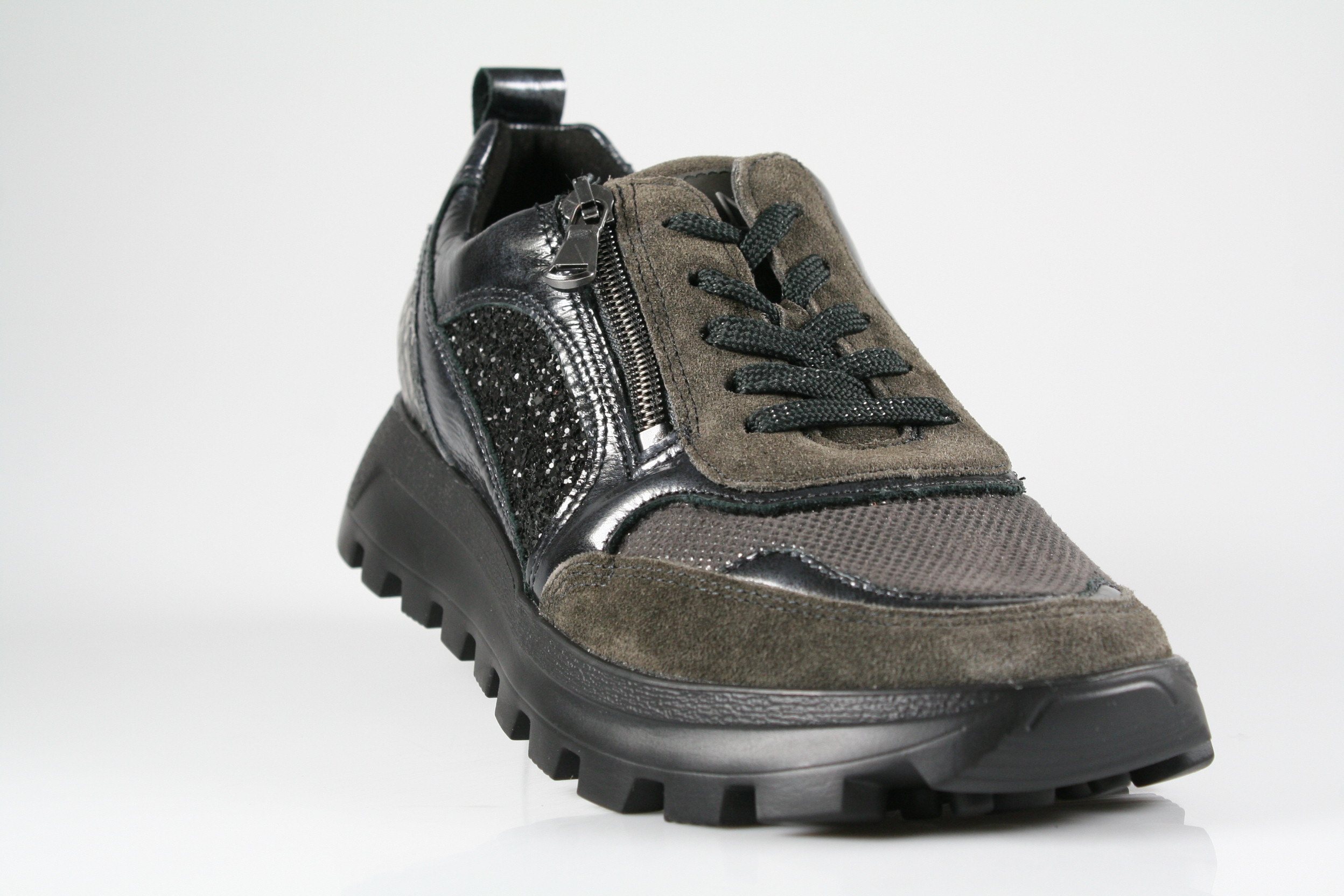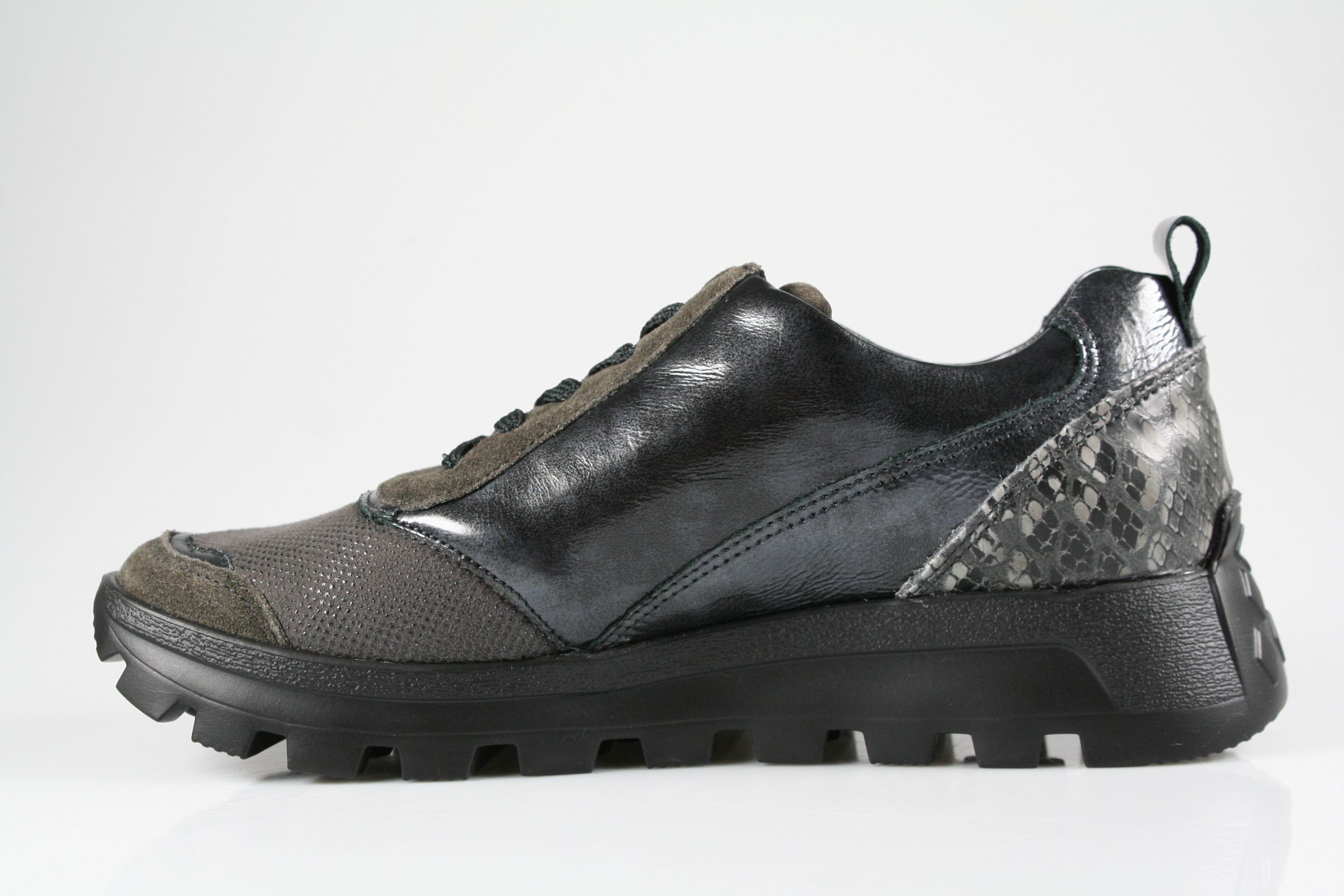 Typ: Halbschuh; Farbe "carbon/schwarz"; Ausstattung:; - Obermaterial: Leder kombiniert; - herausnehmbares Fußbett; - flexible Laufsohle; - gepolsterter Schaftrand; - Schnürsenkel und Reißverschluss