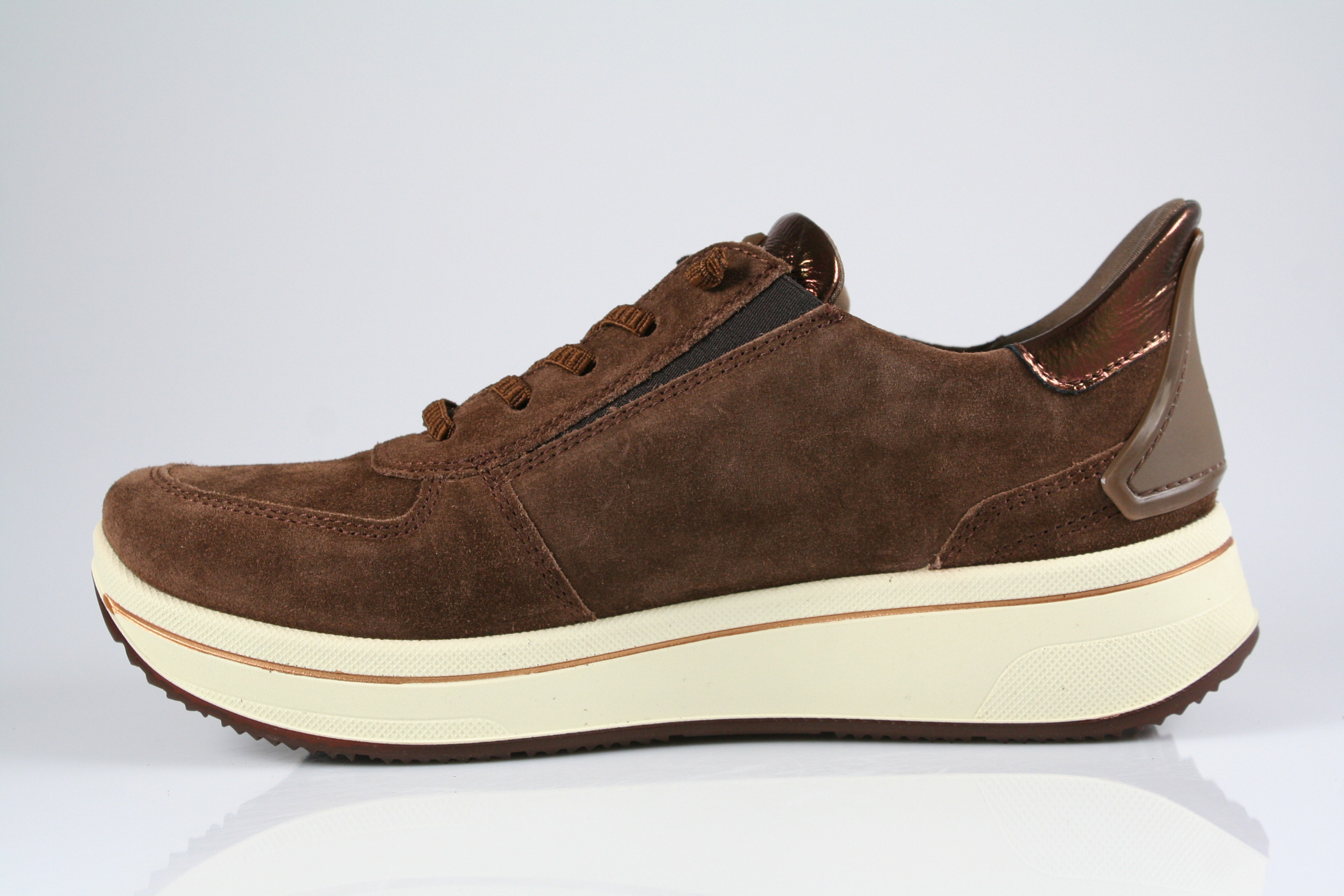 Typ: Halbschuh; Farbe "mocca"; Ausstattung:; - Obermaterial: Velourleder; - herausnehmbares Fußbett; - flexible Laufsohle; - gepolsterter Schaftrand; - dehnbarer Einschlupf