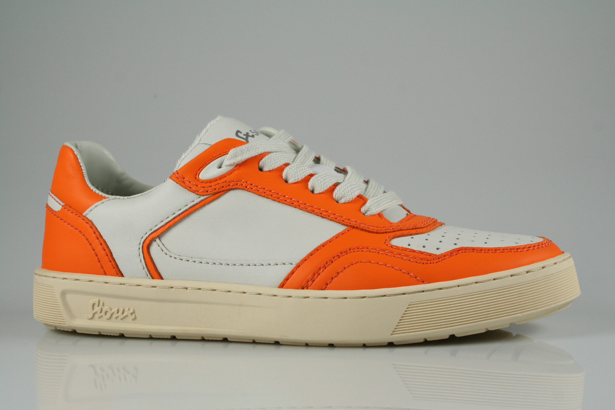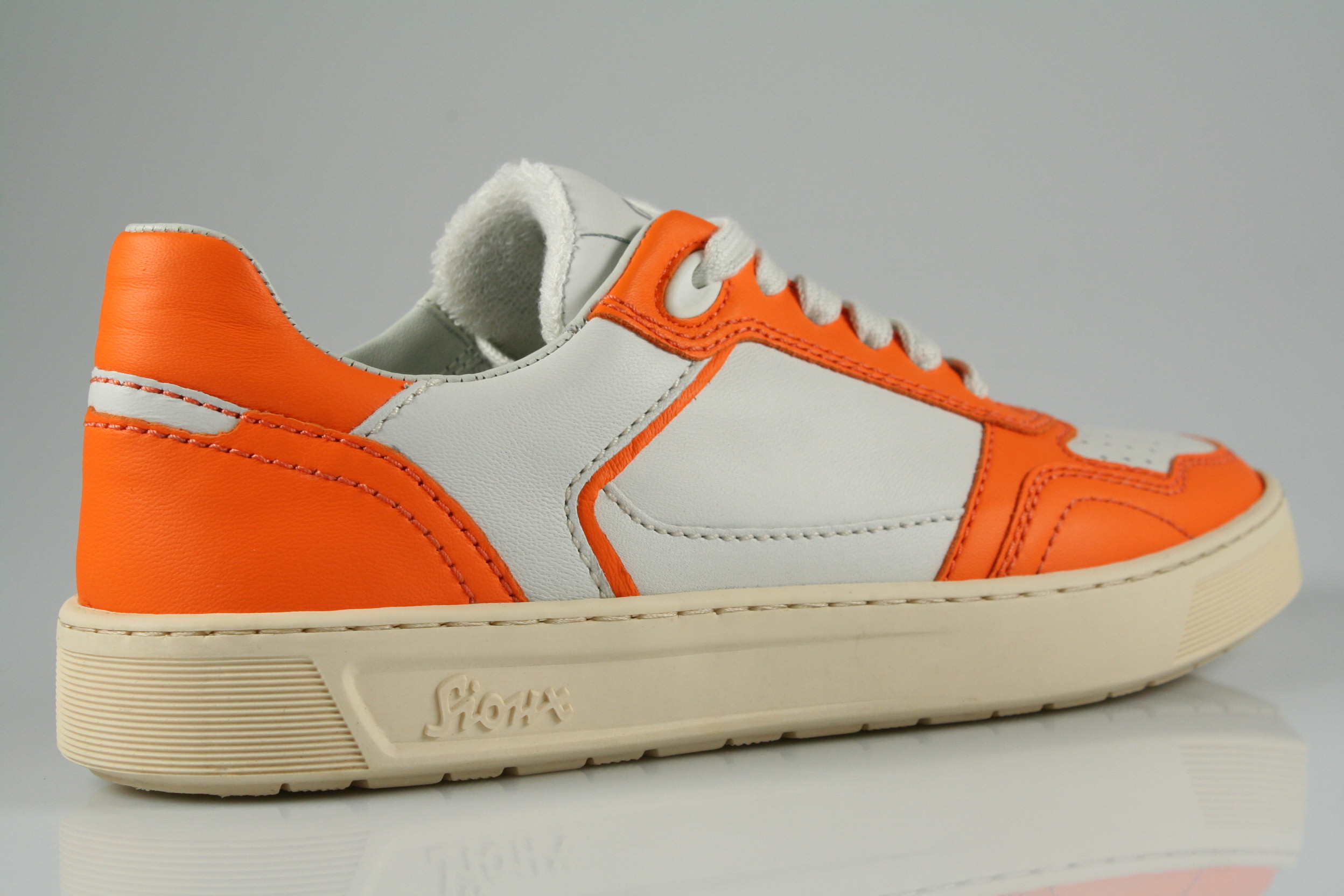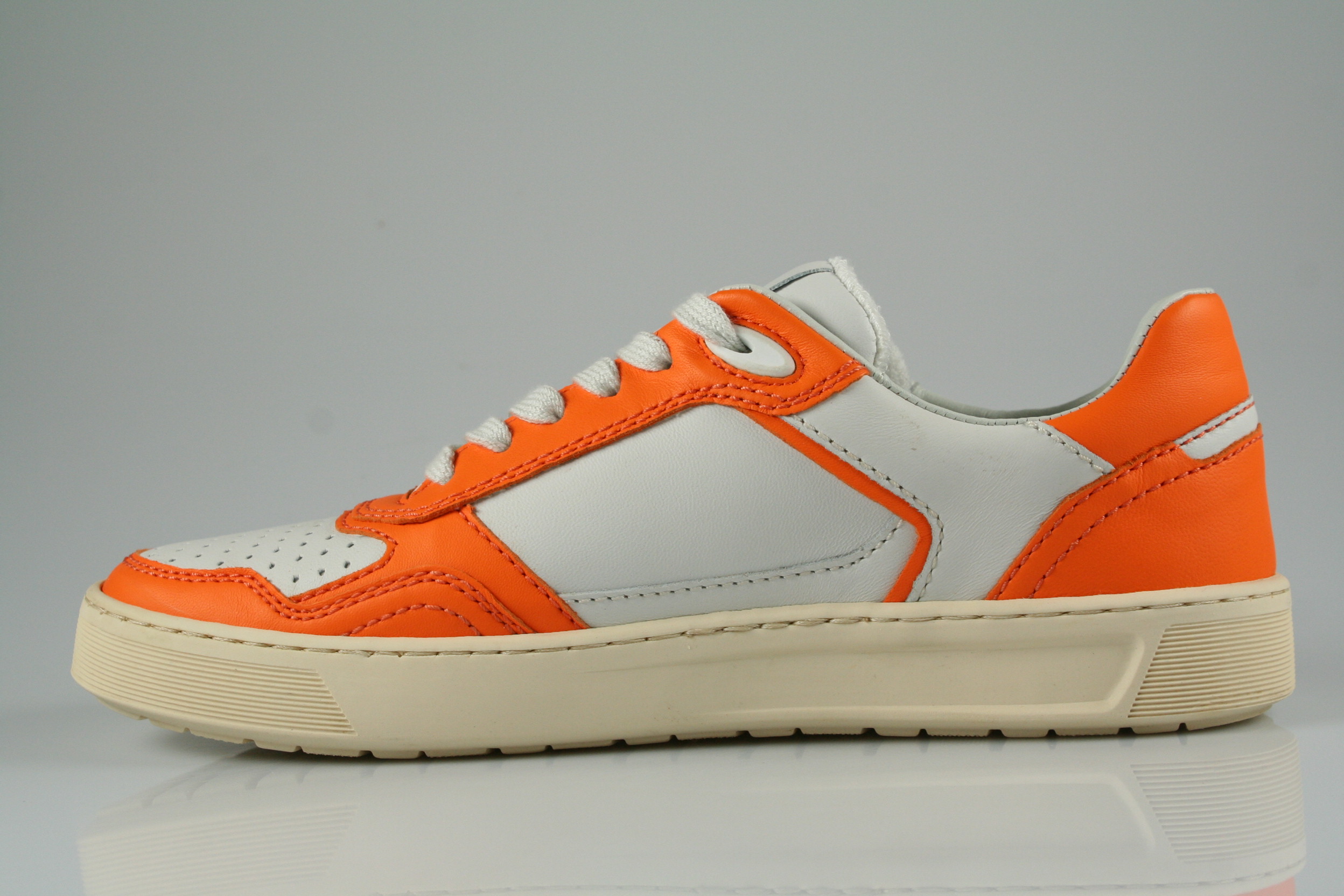 Typ: Sneaker; Farbe "orange/snow"; Ausstattung:; - Obermaterial: Leder kombiniert; - herausnehmbares Fußbett; - leichte Laufsohle; - gepolsterter Schaftrand; - Schnürsenkel zur Weitenregulierung