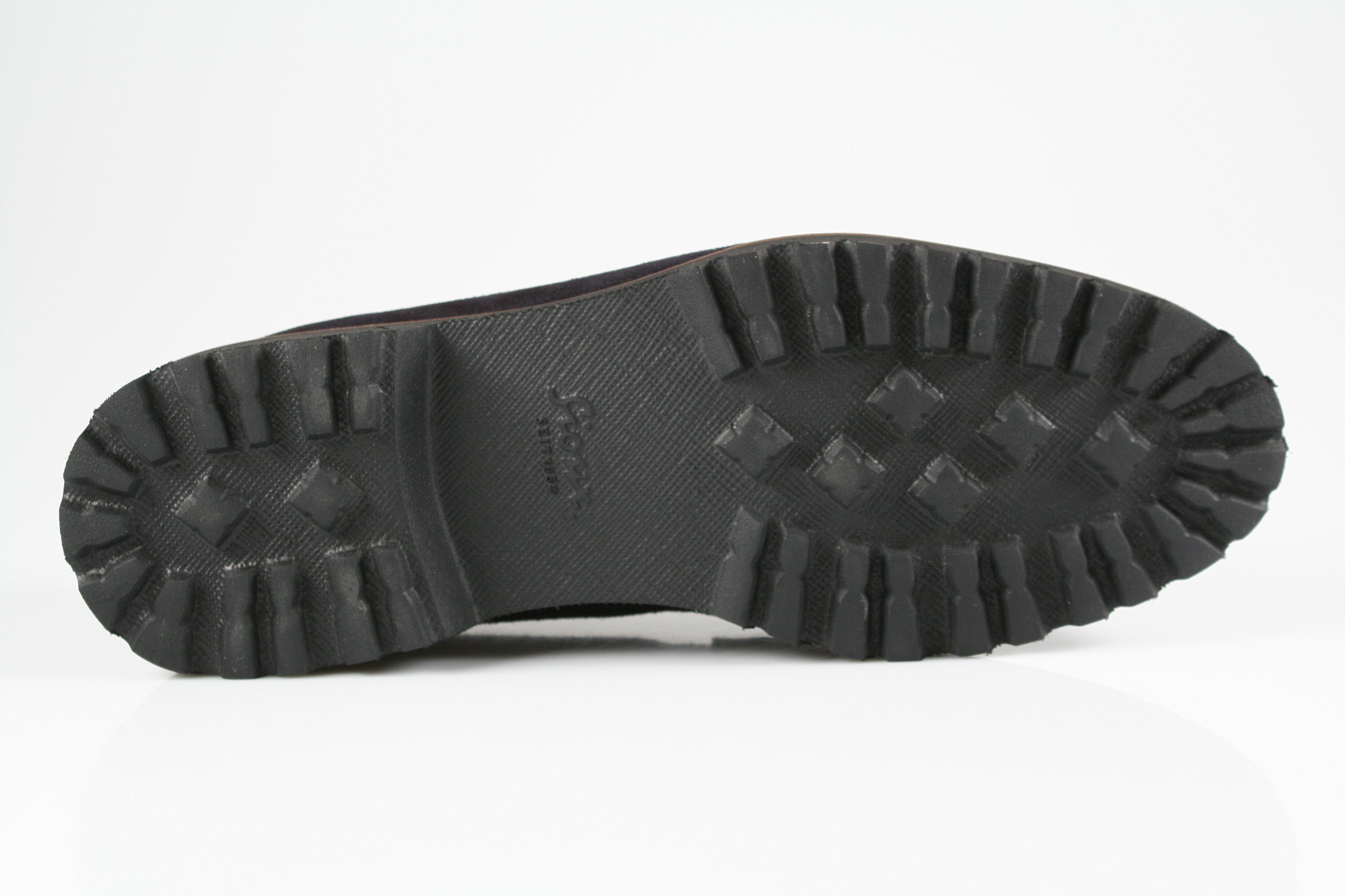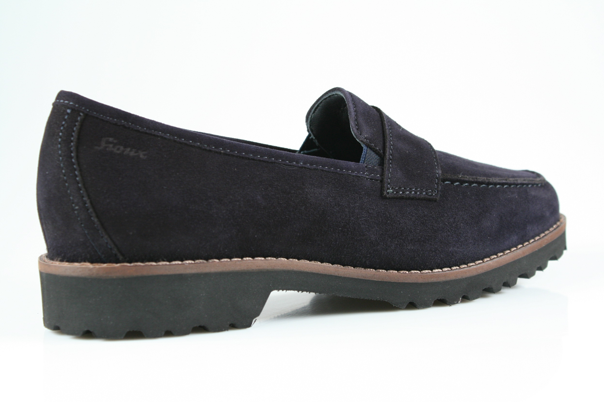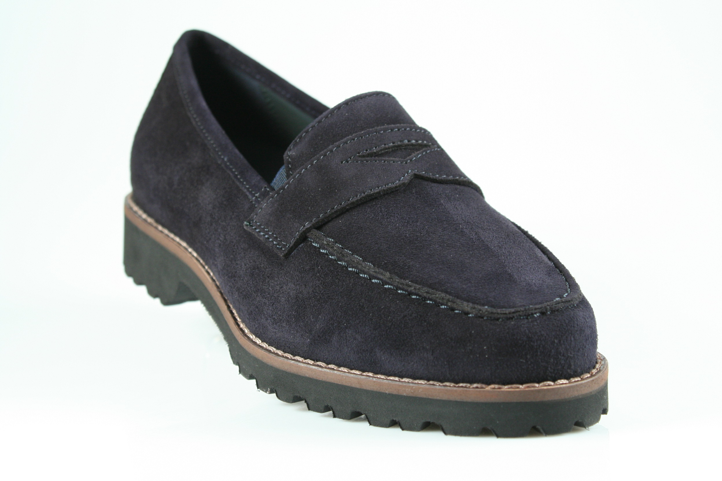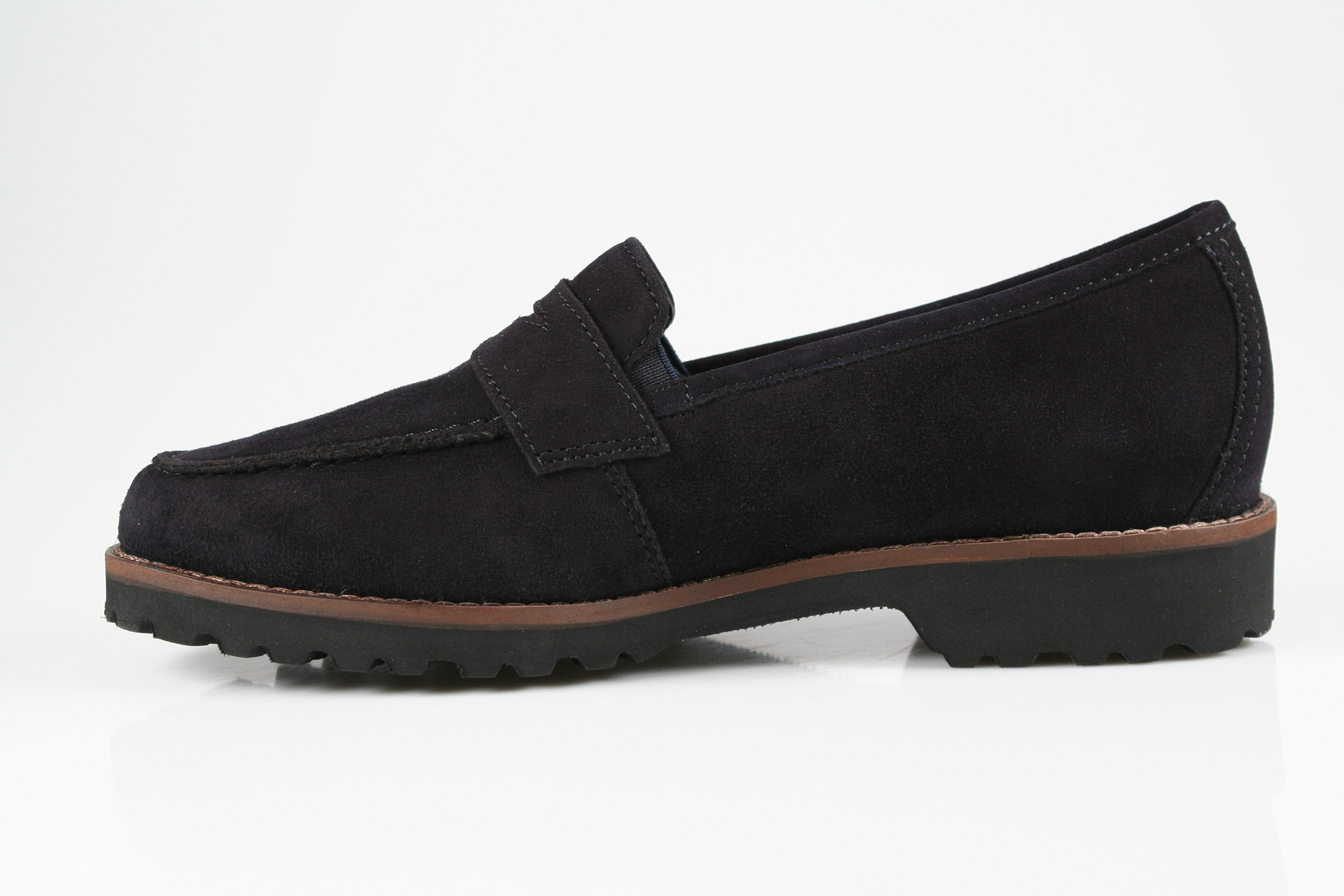 Typ: Slipper; Farbe: dunkelblau; Ausstattung:; - Obermaterial: Velourleder; - Lederfutter; - gepolstertes, herausnehmbares Lederfußbett; - elastische Einsätze am Einschlupf; - leichte Profilsohle;