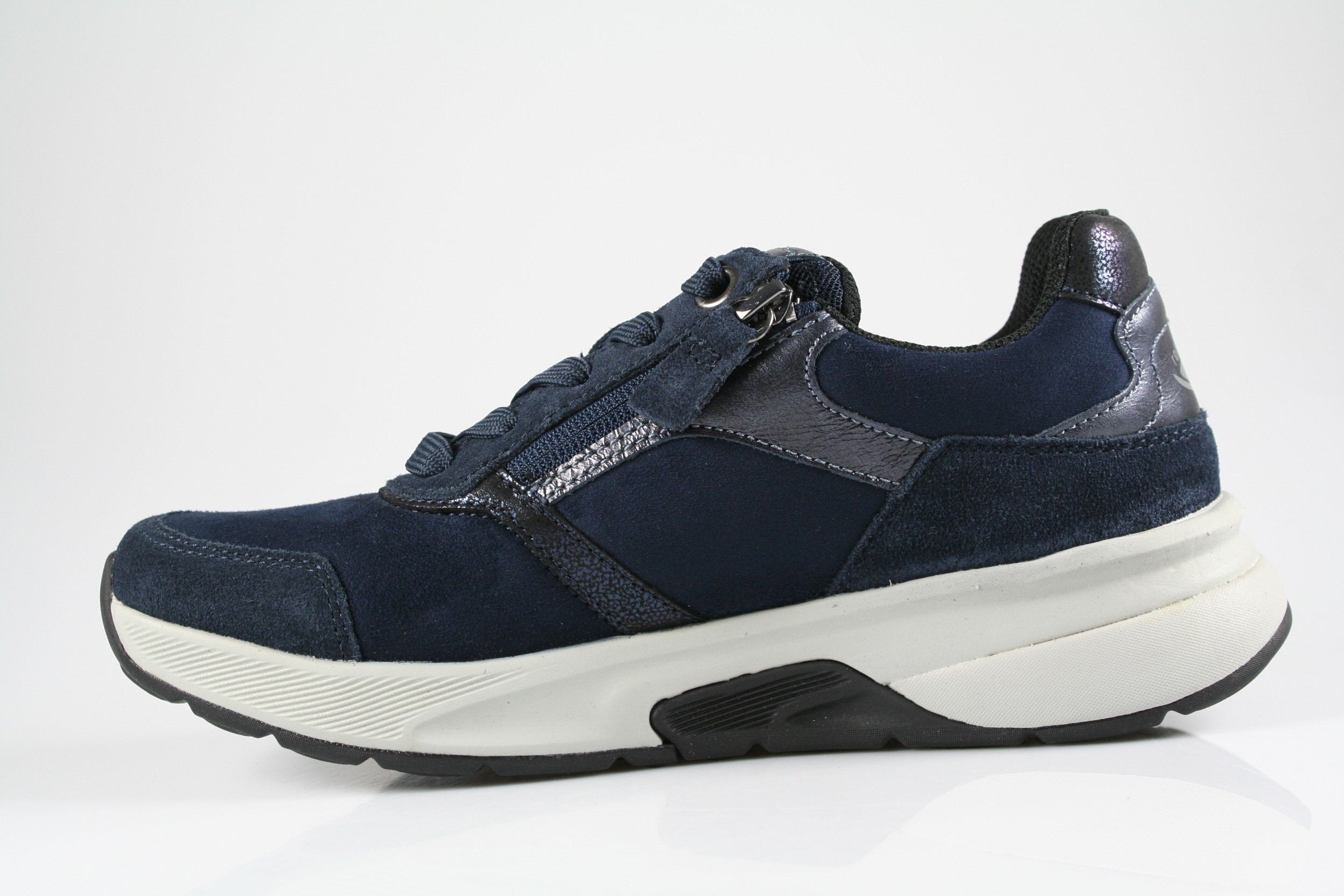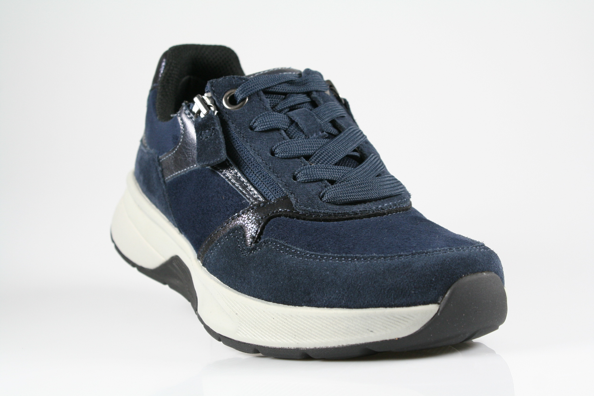 Typ: Halbschuh; Farbe "river/jeans kombi"; Ausstattung:; - Obermaterial: Samtchevreau, Velourleder; - herausnehmbares Fußbett; - flexible Laufsohle; - gepolsterter Schaftrand; - Schnürsenkel und Reißverschluss zur Weitenregulierung
