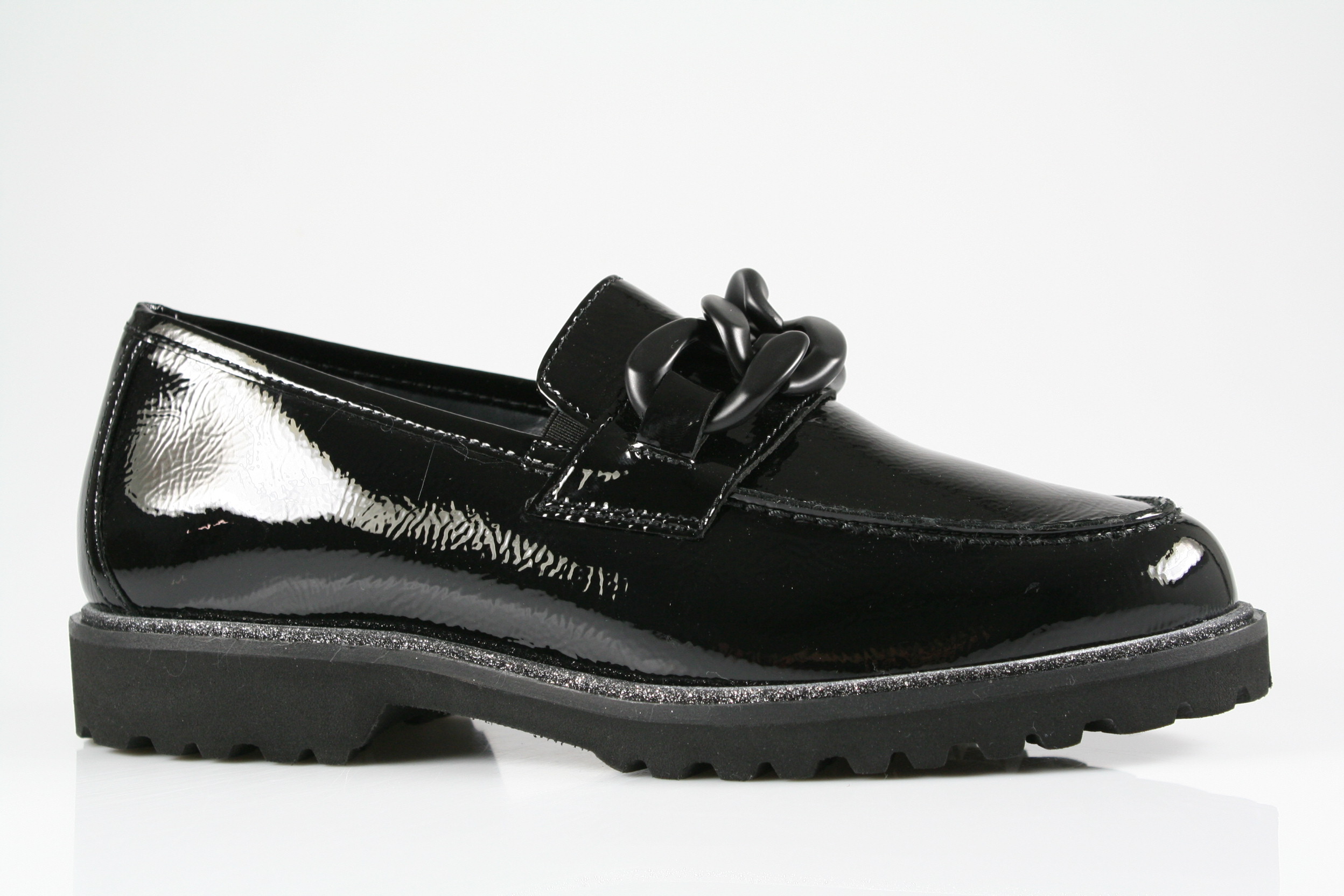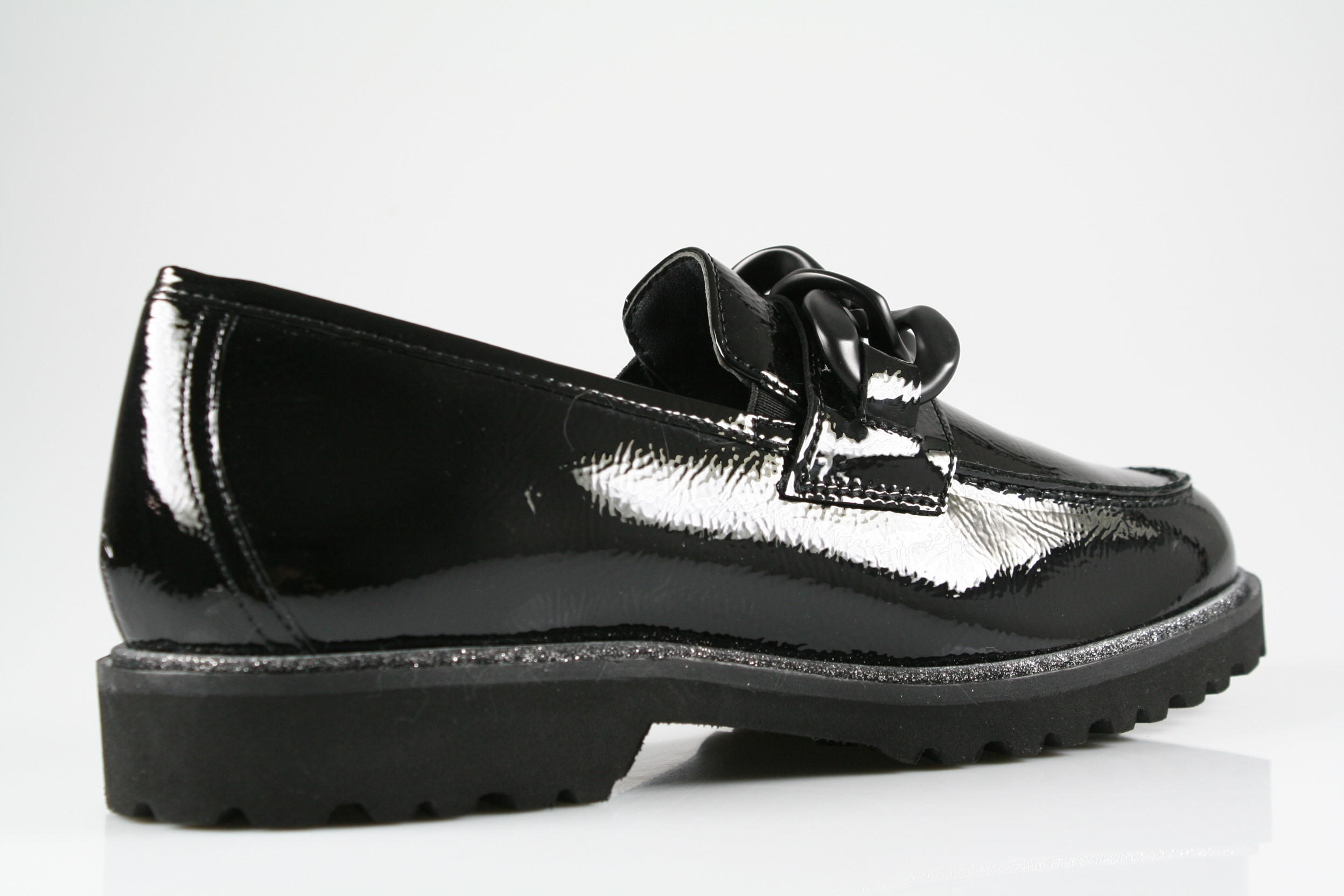 Typ: Slipper; Farbe: schwarz; Ausstattung:; - Obermaterial: Lackleder; - Lederfutter; - Leichtzellsohle mit Profil; - herausnehmbares Lederfußbett; - elastische Einsätze am Einschlupf;