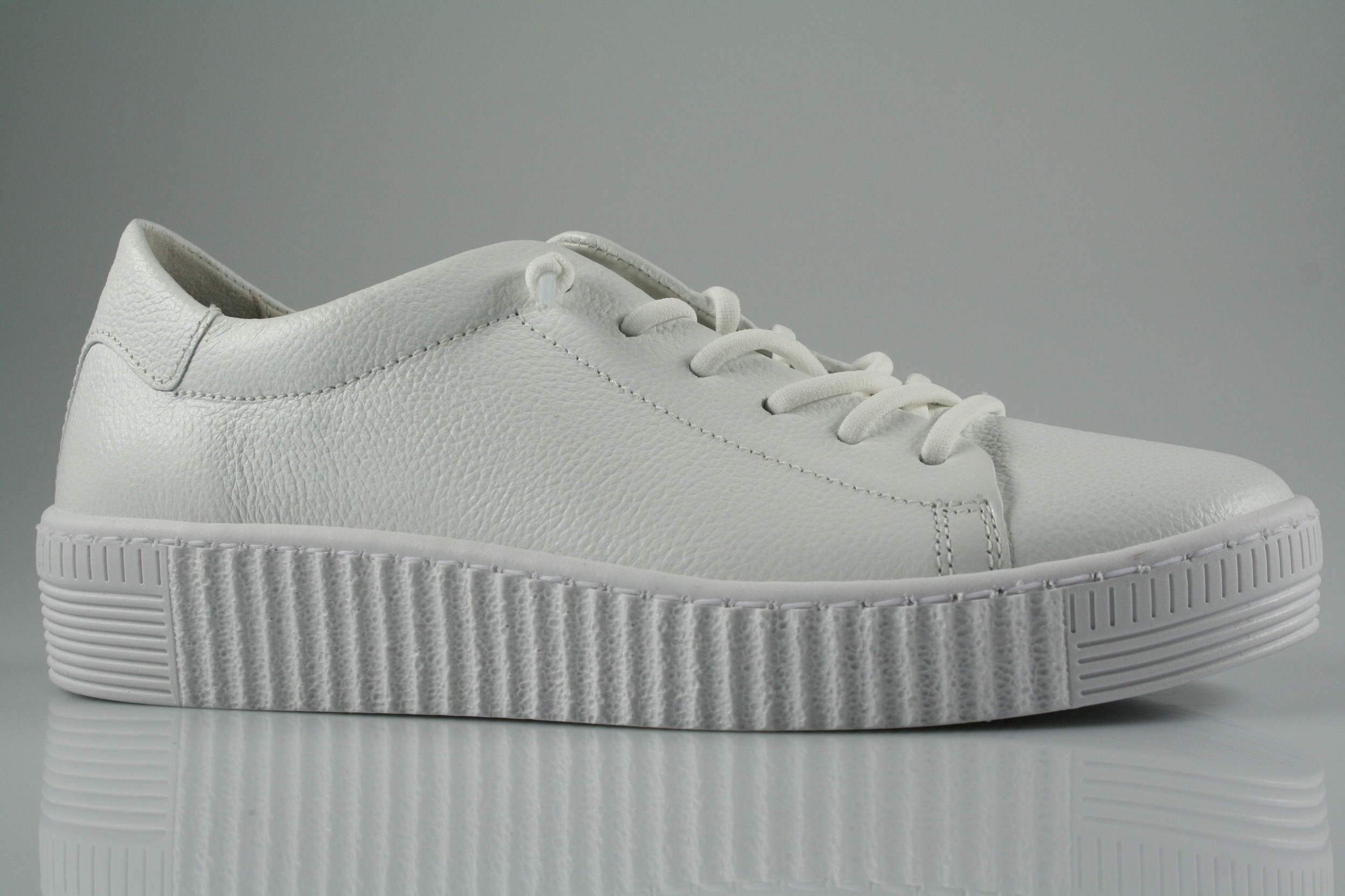 Typ: Sneaker; Farbe: "weiß"; Ausstattung:; - Obermaterial: Glattleder; - Lederfutter; - herausnehmbares Fußbett; - leichte Laufsohle; - gepolsterter Schaftrand; - Schnürsenkel zur Weitenregulierung