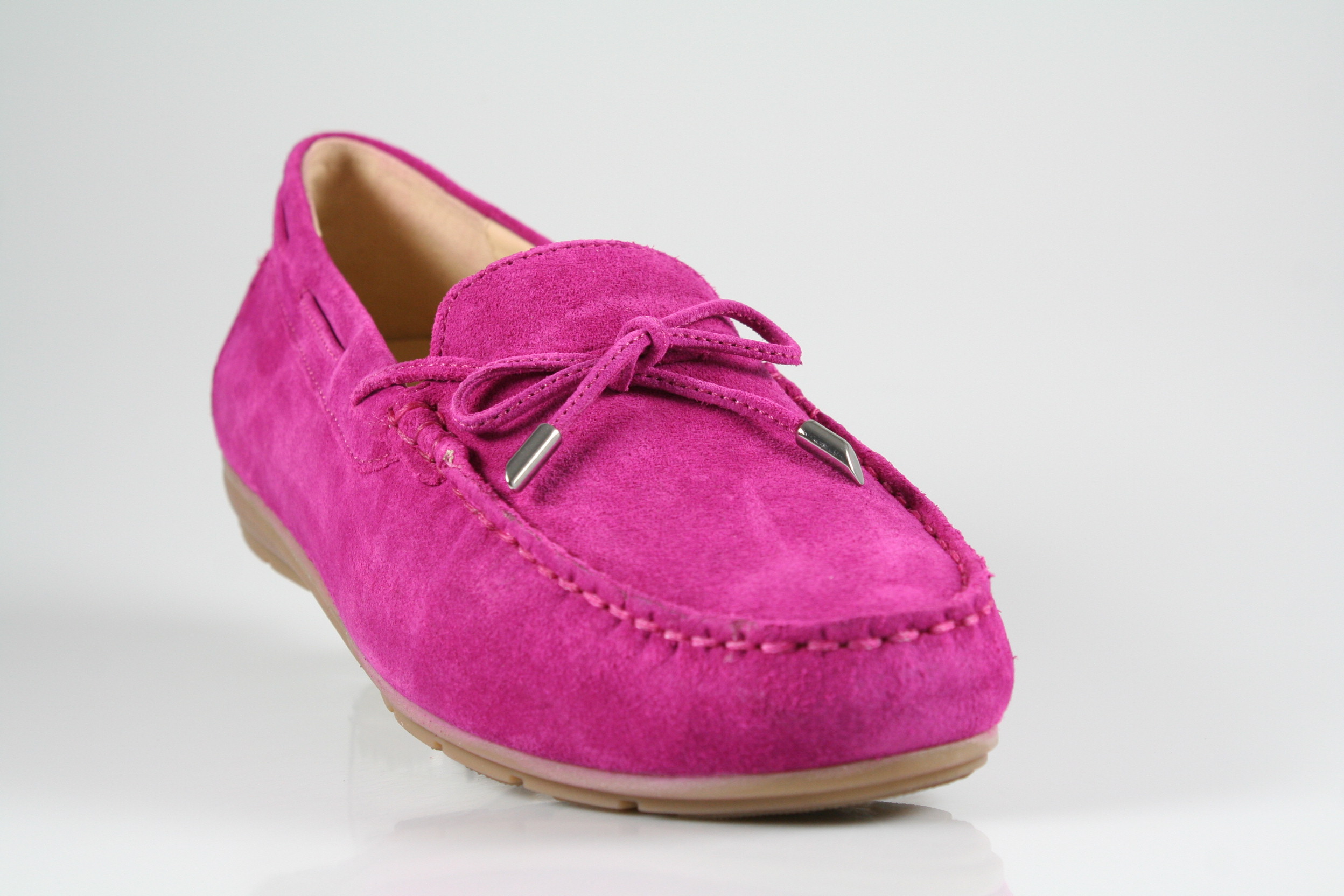 Typ: Mokkassins; Farbe: "pink"; Ausstattung:; - Obermaterial: Velourleder; - herausnehmbares Fußbett; - leichte Laufsohle; - gepolsterter Schaftrand;