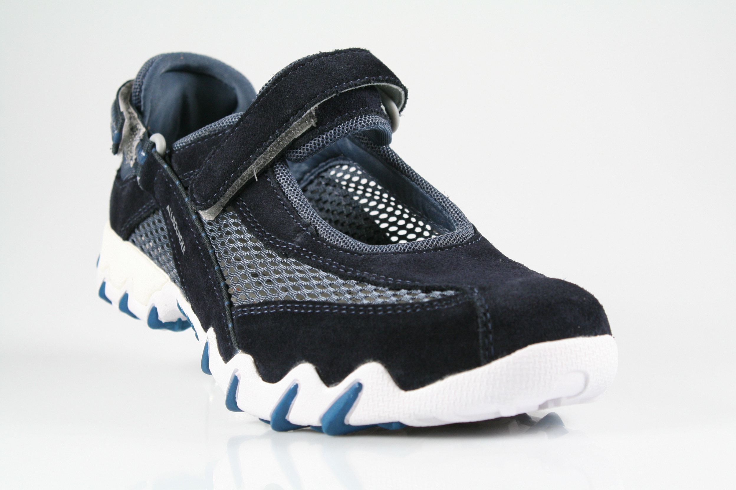 Typ: Slipper; Farbe: "ocean/stargazer"; Ausstattung:; - Obermaterial: Velourleder, open Mesh; - Futter mit punktueller Polsterung; - herausnehmbares Fußbett ; - flexible, abriebfeste Laufsohle; - Riemchen mit Klettverschluss; - Modell "Niro"