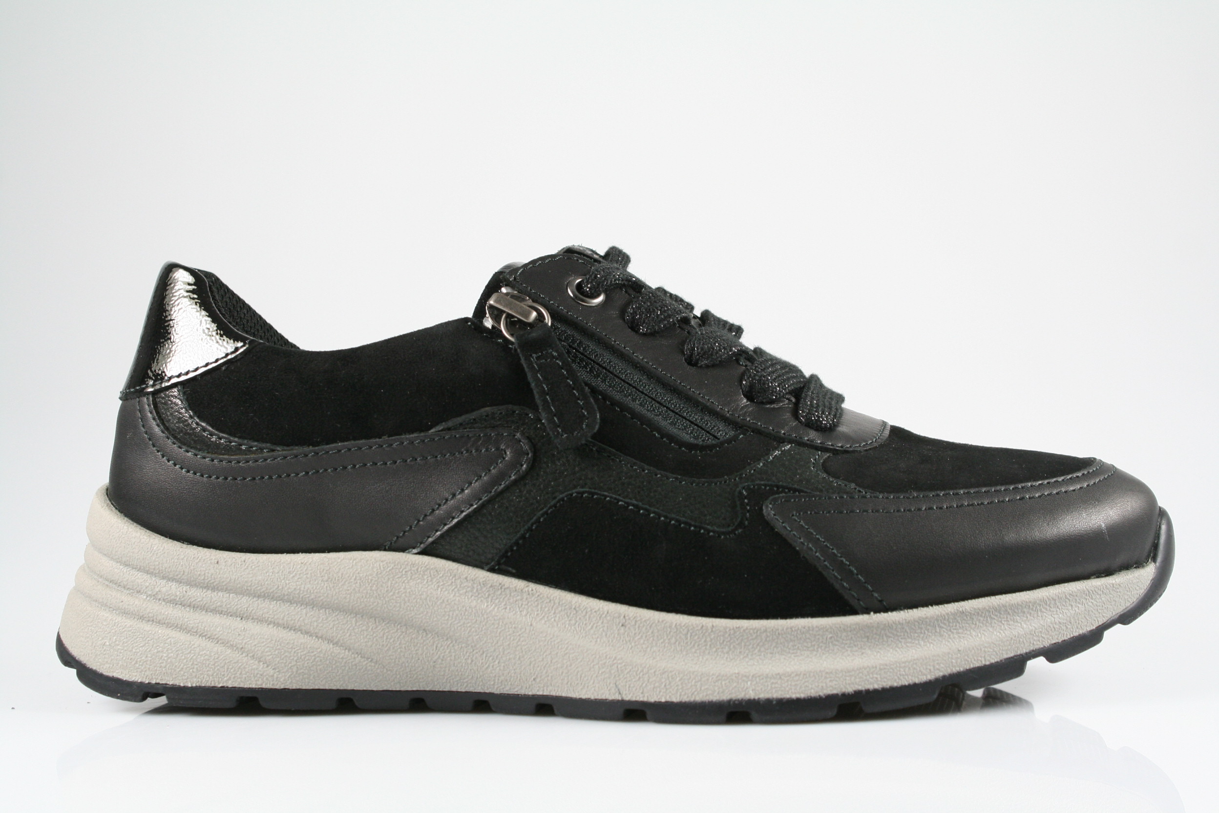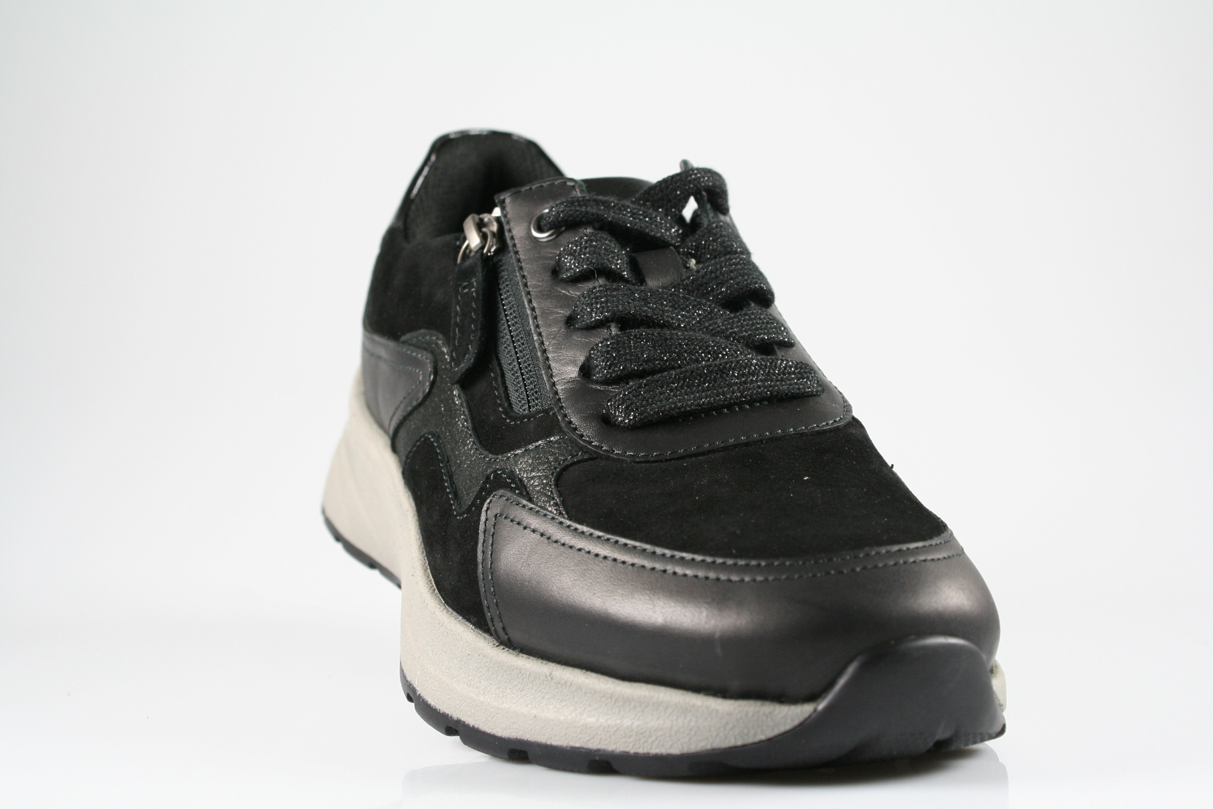 Typ: Halbschuh; Farbe "schwarz"; Ausstattung:; - Obermaterial: Leder kombiniert; - herausnehmbares Fußbett ; - flexible Gummilaufsohle; - gepolsterter Schaftrand; - Schnürsenkel und Reißverschluss zur Weitenregulierung;