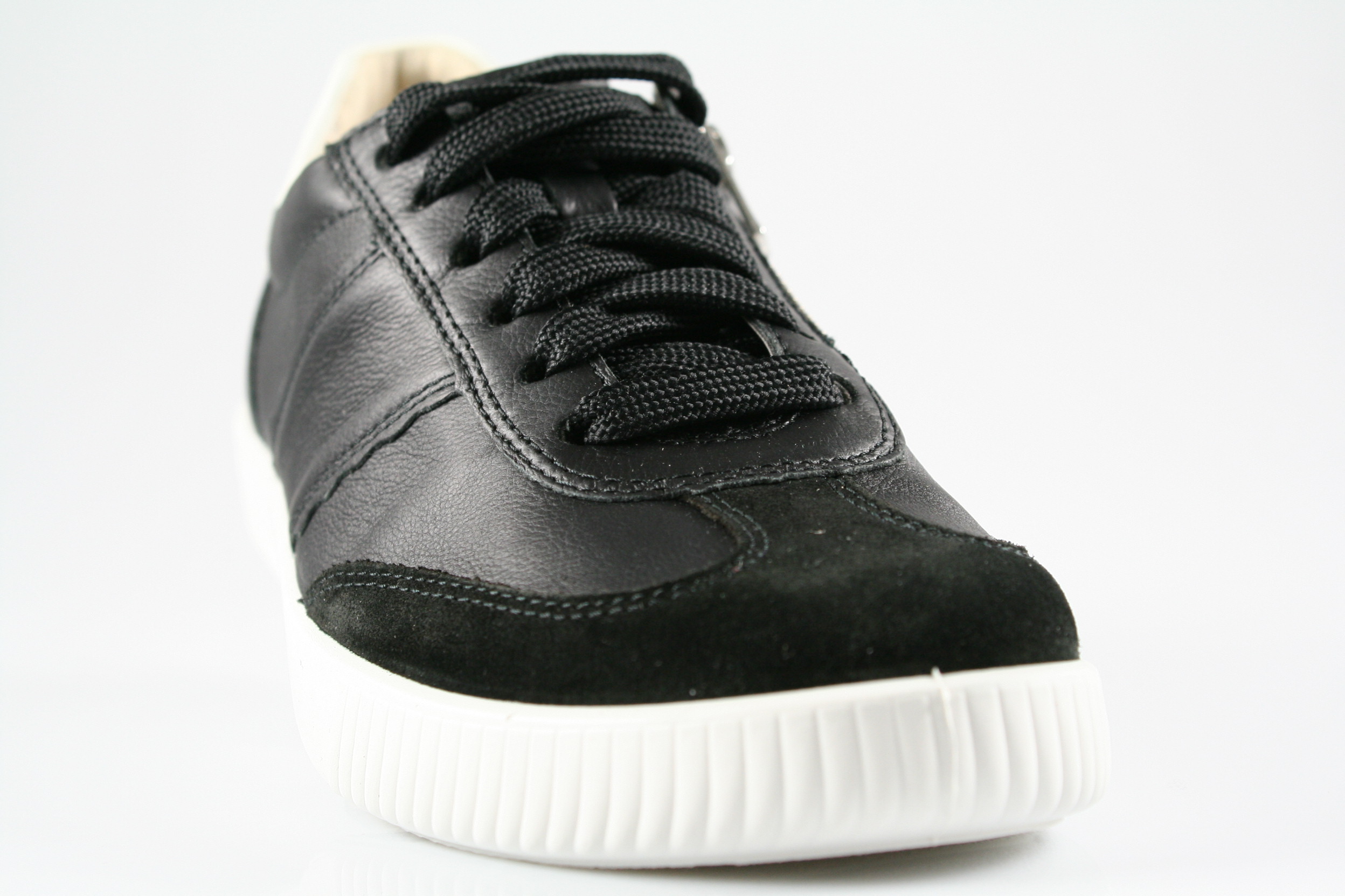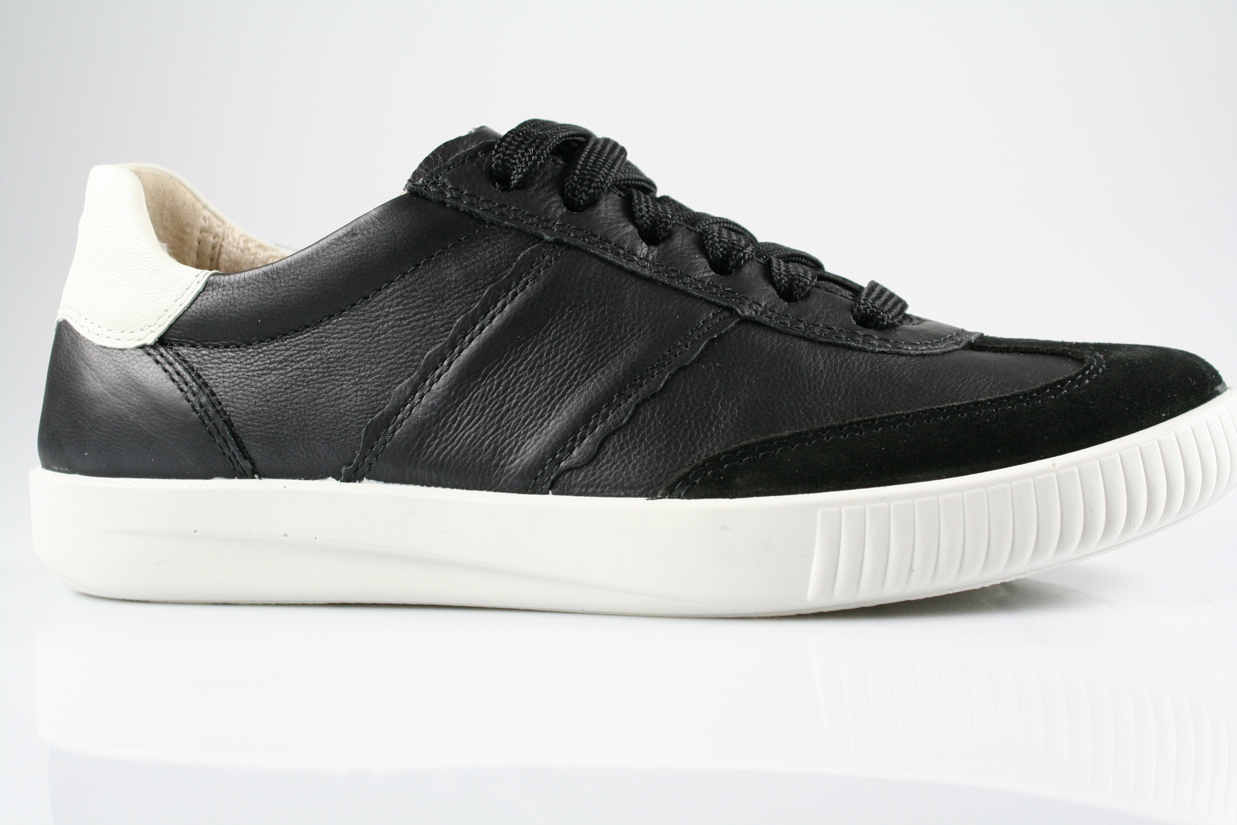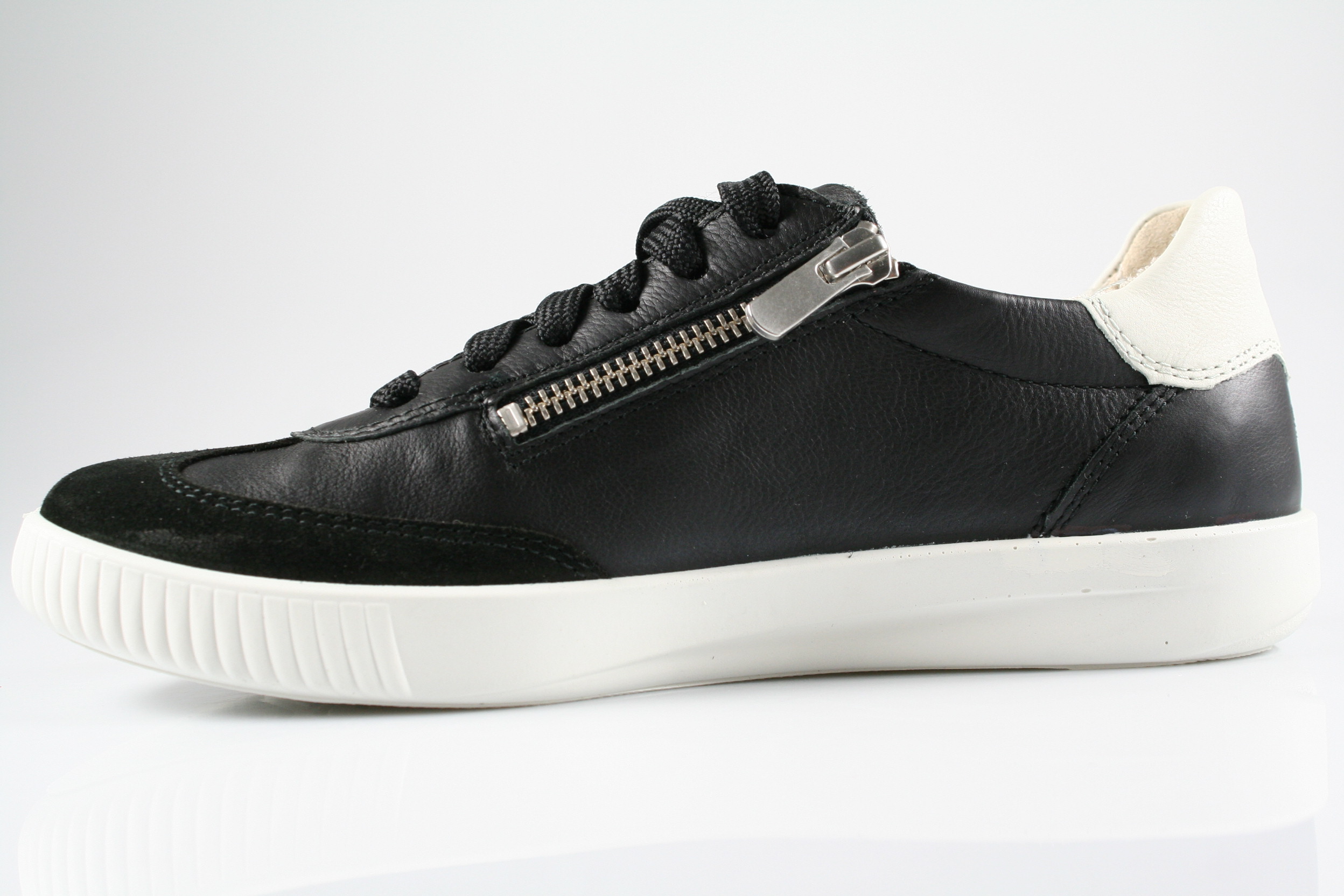 Typ: Halbschuh; Farbe: "schwarz"; Ausstattung:; - Obermaterial: Glatt-/Velourleder; - atmungsaktives Futter; - herausnehmbares Lederfußbett; - leichte, flexible Laufsohle; - gepolsterter Schaftrand; - Schnürung und Reißverschluss