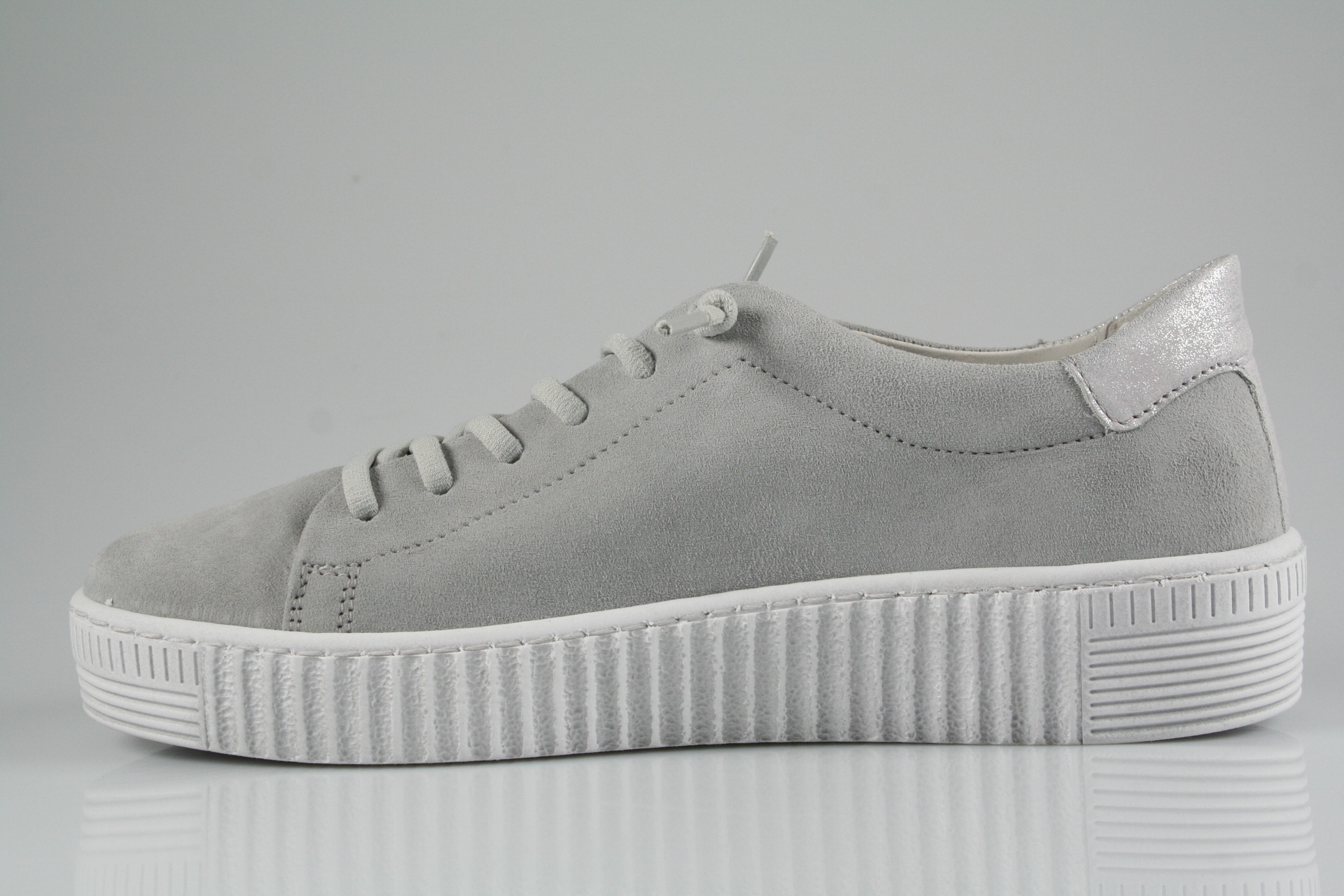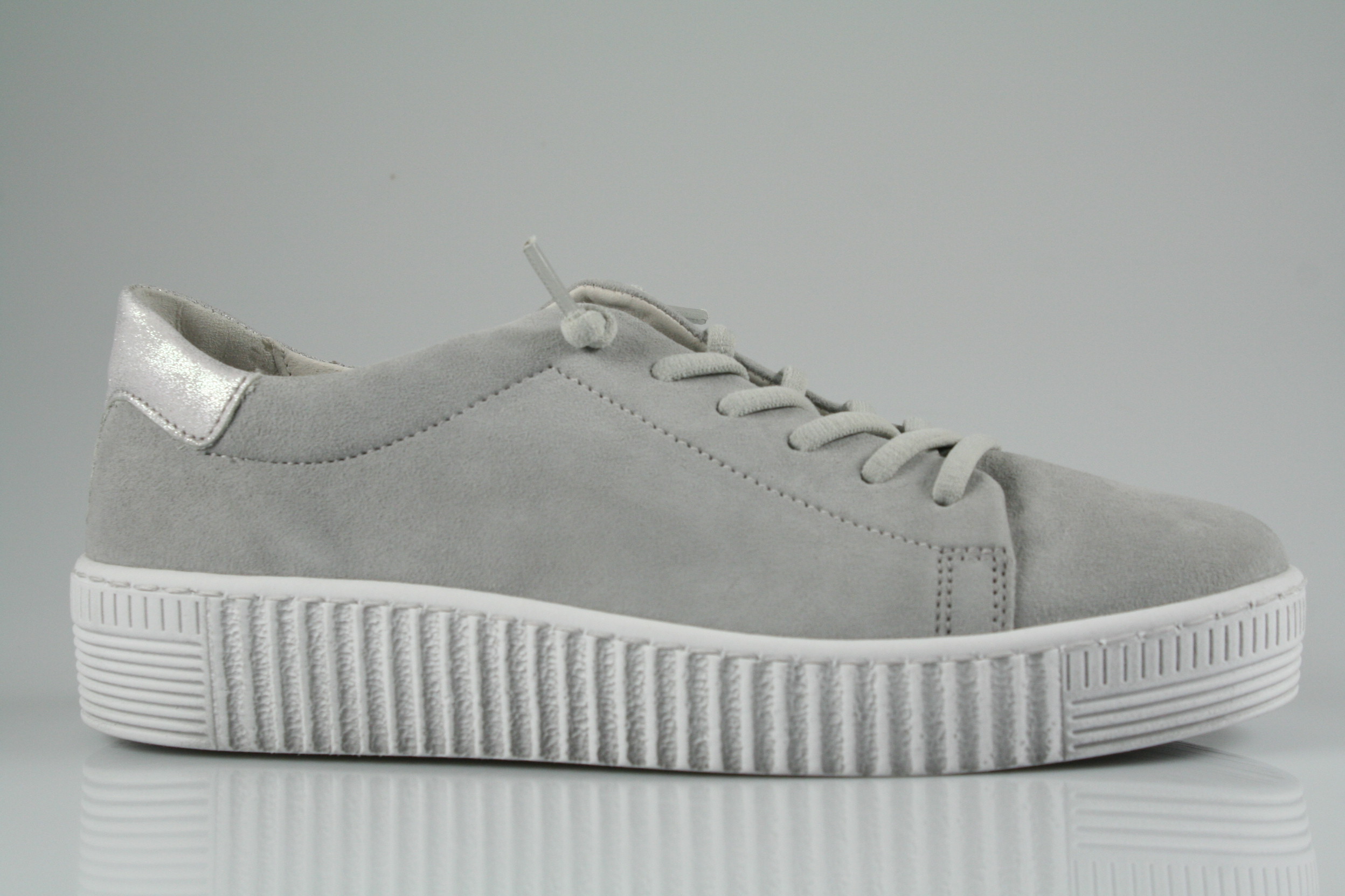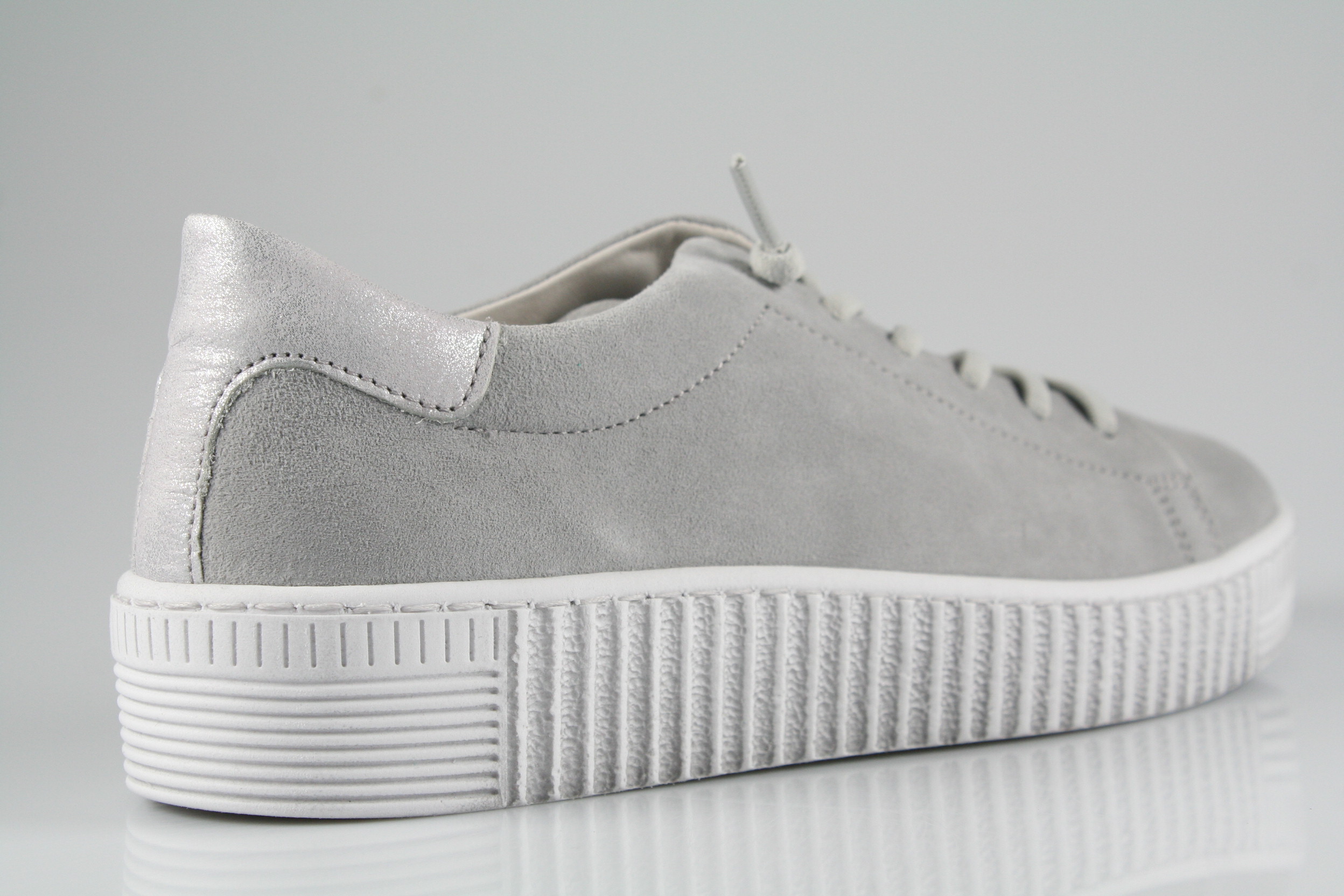 Typ: Sneaker; Farbe "lightgrey"; Ausstattung:; - Obermaterial: Velourleder; - herausnehmbares Fußbett; - flexible Laufsohle; - gepolsterter Schaftrand; - Schnürsenkel zur Weitenregulierung