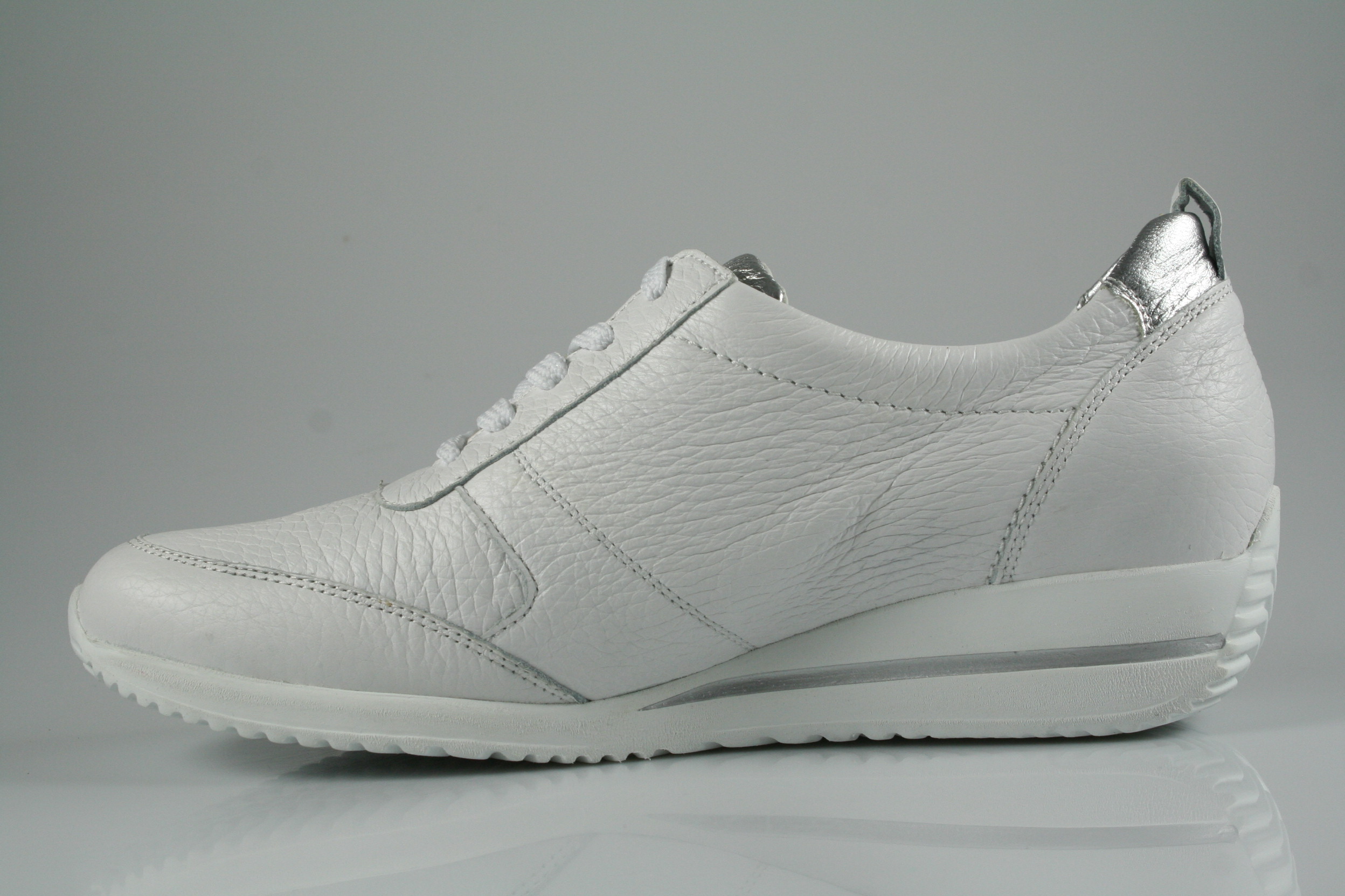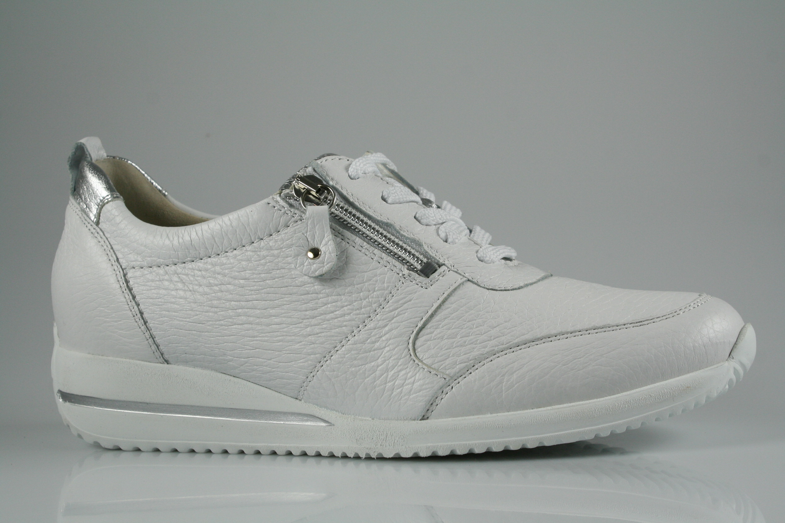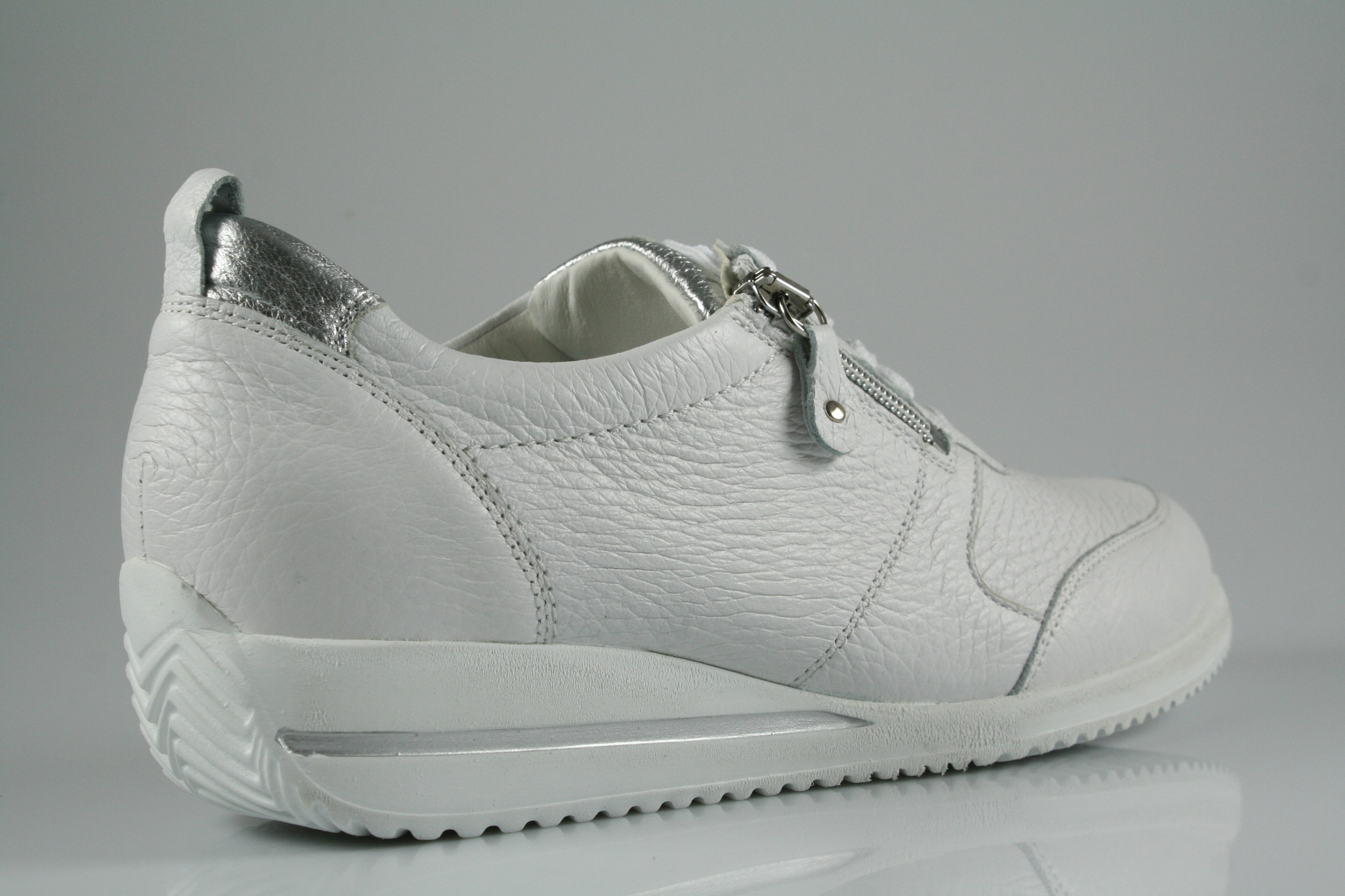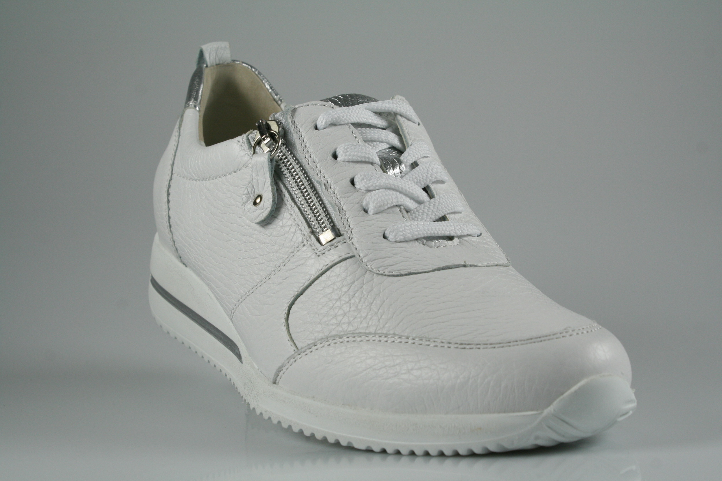 Typ: Halbschuh; Farbe "weiß/silber"; Ausstattung:; - Obermaterial: Leder; - herausnehmbares Fußbett; - leichte Laufsohle; - gepolsterter Schaftrand; - Schnürsenkel und Reißverschluss