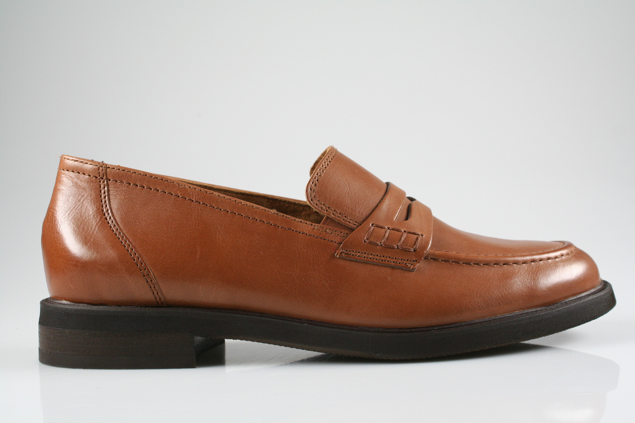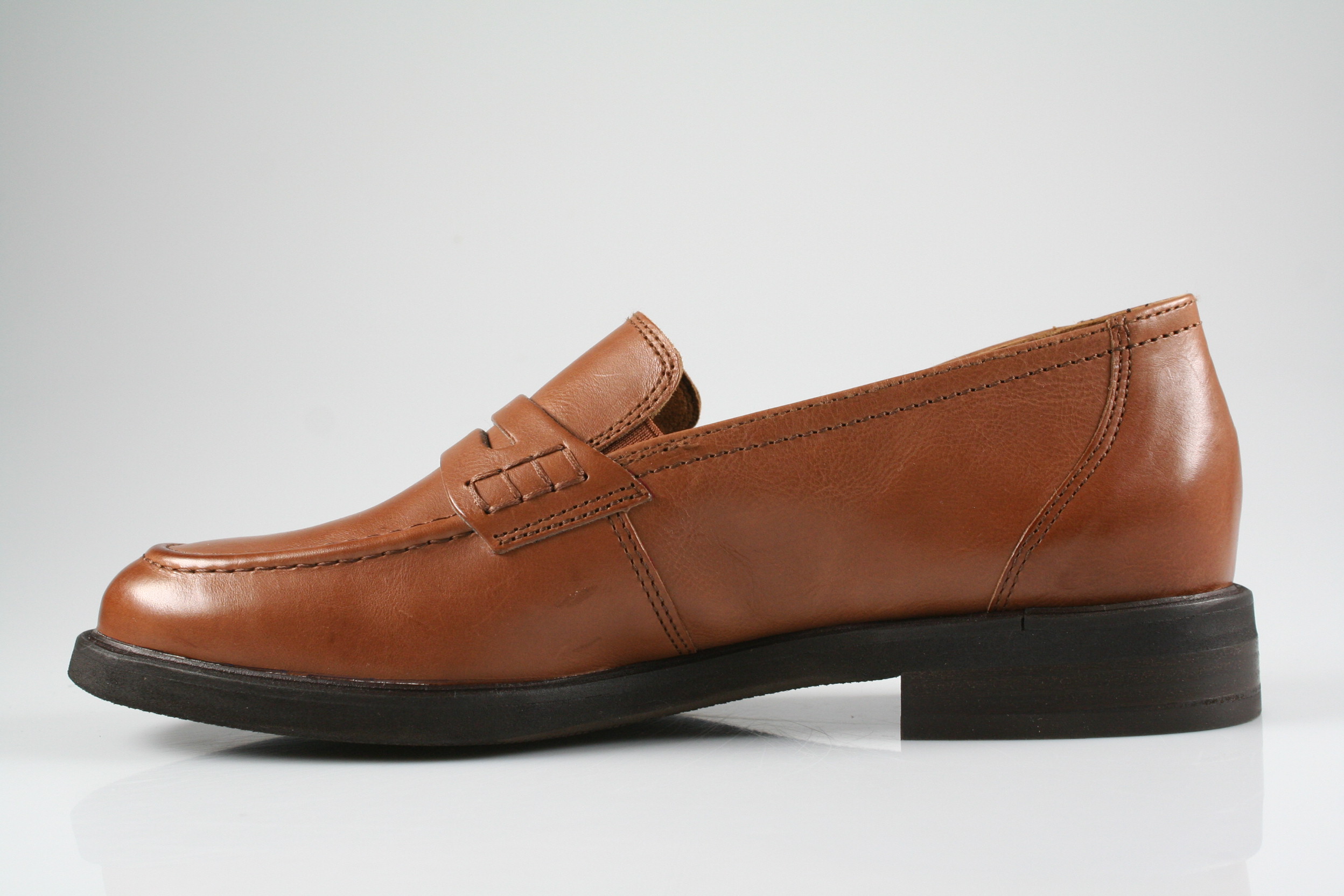 Typ: Mokassins; Farbe "cognac"; Ausstattung:; - Obermaterial: Glattleder; - weiches Fußbett; - leichte Laufsohle; - gepolsterter Schaftrand;