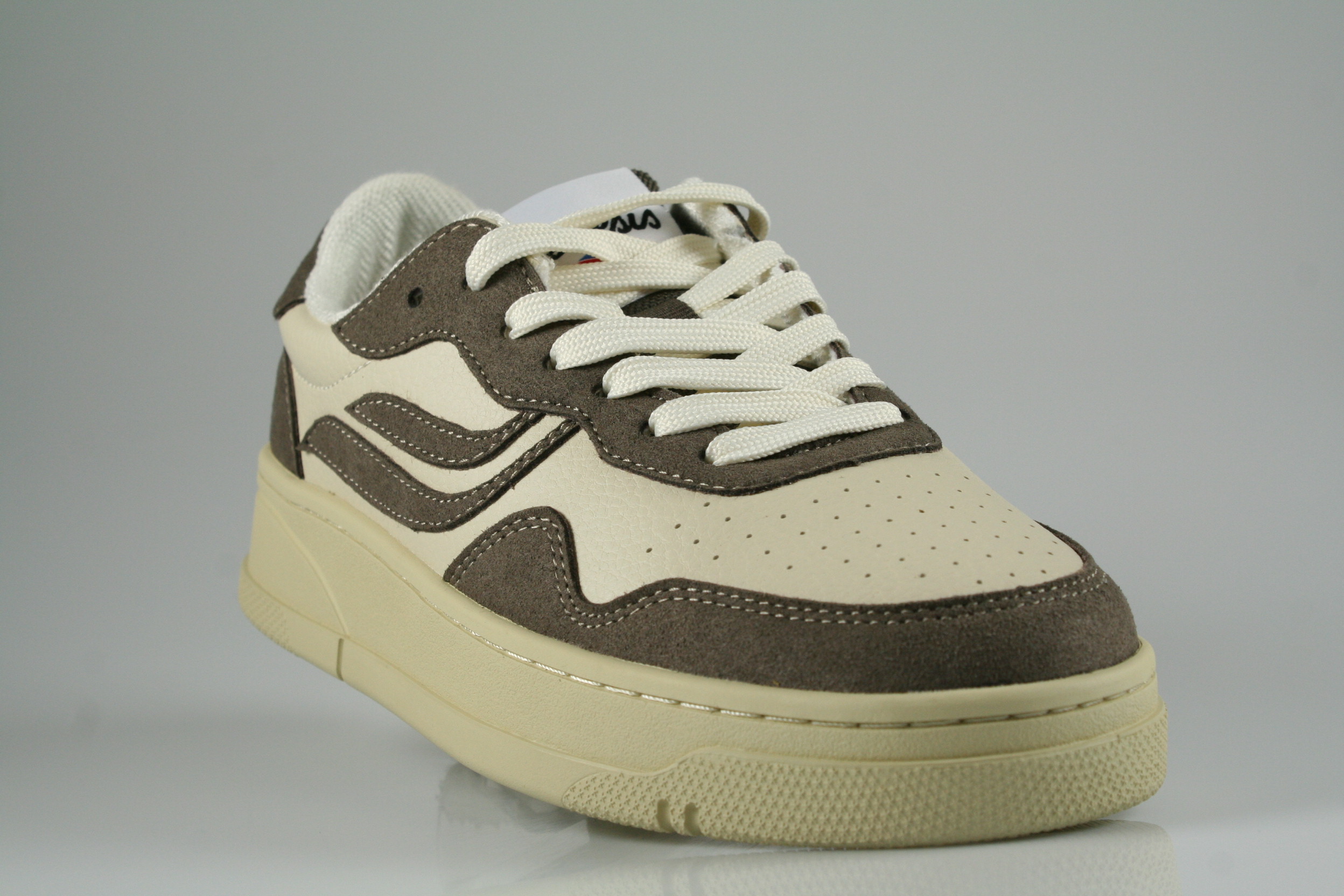 Typ: Sneaker; Farbe "graphite/cream"; Ausstattung:; - Obermaterial: Synthetik; - herausnehmbares Fußbett; - leichte Laufsohle; - gepolsterter Schaftrand; - Schnürsenkel zur Weitenregulierung