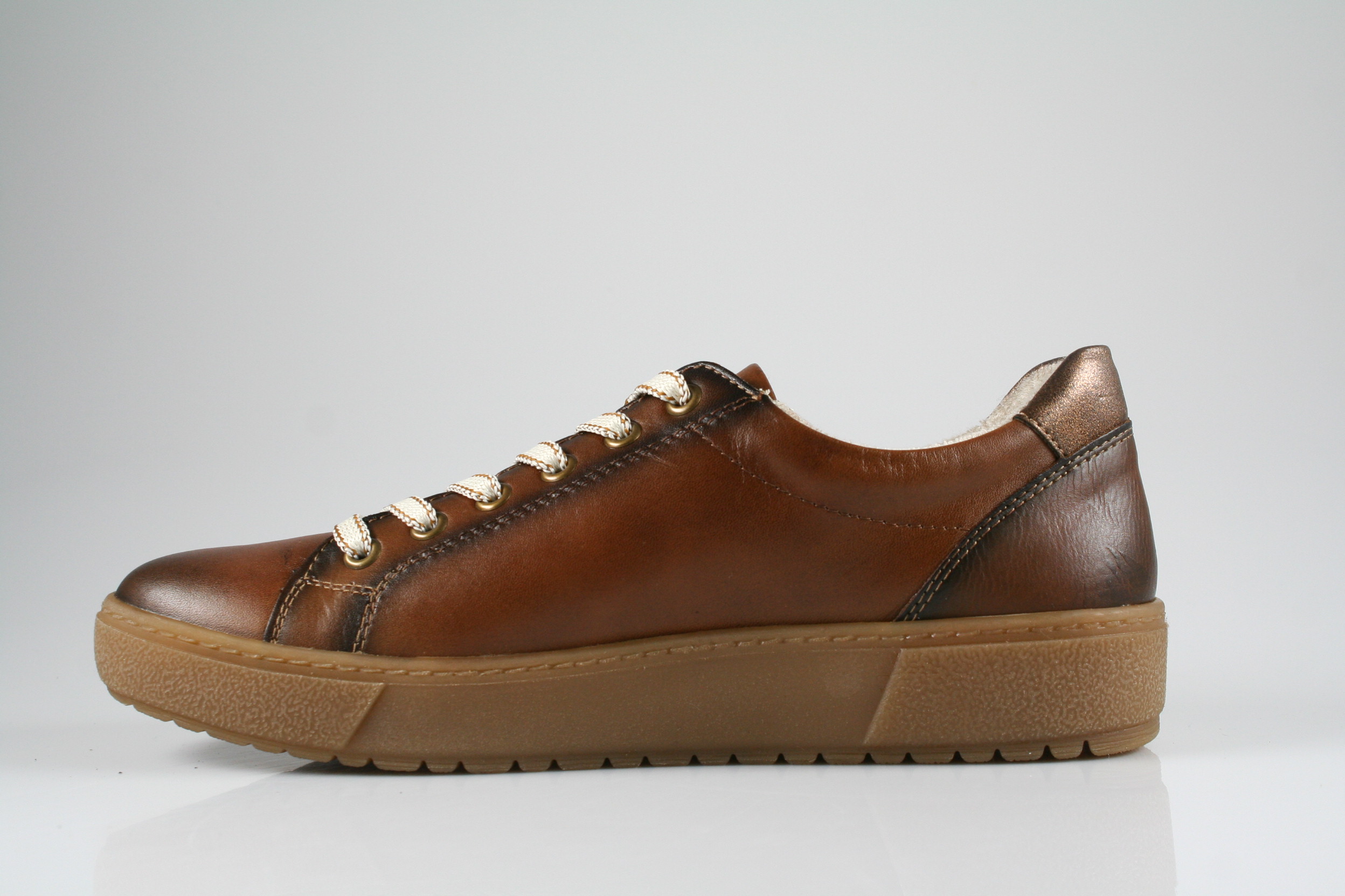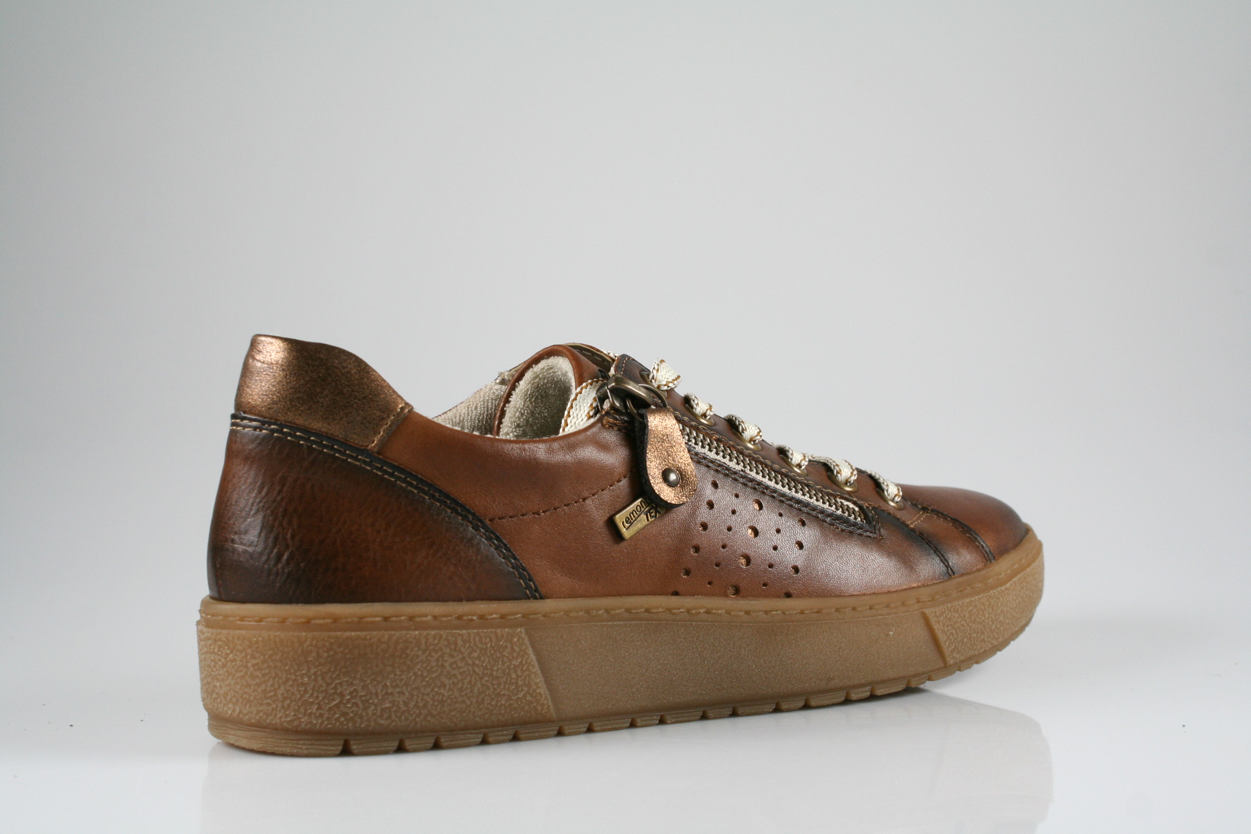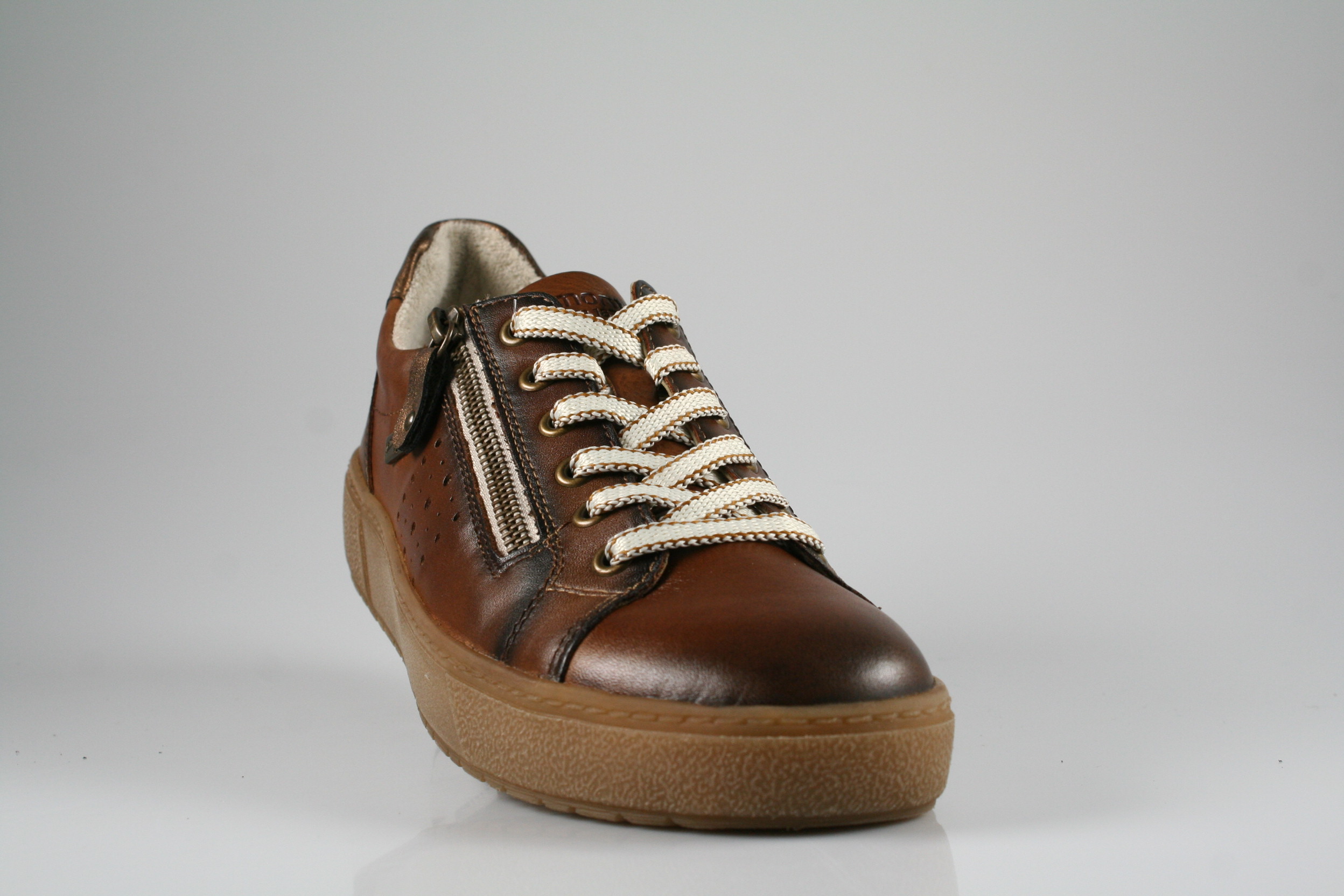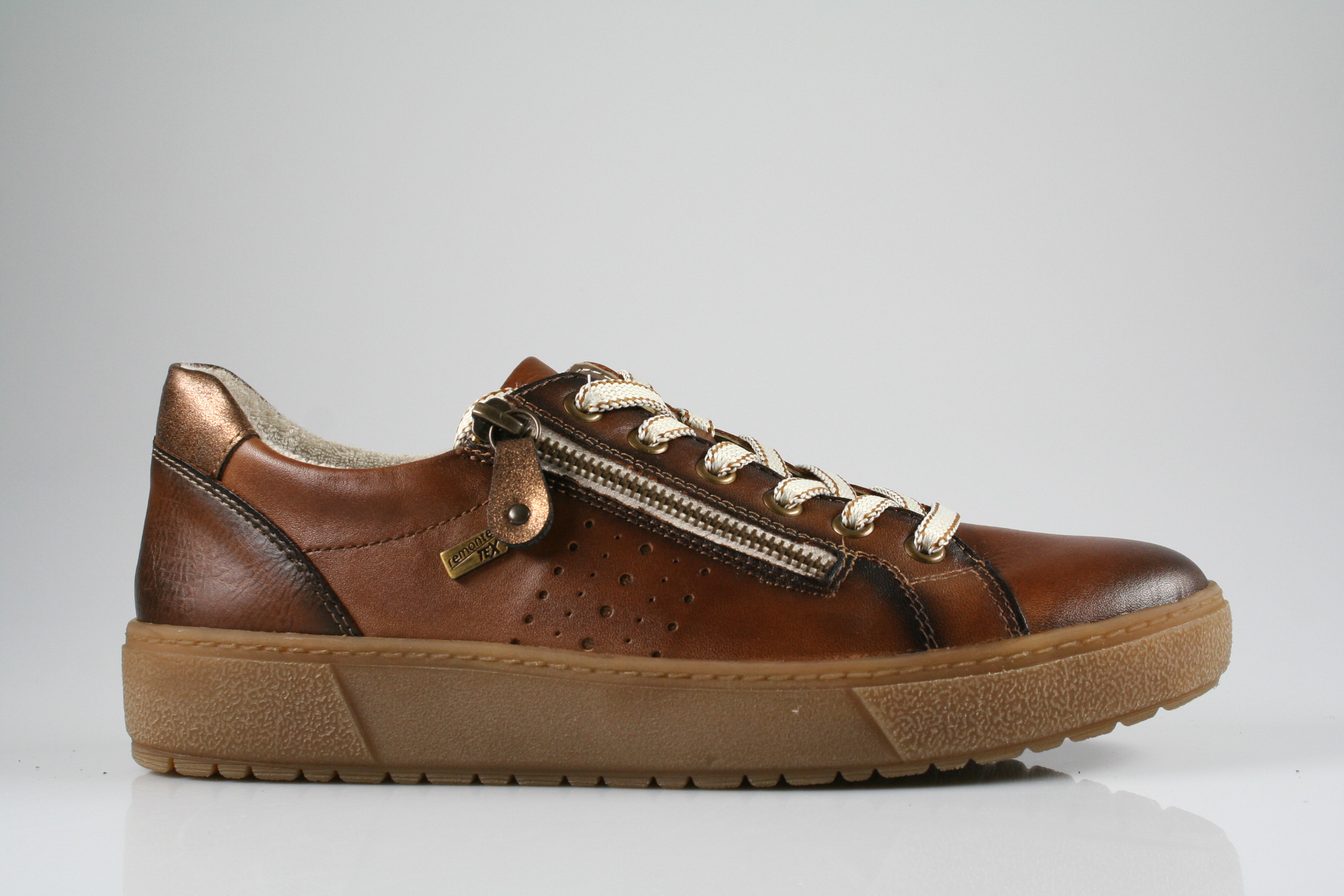 Typ: Halbschuh; Farbe "braun kombi"; Ausstattung:; - Obermaterial: Glattleder; - herausnehmbares Fußbett ; - flexible Gummilaufsohle; - gepolsterter Schaftrand; - Schnürsenkel und Reißverschluss zur Weitenregulierung; - "RemonteTex"-Membrane;