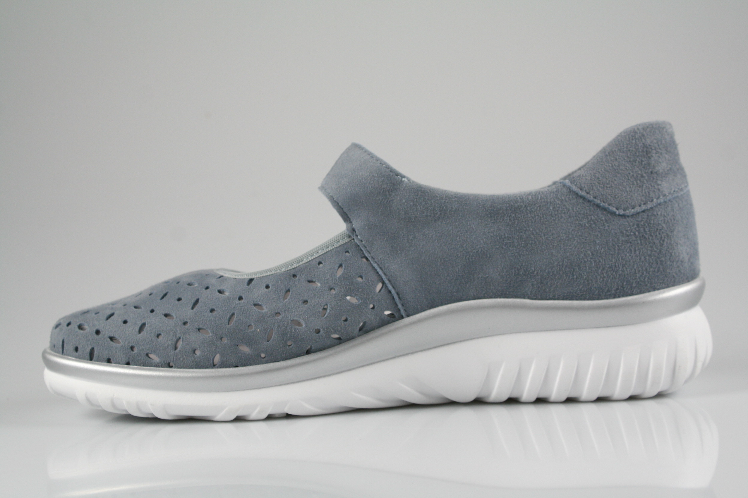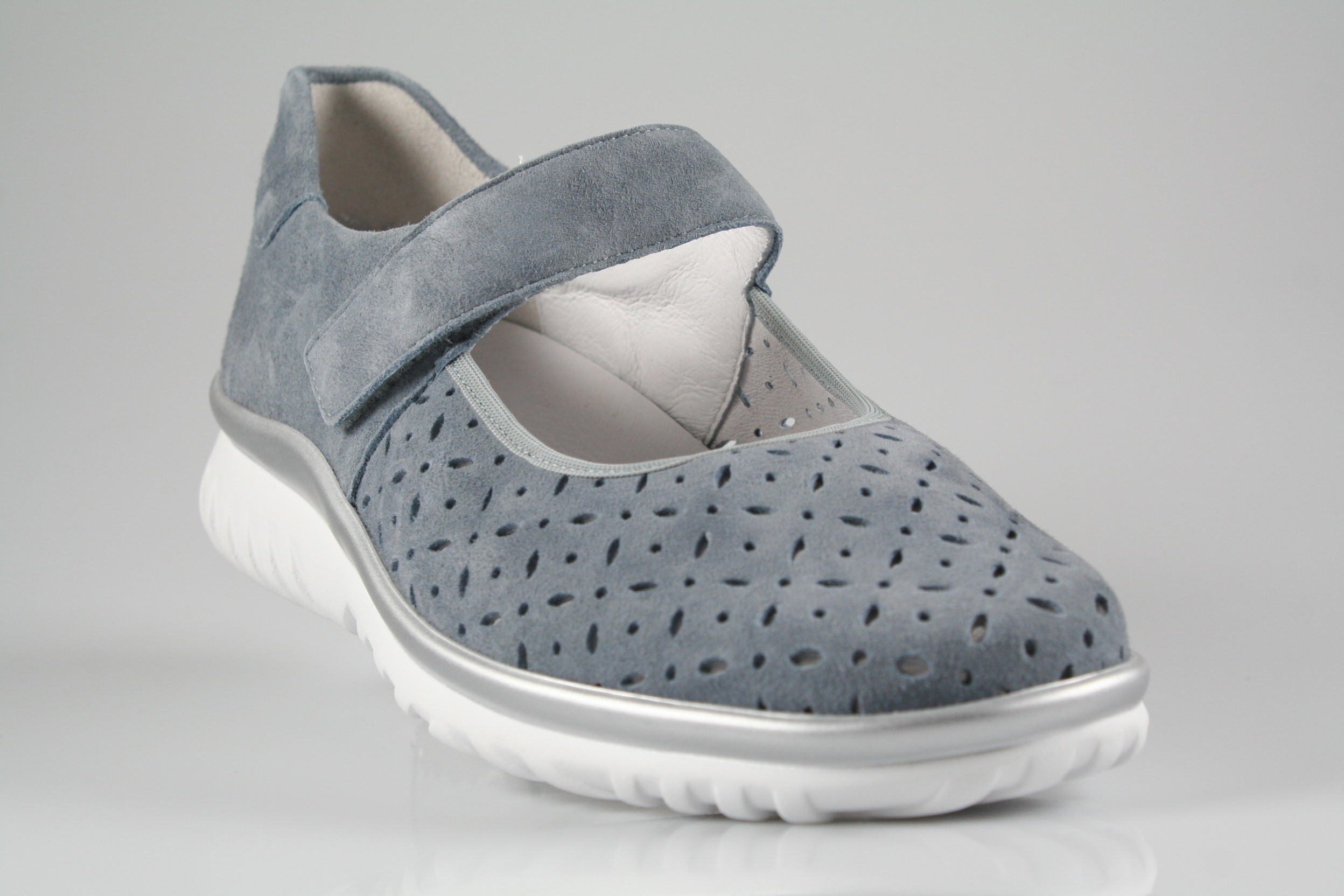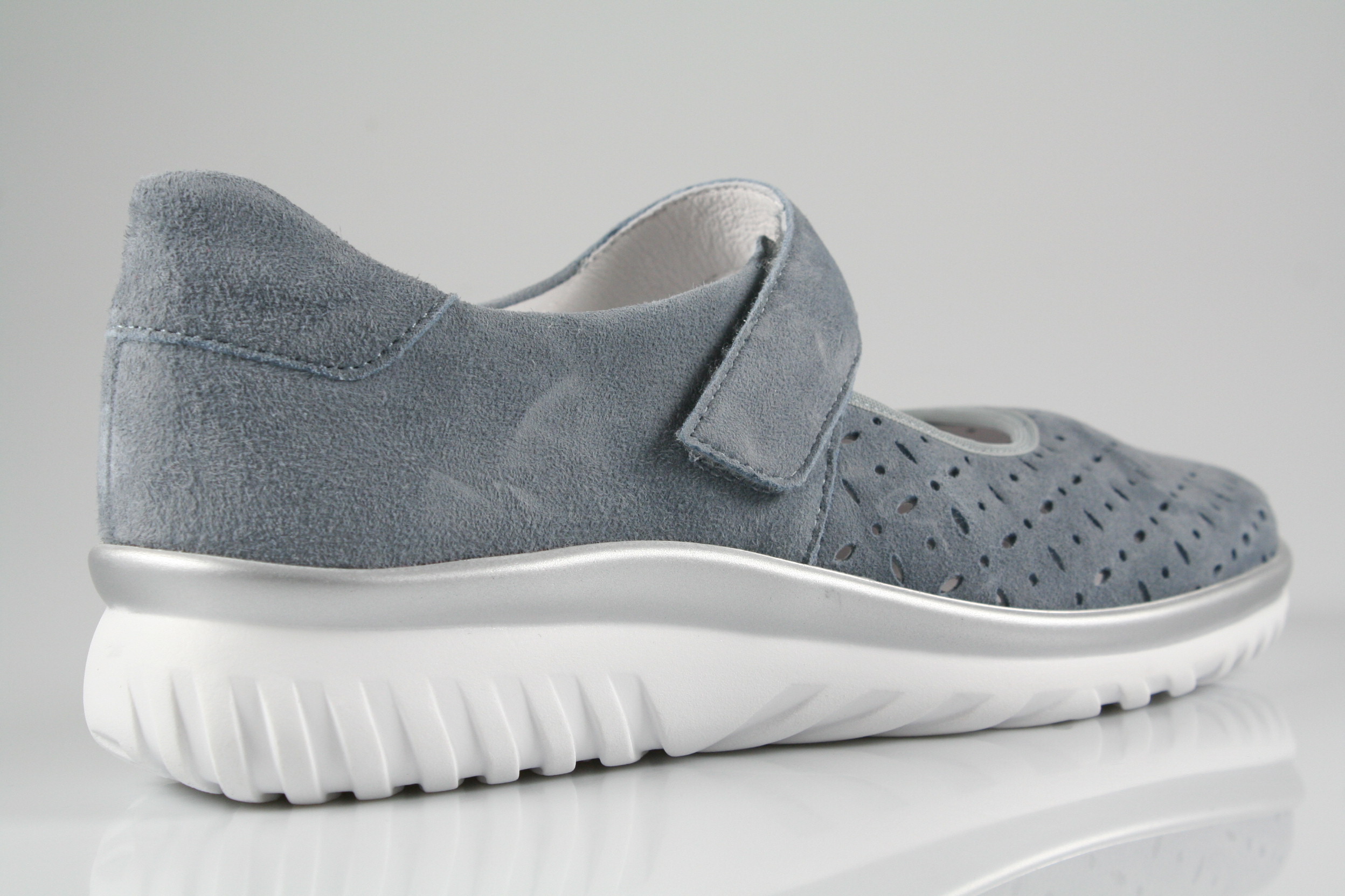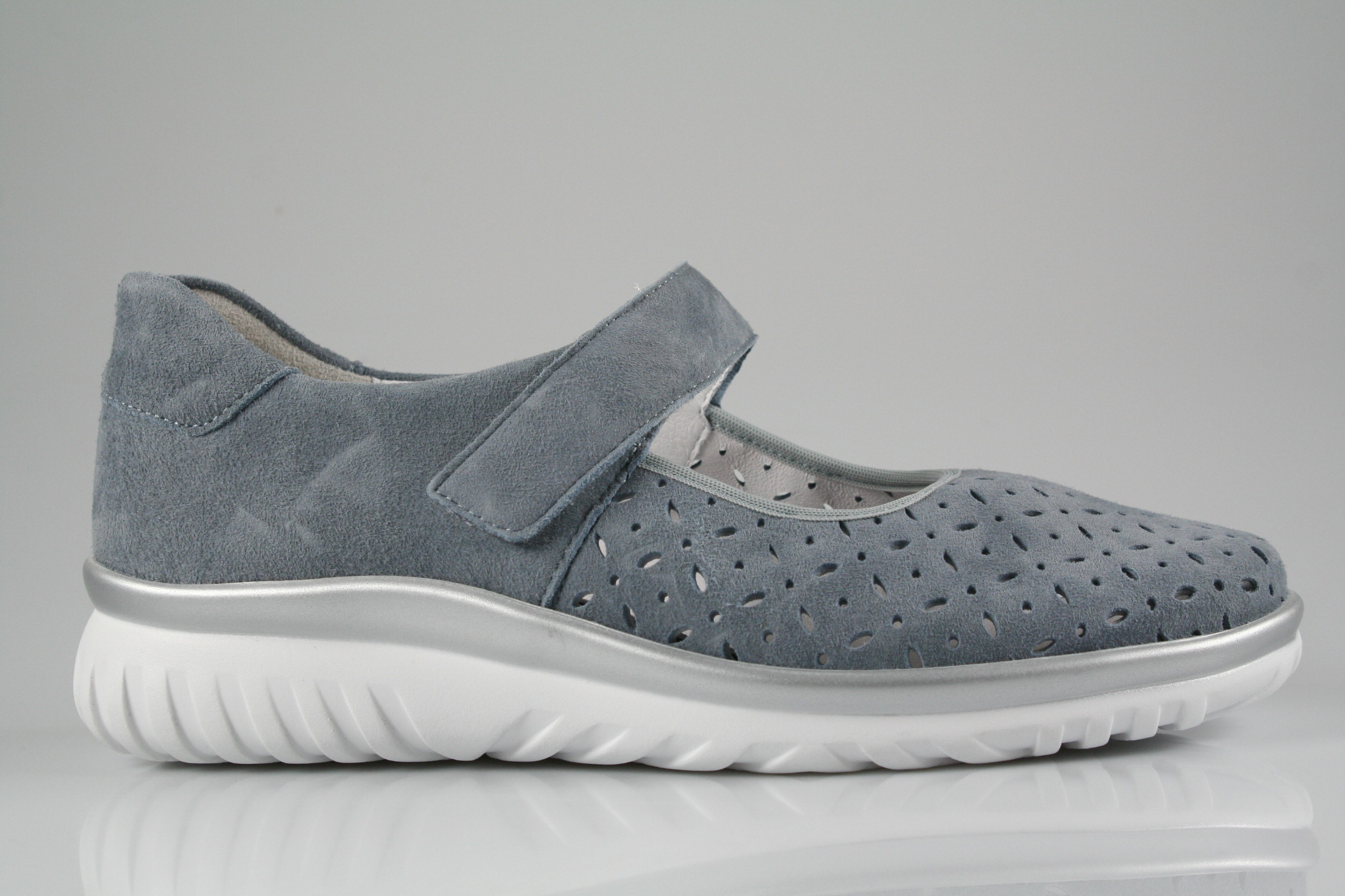Typ: Halbschuh; Farbe "sky"; Ausstattung:; - Obermaterial: Velourleder; - herausnehmbares Fußbett ; - leichte Laufsohle; - gepolsterter Schaftrand; - Klettverschluss zur Weitenregulierung
