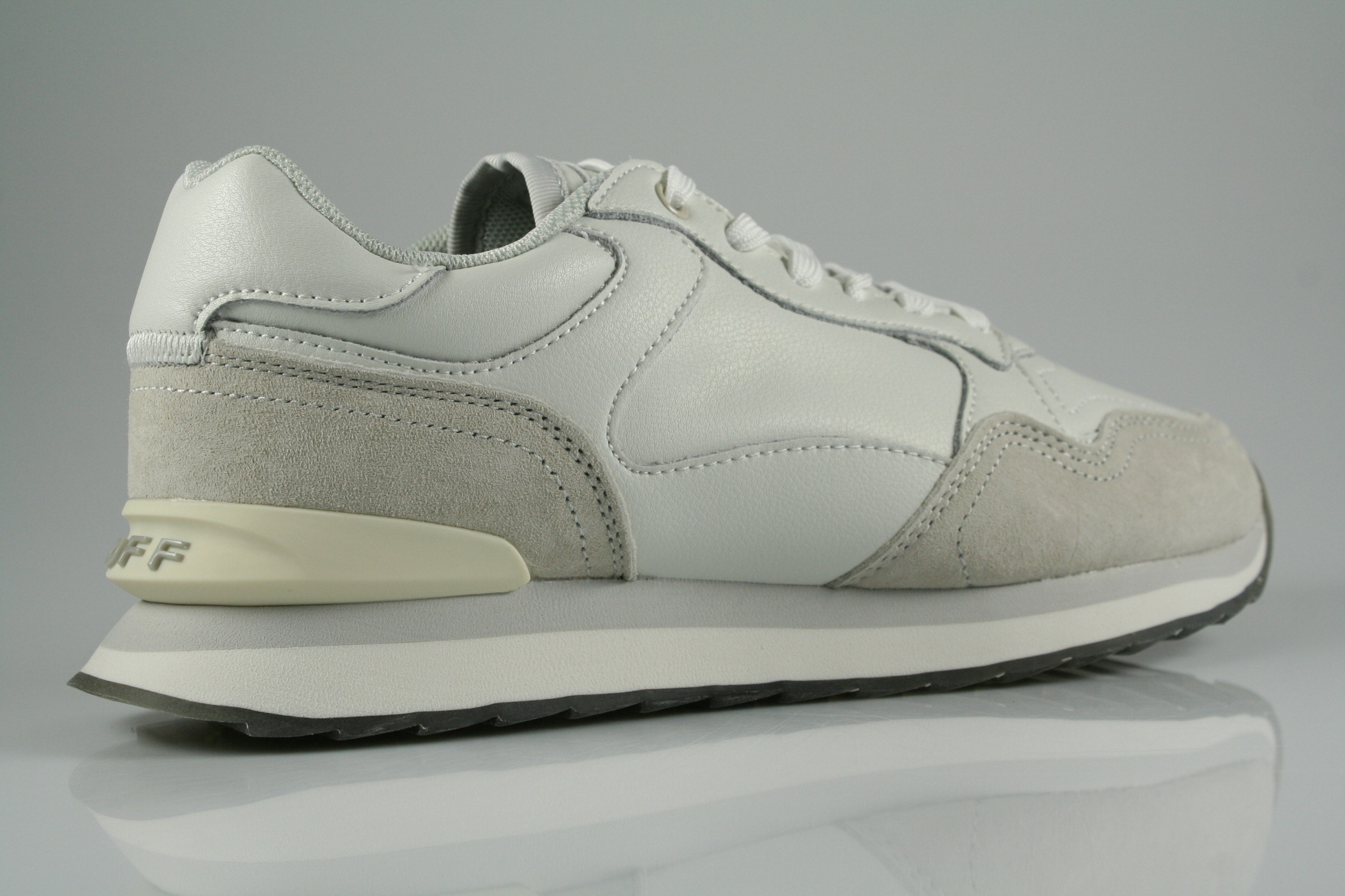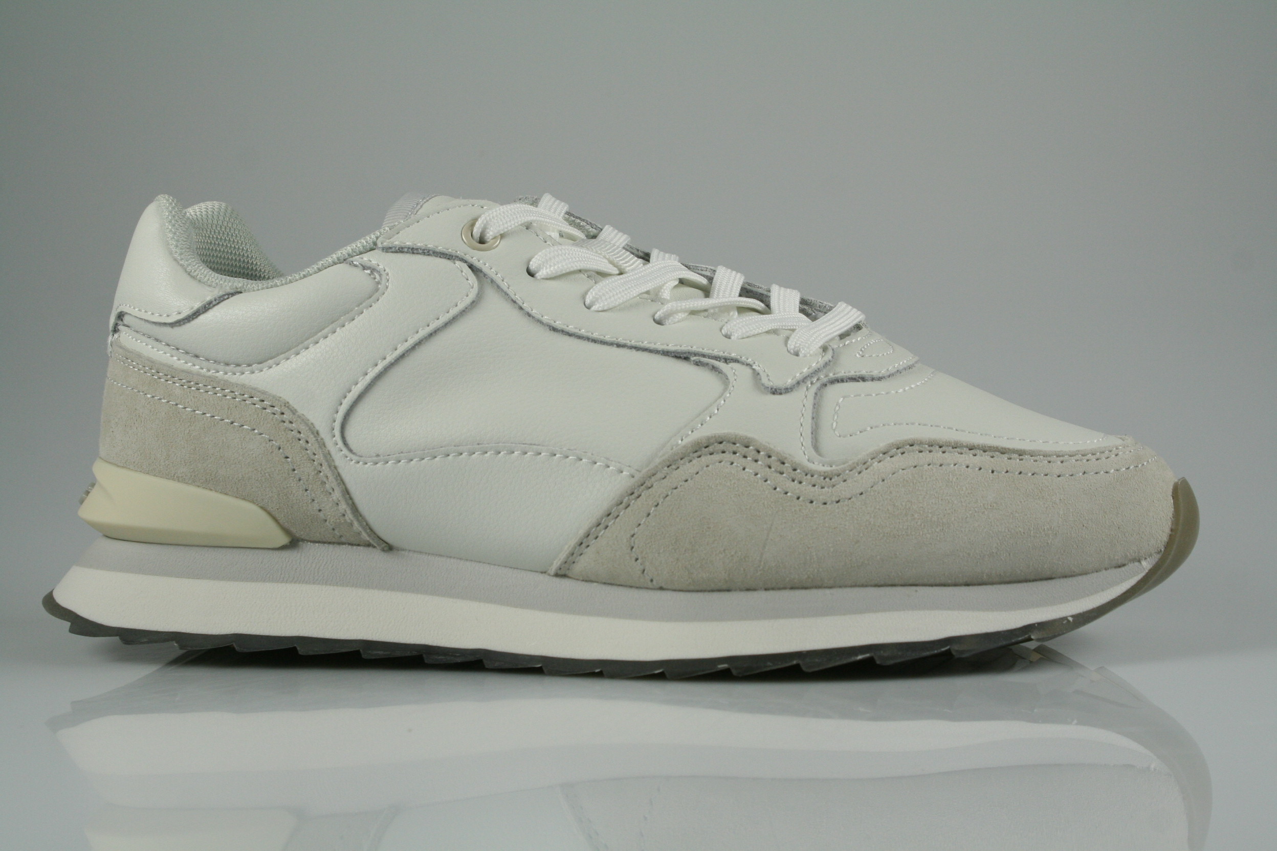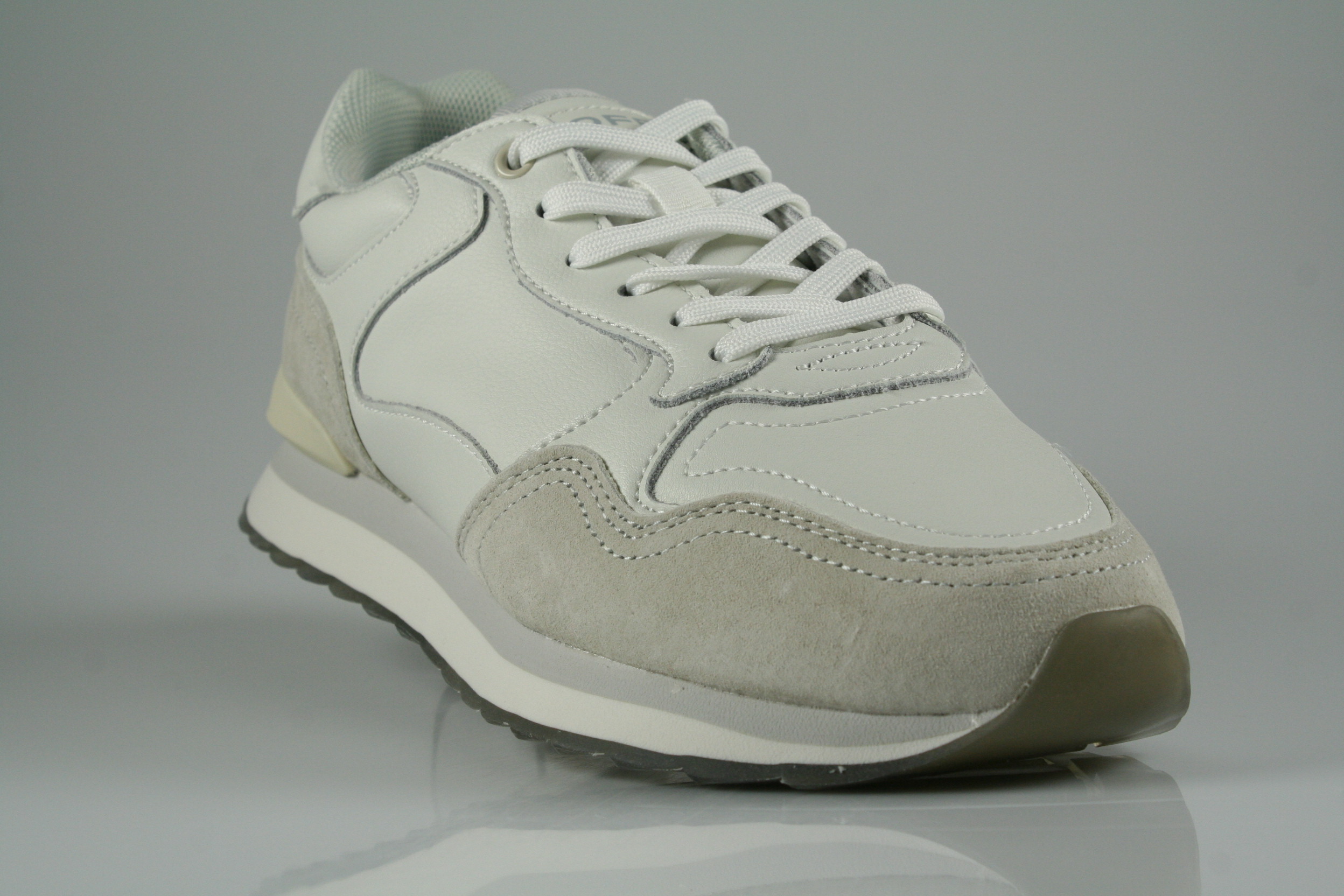 Typ: Sneaker; Farbe: grau, beige; Ausstattung:; - Obermaterial: Leder, Synthetik; - herausnehmbares Fußbett; - leichte Laufsohle; - gepolsterter Schaftrand; - Schnürsenkel zur Weitenregulierung