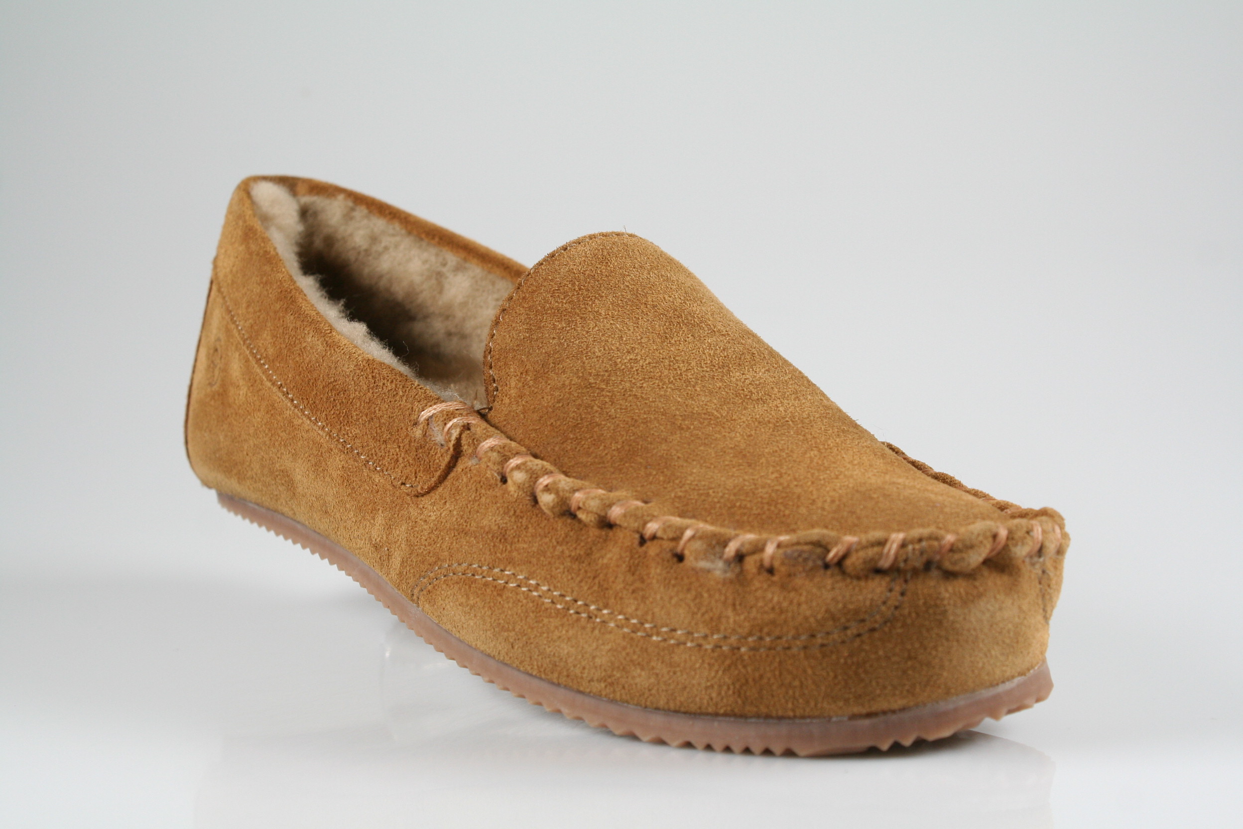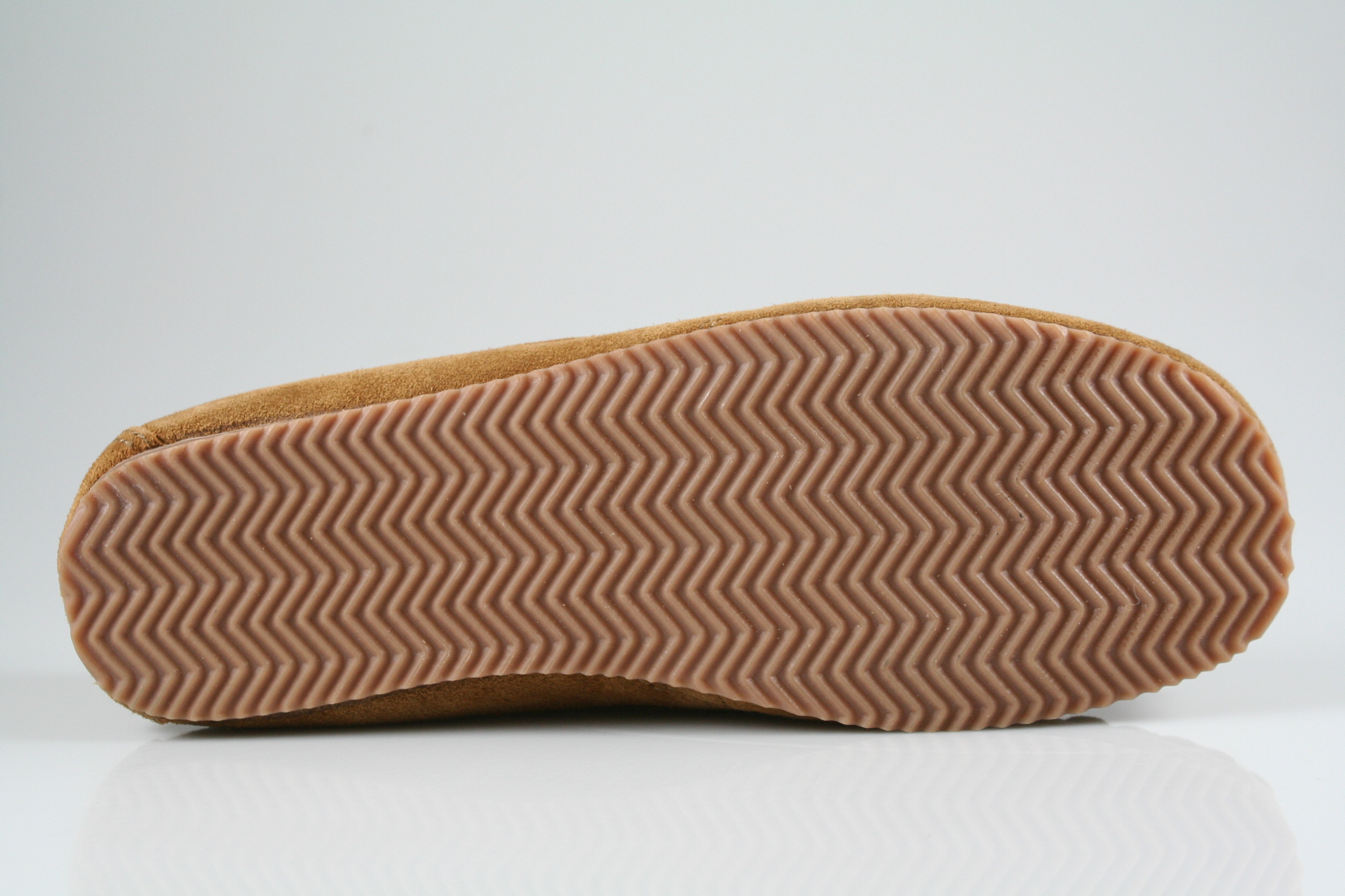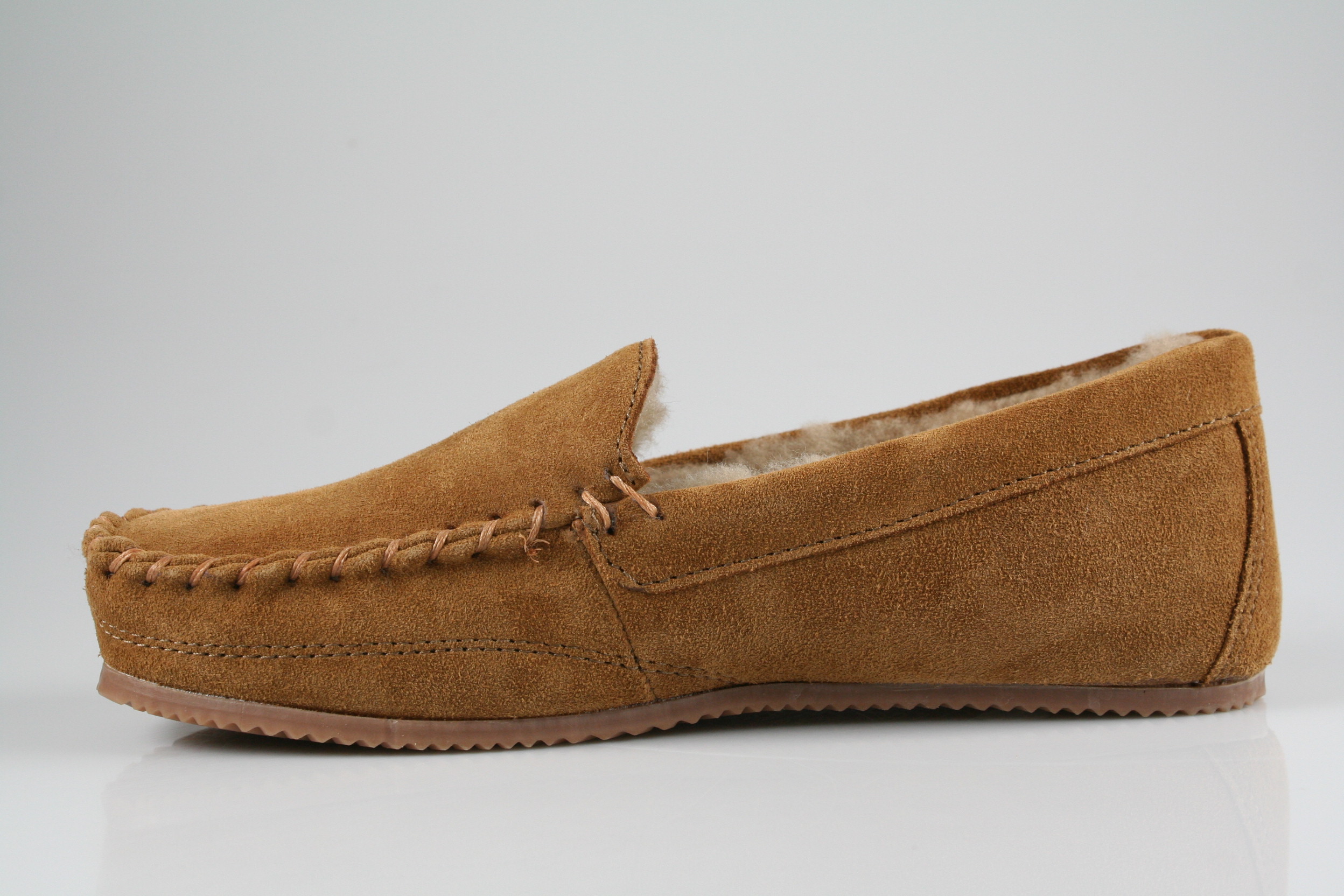 Typ: Hausschuh; Farbe "cuoio"; Ausstattung:; - Obermaterial: Velourleder; - Warmfutter; - flexible Laufsohle; - geschlossene Ferse