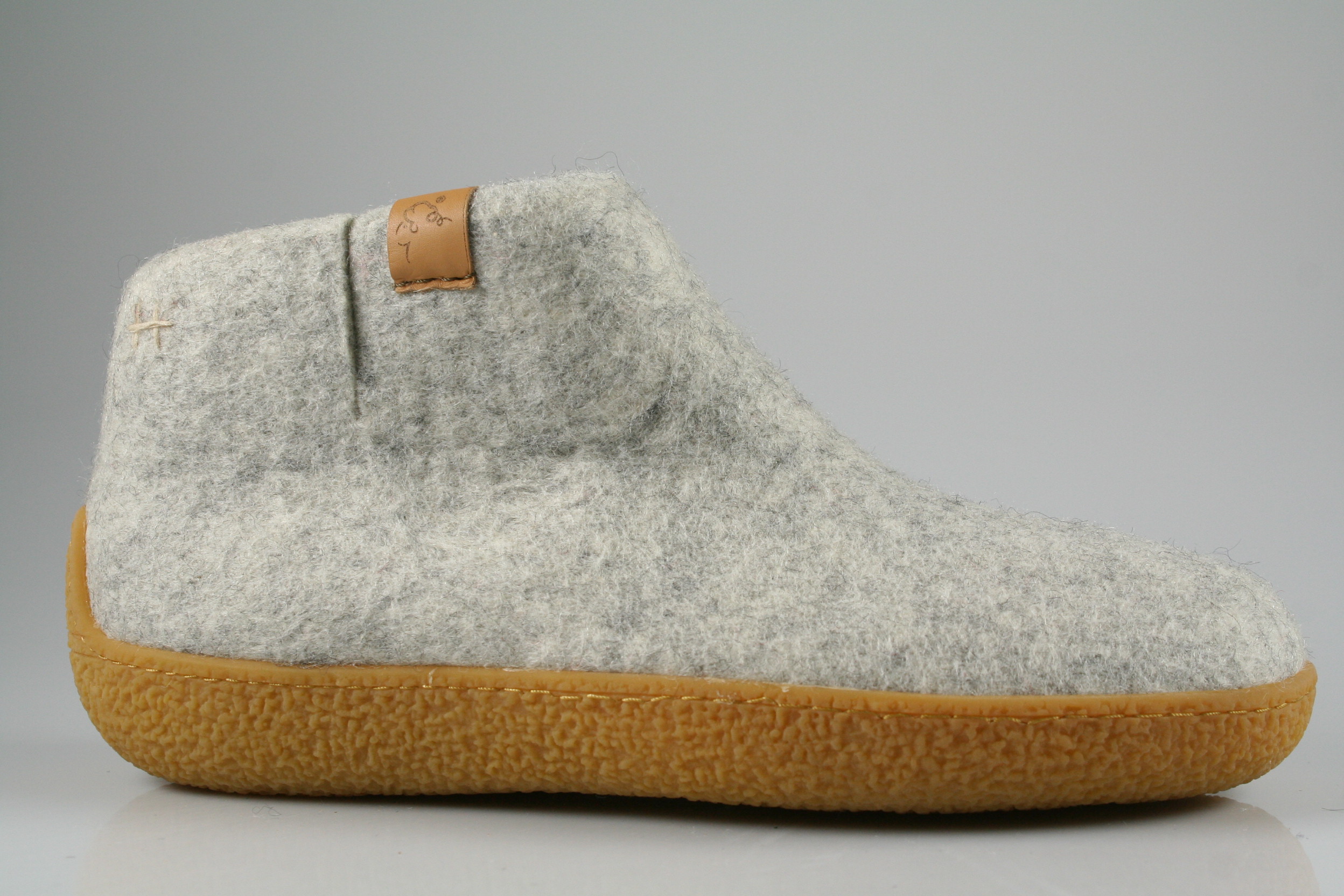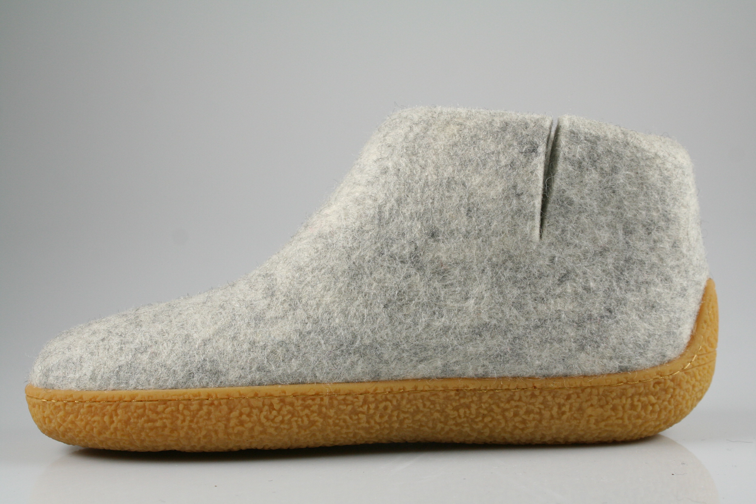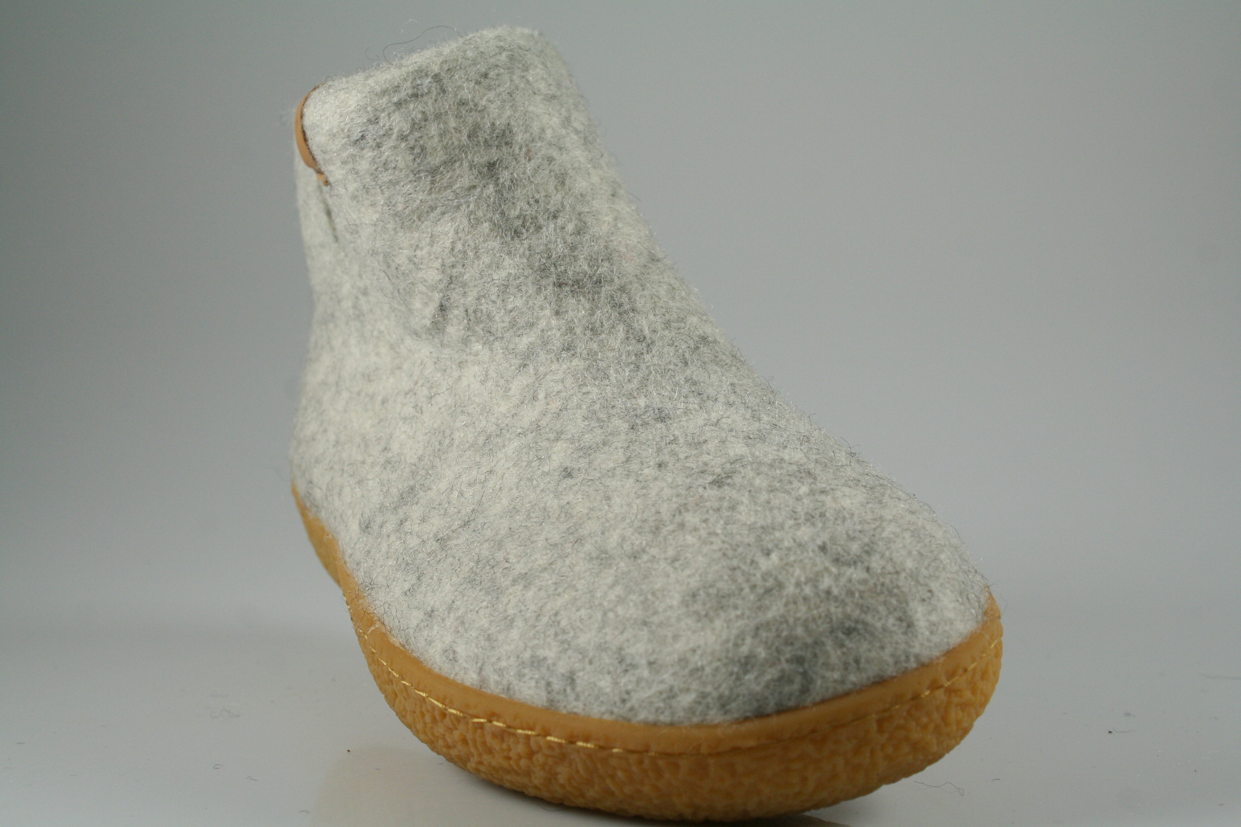 Typ: Hausschuh; Farbe "natural"; Ausstattung:; - Obermaterial: Filz; - weiches Fußbett; - flexible Laufsohle; - gepolsterter Schaftrand;