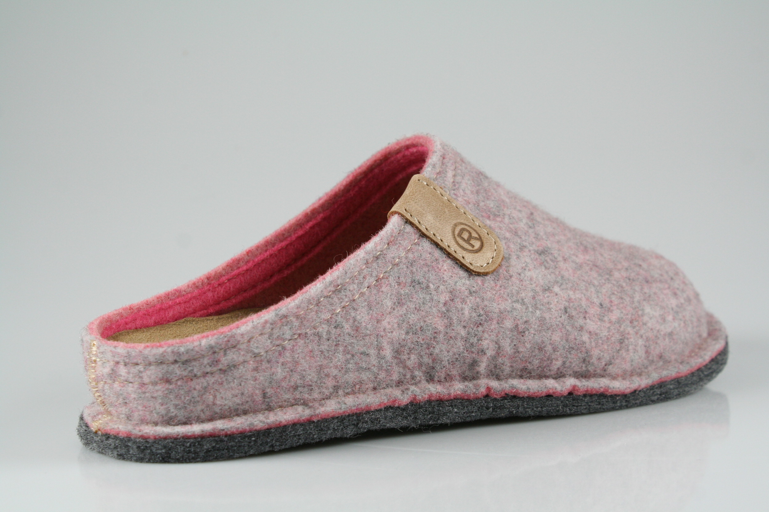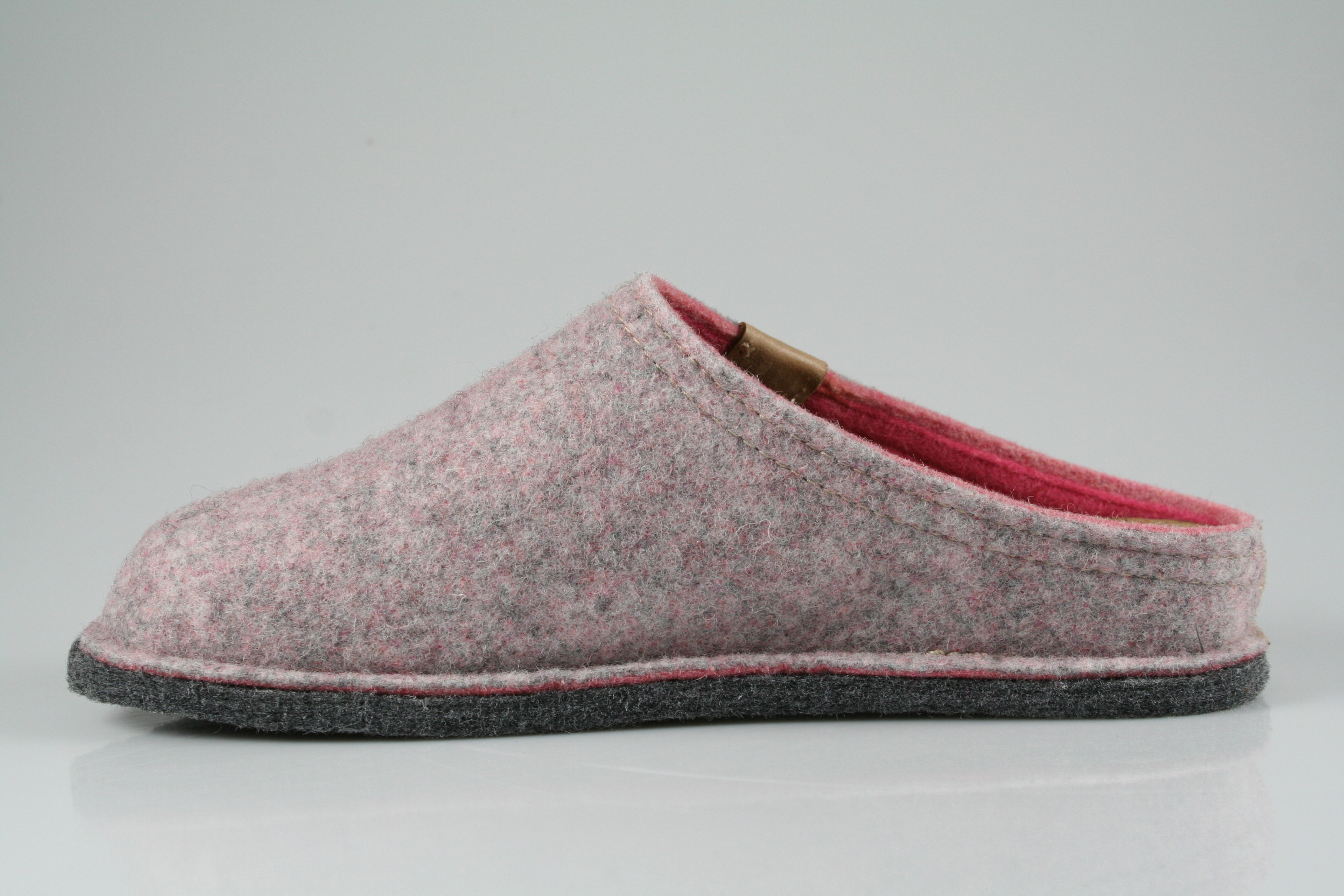 Typ: Hausschuh; Farbe "rose"; Ausstattung:; - Obermaterial und Innenfutter: Filz; - herausnehmbares Lederfußbett; - leichte Laufsohle