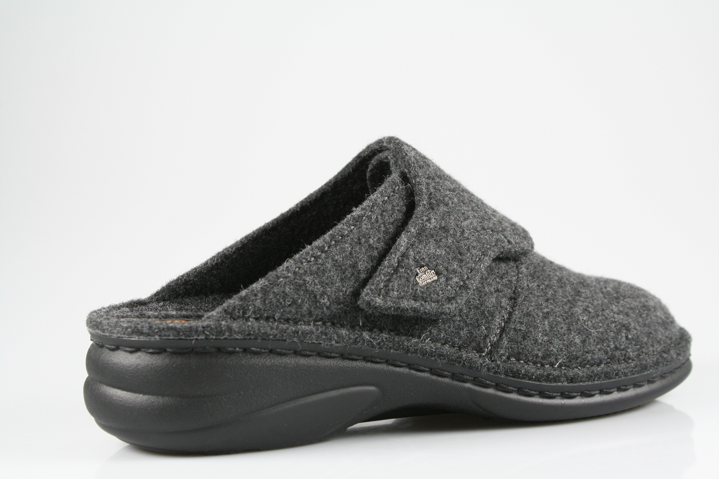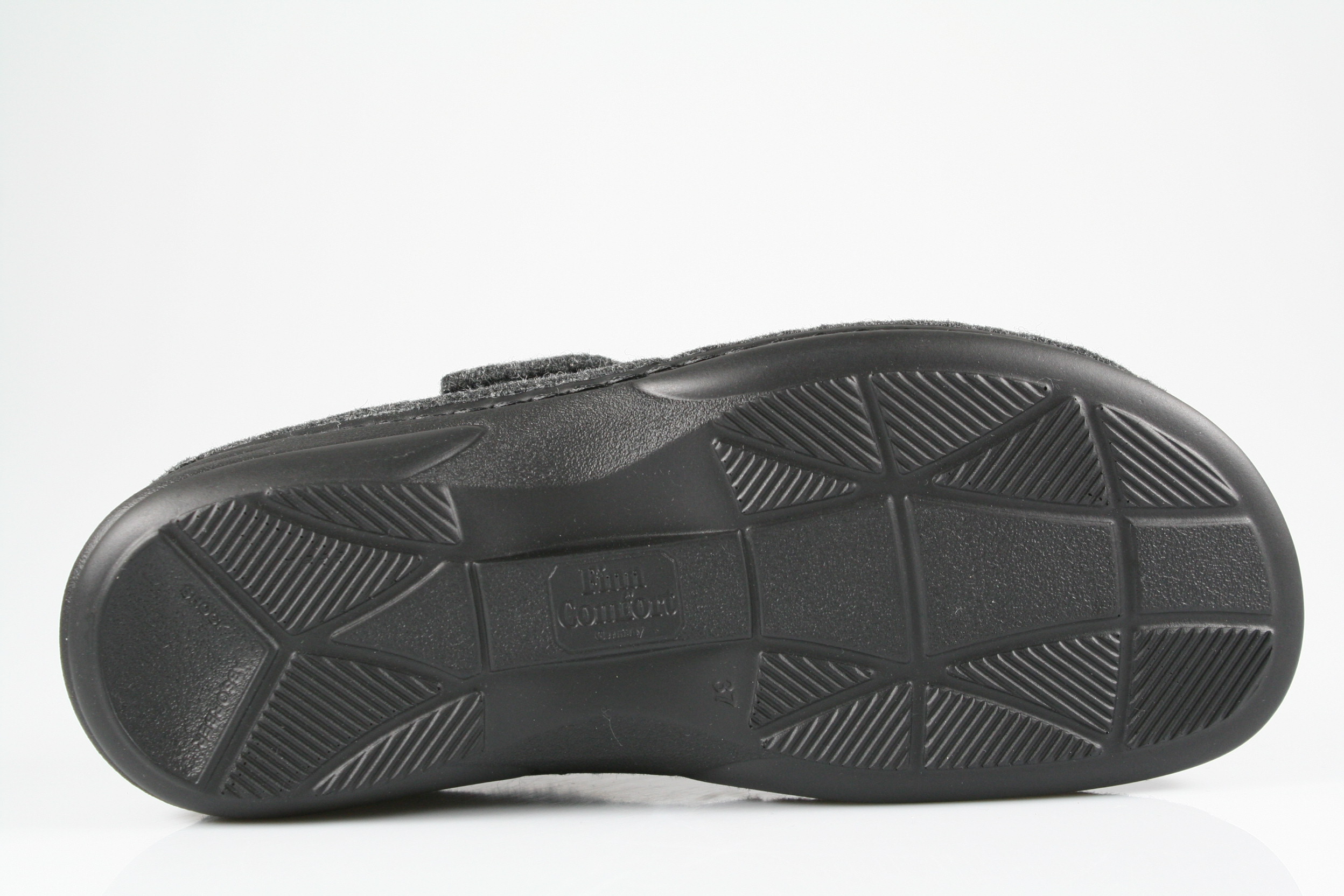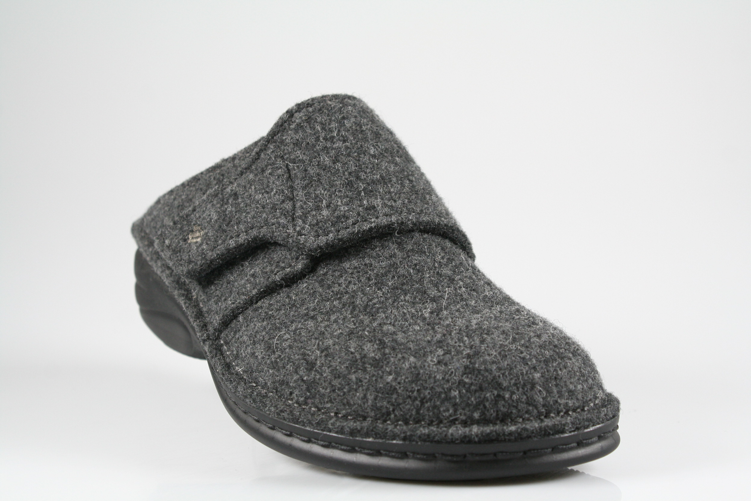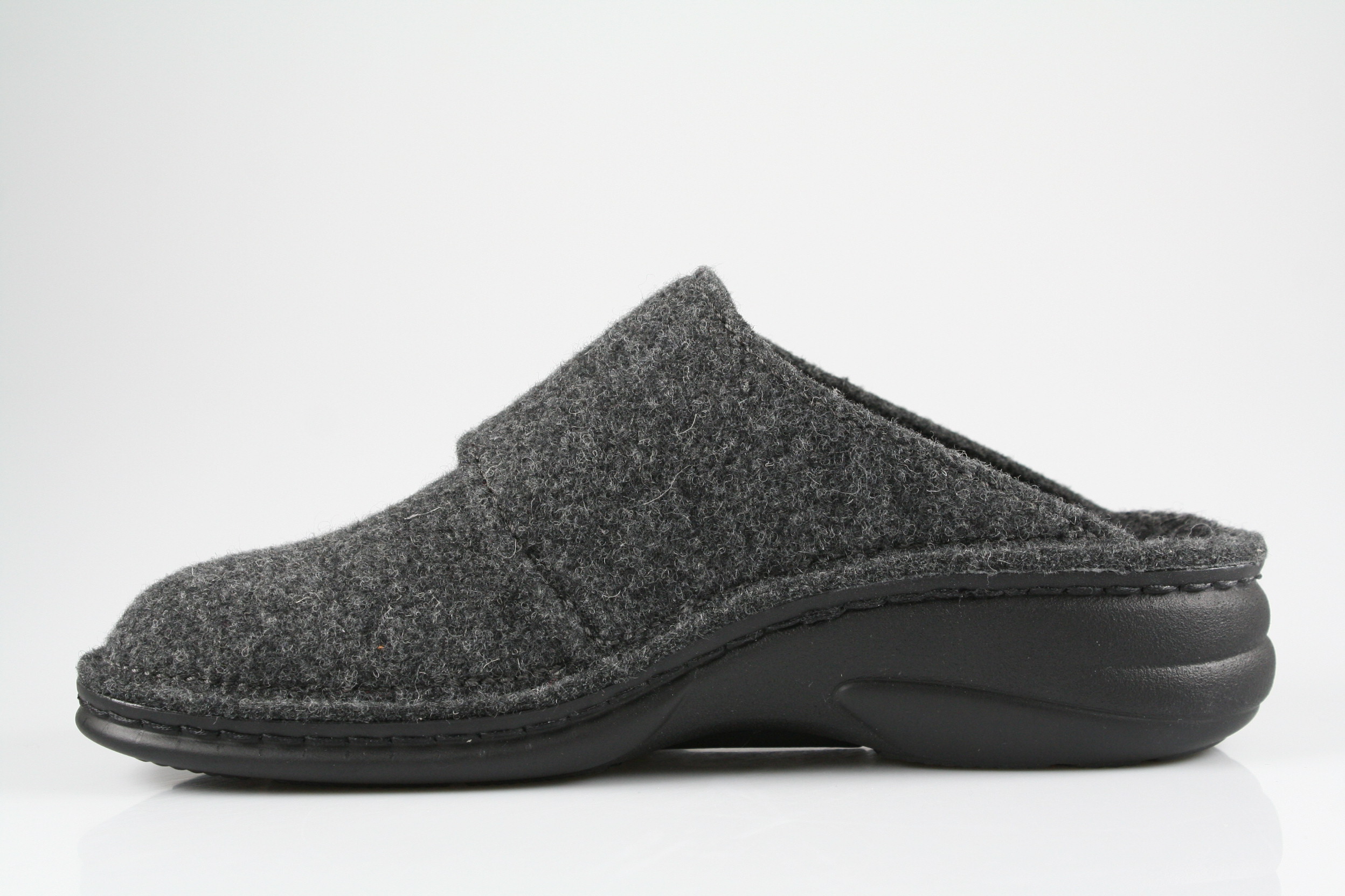 Typ: Hausschuh; Farbe "anthrazit"; Ausstattung:; - Obermaterial: Wollfilz; - herausnehmbares Fußbett; - leichte Laufsohle; - Klettverschluss zur Weitenregulierung