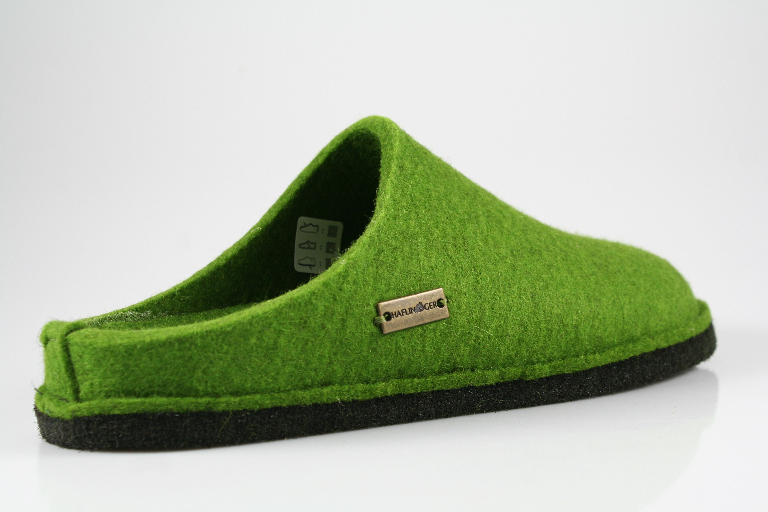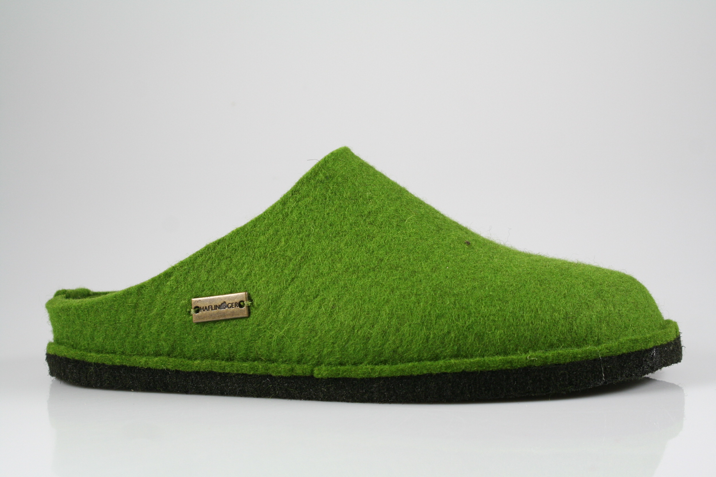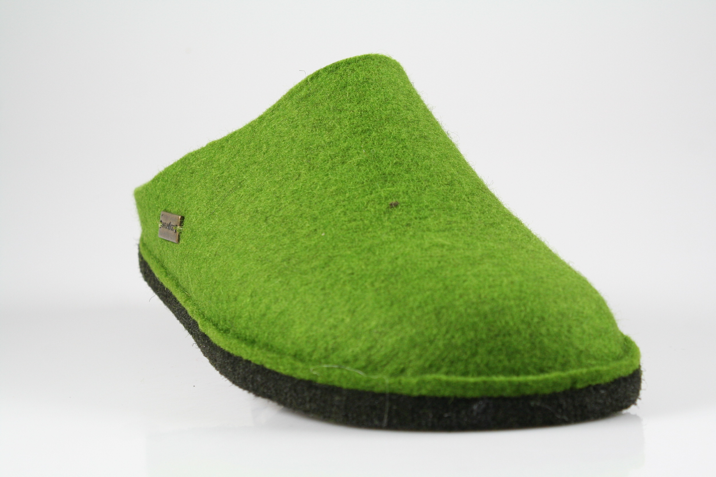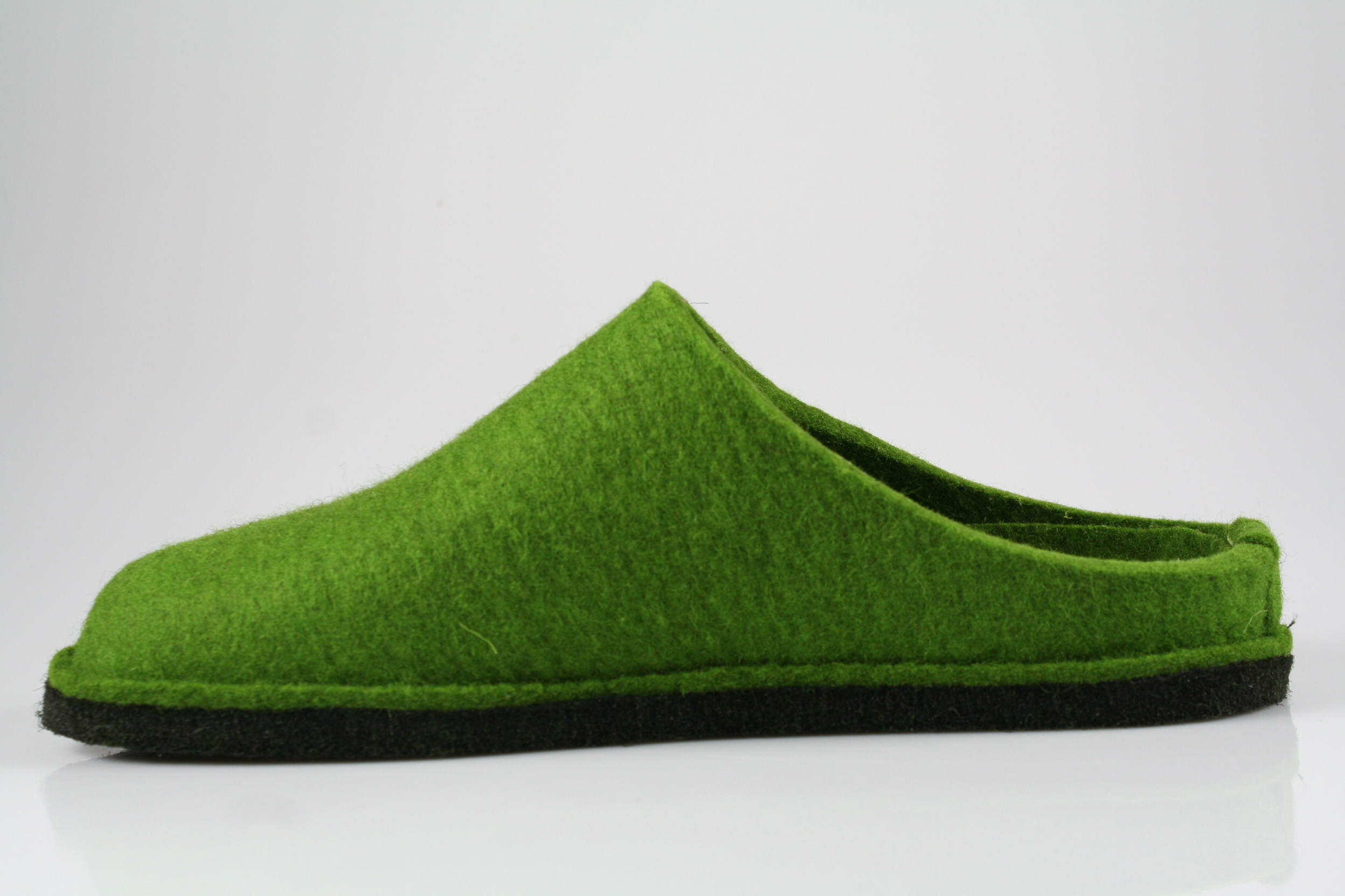 Typ: Hausschuh; Farbe "grasgrün"; Ausstattung:; - Obermaterial: Wollfilz; - weiches Fußbett; - leichte Laufsohle;