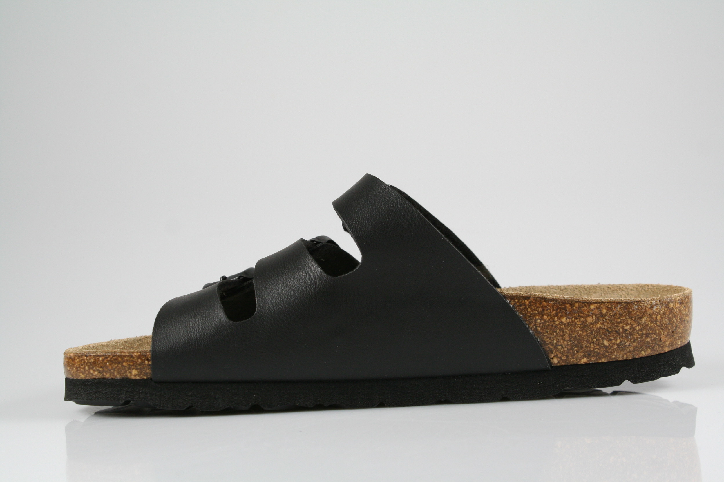 Typ: Pantolette; Farbe: "schwarz"; Ausstattung:; - Obermaterial: Softino; - weich gepolstertes Kork-Leder-Fußbett; - Leichtzell-Laufsohle; - Riemchen mit Schnallen