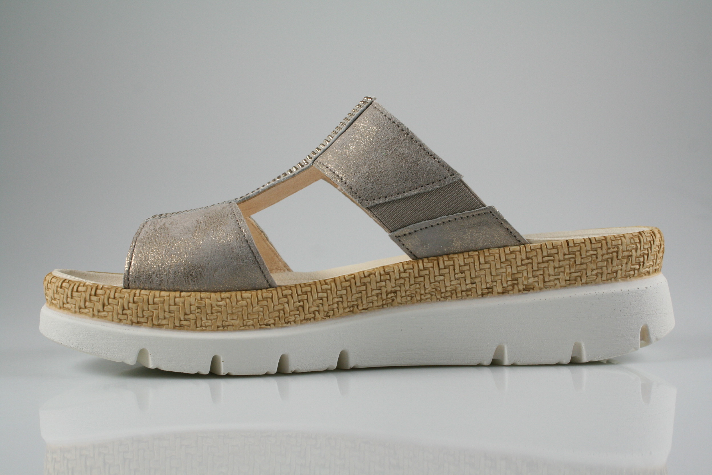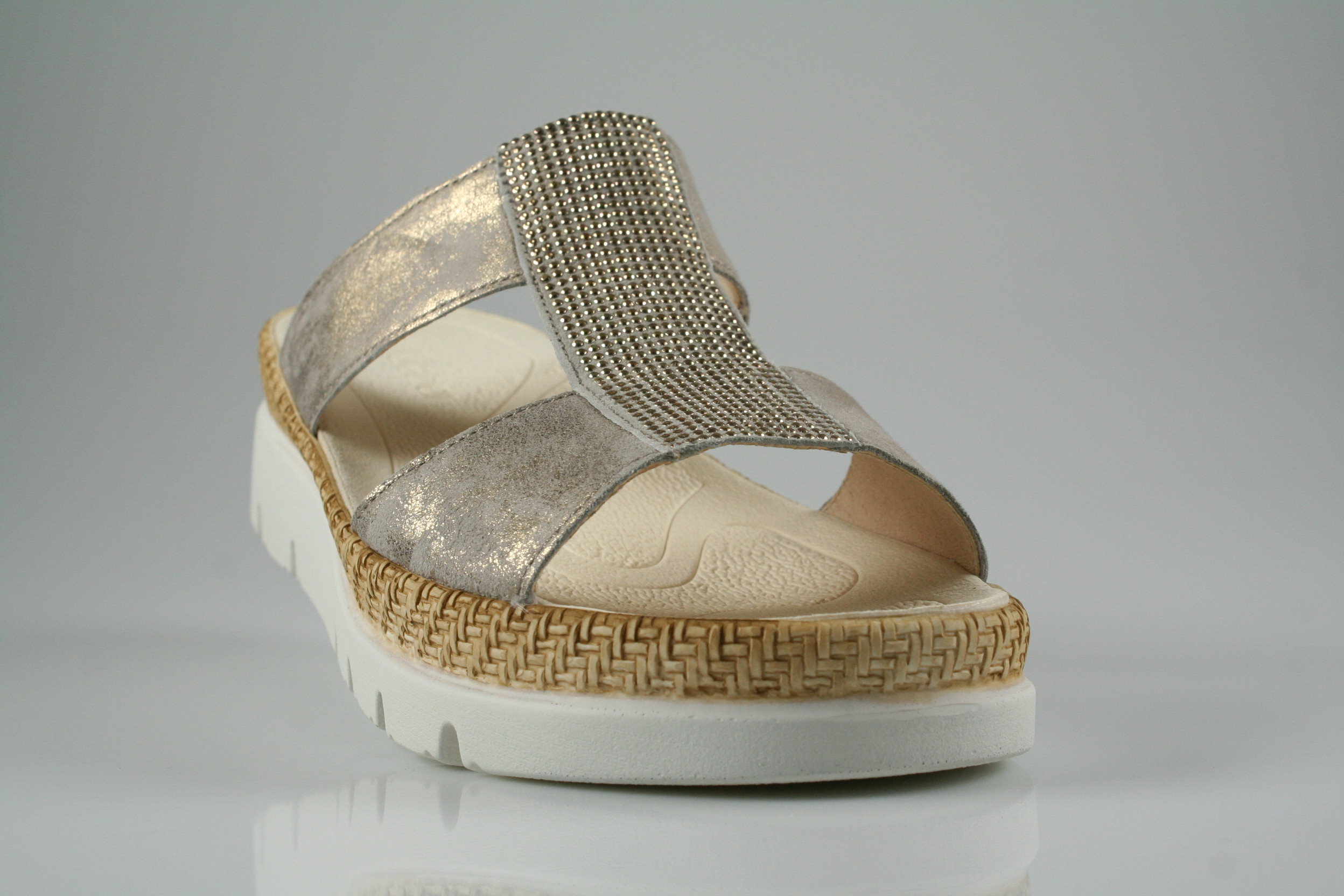 Typ: Pantolette; Farbe "muschel/visone"; Ausstattung:; - Obermaterial: Caruso/Samtchevreau; - weiches Fußbett; - leichte Laufsohle; - dehnbare Riemchen
