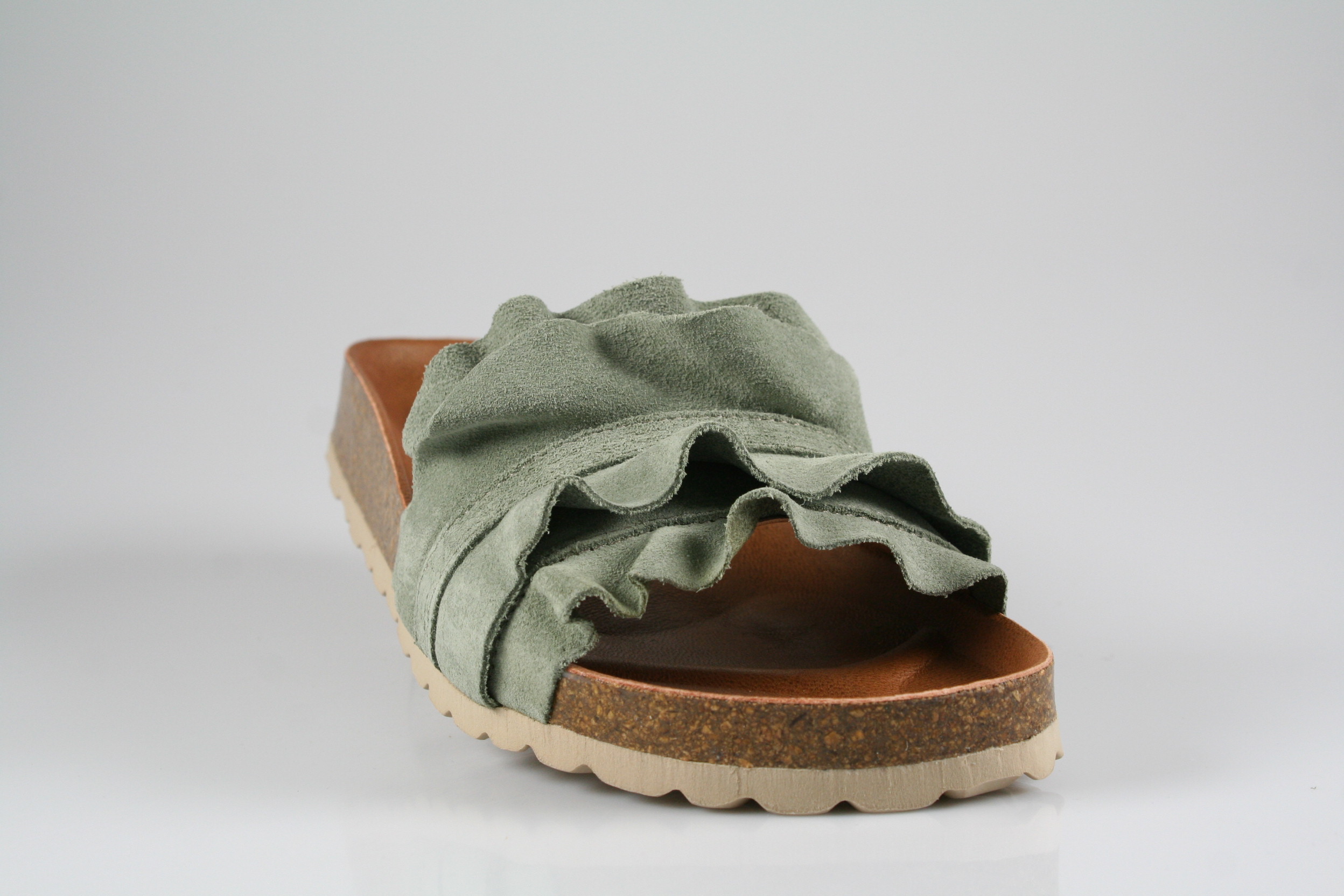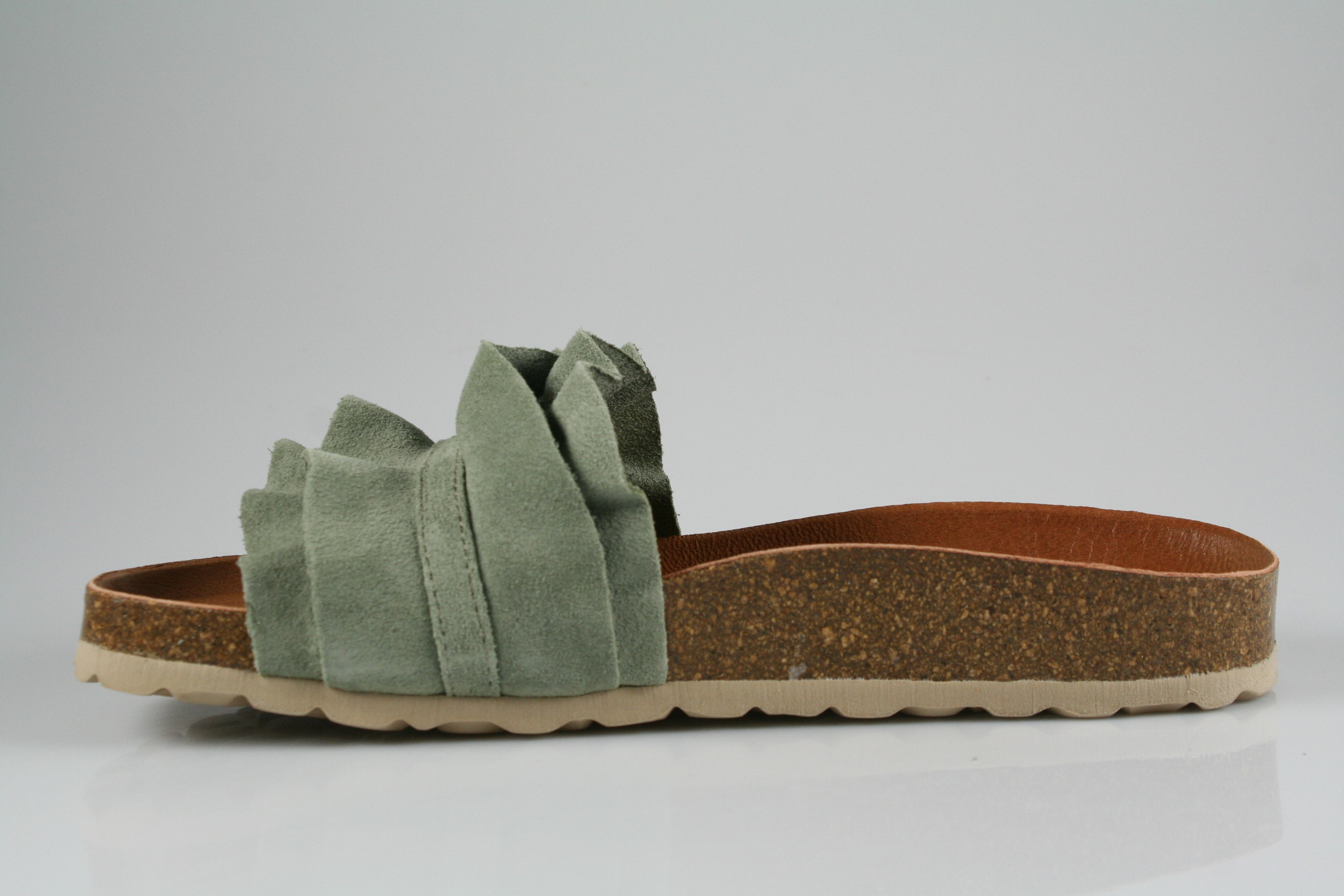 Typ: Pantolette; Farbe: "bosco"; Ausstattung:; - Obermaterial: "Serraje Volante; - Kork-/Lederfußbett; - leichte Laufsohle;
