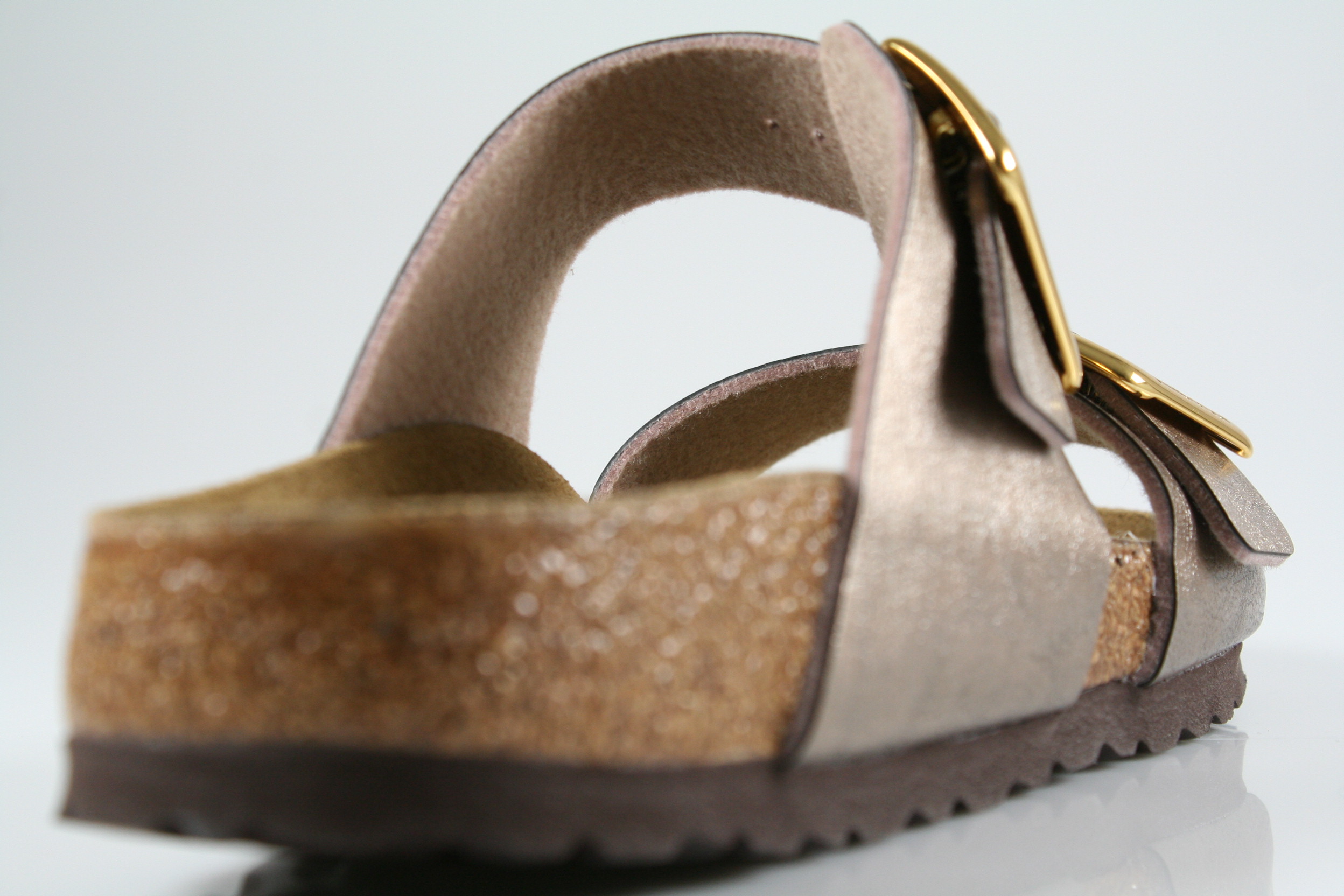 Typ: Pantolette; Farbe: "gold"; Ausstattung:; - Obermaterial: Öko-Leder; - Kork-/Lederfußbett; - leichte EVA-Laufsohle; - Riemchen zur Weitenregulierung; - Modell "Sydney"