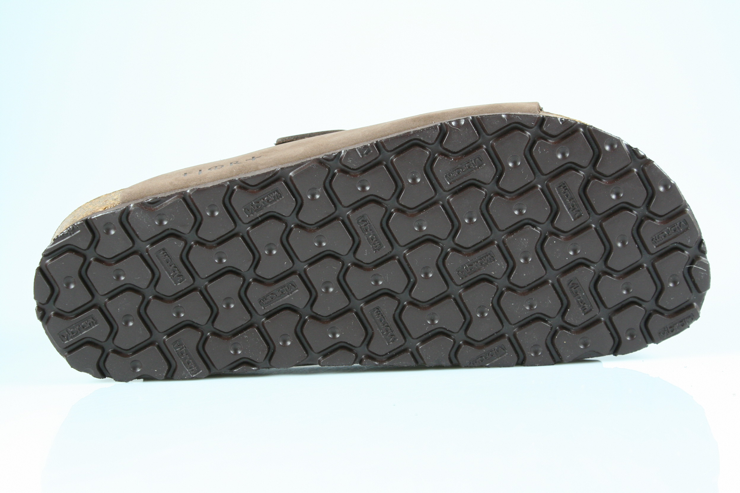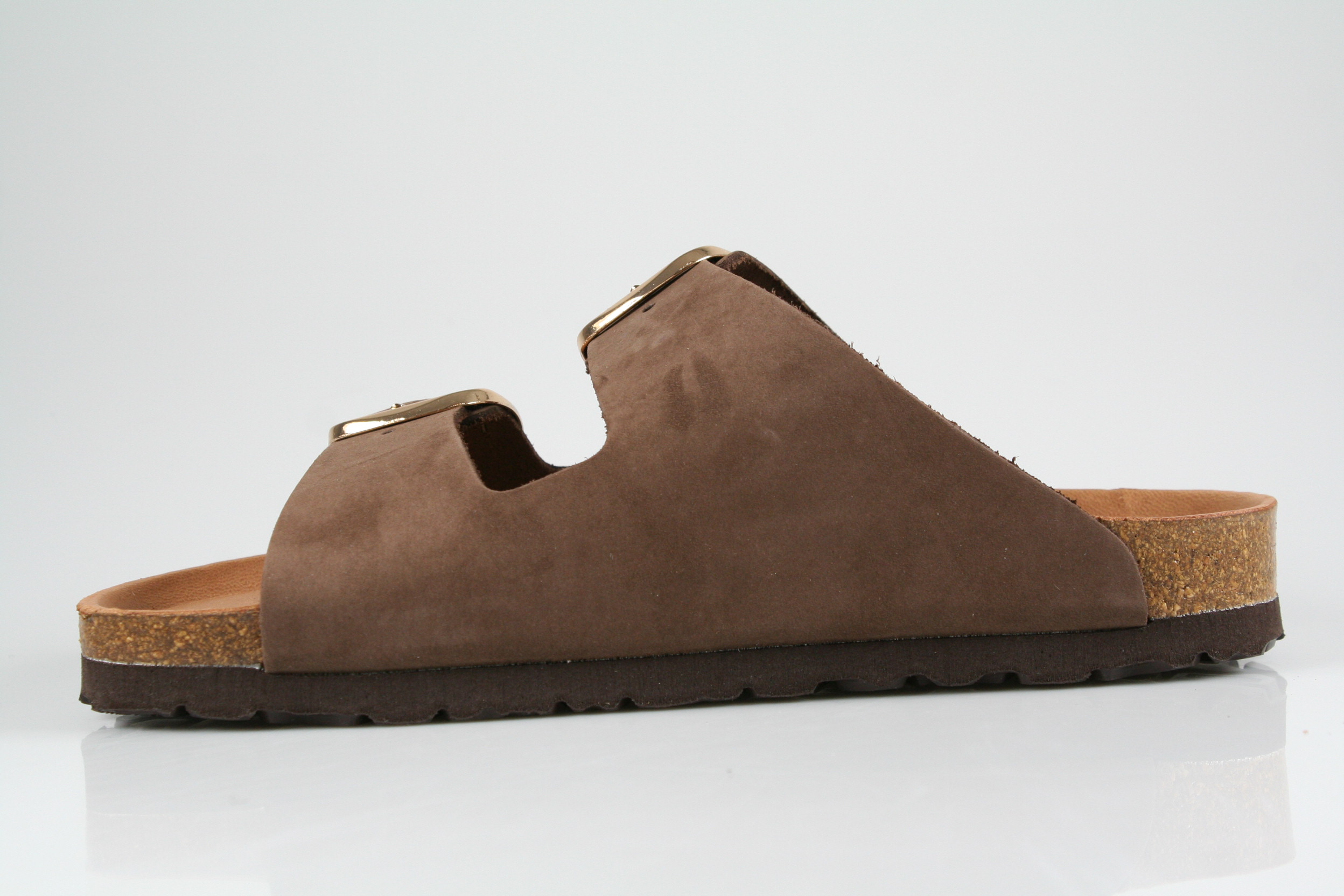 Typ: Pantolette; Farbe: brown; Ausstattung:; - Obermaterial: Velourleder; - Kork-/Lederfußbett; - Leichtzellsohle; - Riemchen mit Schnallen